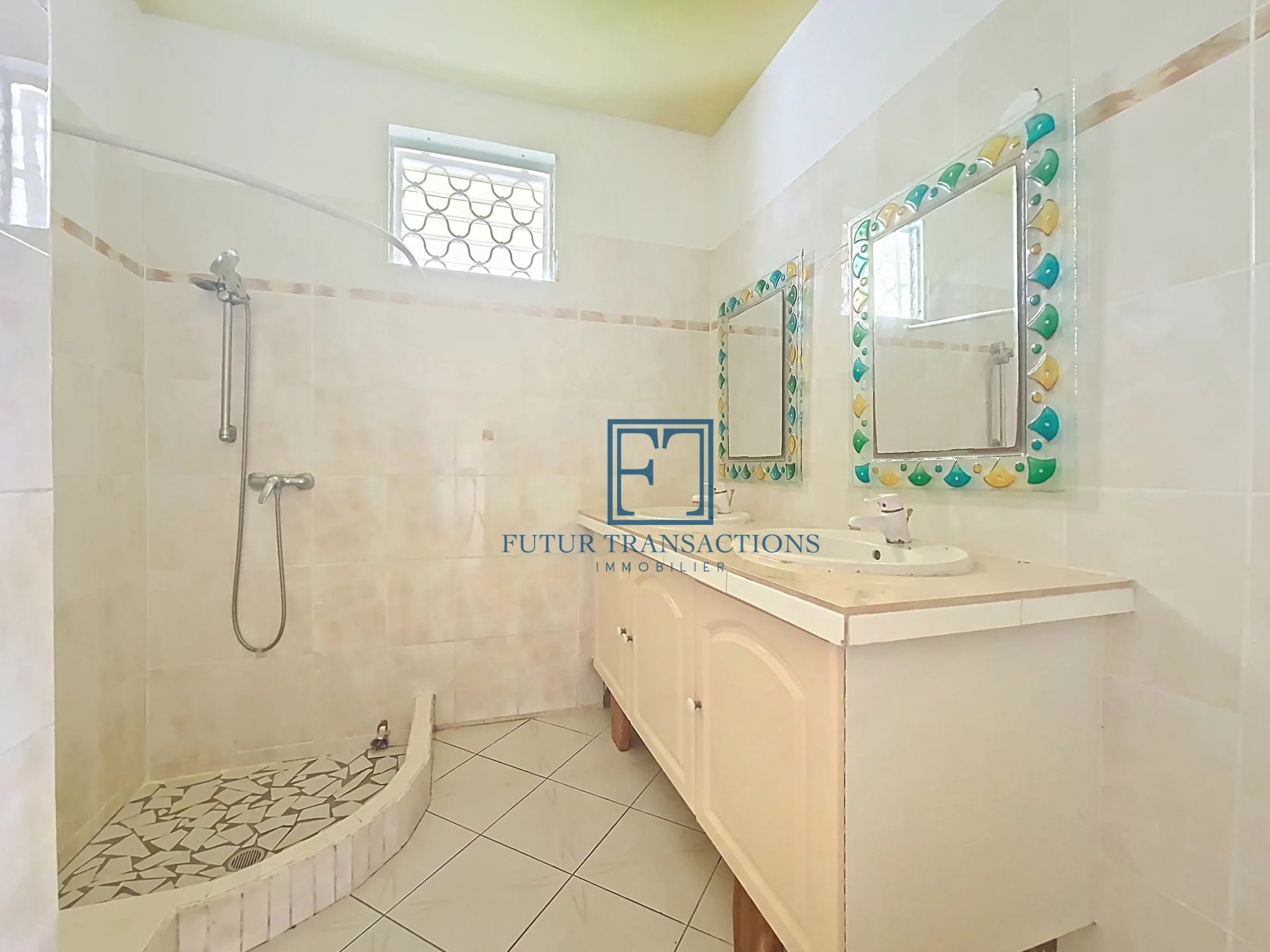 Nous vous proposons à la location une maison de plain pied en bon état, idéalement située en haut d'un morne. Elle se compose d'un séjour lumineux avec cuisine ouverte, l'ensemble s'ouvrant sur l'extérieur (terrasses et jardin). La partie nuit comprend trois chambres climatisées, dont une suite parentale avec sa salle de bain privative. Une salle de douche et un WC indépendant complètent l'agencement. Côté extérieur, un jardin clôturé ceinture la maison et offre une vue dégagée. Le terrain dispose d'un portail permettant le stationnement de deux véhicules. Une cuve tampon de 2000 Litres est également à disposition pour votre confort. * Loyer mensuel : 1400 € Hors charges * Honoraires de l'agence : 770 € TTC * Honoraires de l'état des lieux : 220 € TTC. * Dépôt de garantie : 1400 € Disponible 1er mai 2026 Sur dossier avec garanties. Pour de plus amples informations ou pour planifier une visite, contactez votre agence Futur Transactions Le Gosier au 05 90 50 96 81 Etiquette énergétique: classe A Les informations sur les risques auxquels ce bien est exposé sont disponibles sur le site Géorisques : https://www.georisques.gouv.fr/