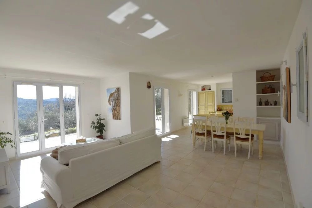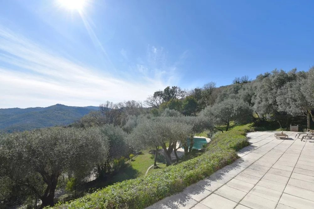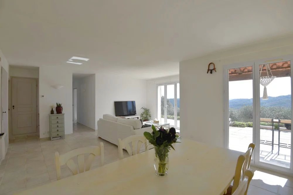 Dans un environnement calme, naturel et sans vis-à-vis, découvrez cette superbe villa de plain-pied d’environ 139 m², nichée sur un terrain de 3 585 m² agrémenté de 32 oliviers. Les atouts : Vue dégagée exceptionnelle sur les collines Plain-pied (confort de vie recherché) Piscine parfaitement intégrée à l’environnement Grand terrain arboré (idéal résidence principale ou secondaire) Double garage Exposition idéale, luminosité toute la journée Description : La villa offre un espace de vie lumineux et convivial : Séjour lumineux avec cuisine ouverte équipée, ouvrant sur une grande terrasse avec vue Une suite parentale avec salle de bains Trois chambres supplémentaires Une salle d’eau Chaque pièce bénéficie d’une belle luminosité et d’une ouverture sur l’extérieur, créant une parfaite continuité entre intérieur et nature. Extérieurs : Piscine avec plage ensoleillée Grandes terrasses idéales pour recevoir Terrain en restanques planté d’oliviers Localisation : Située à Tanneron, dans un secteur prisé pour son calme et sa nature, la propriété reste accessible : A cinq minutes de Montauroux À proximité de Mandelieu / Cannes Accès rapide aux axes principaux Idéal pour résidence principale au calme ou maison secondaire de charme Projet familial ou investissement locatif saisonnier Bien rare sur le secteur. Contactez nous rapidement pour organiser une visite et découvrir tout son potentiel.