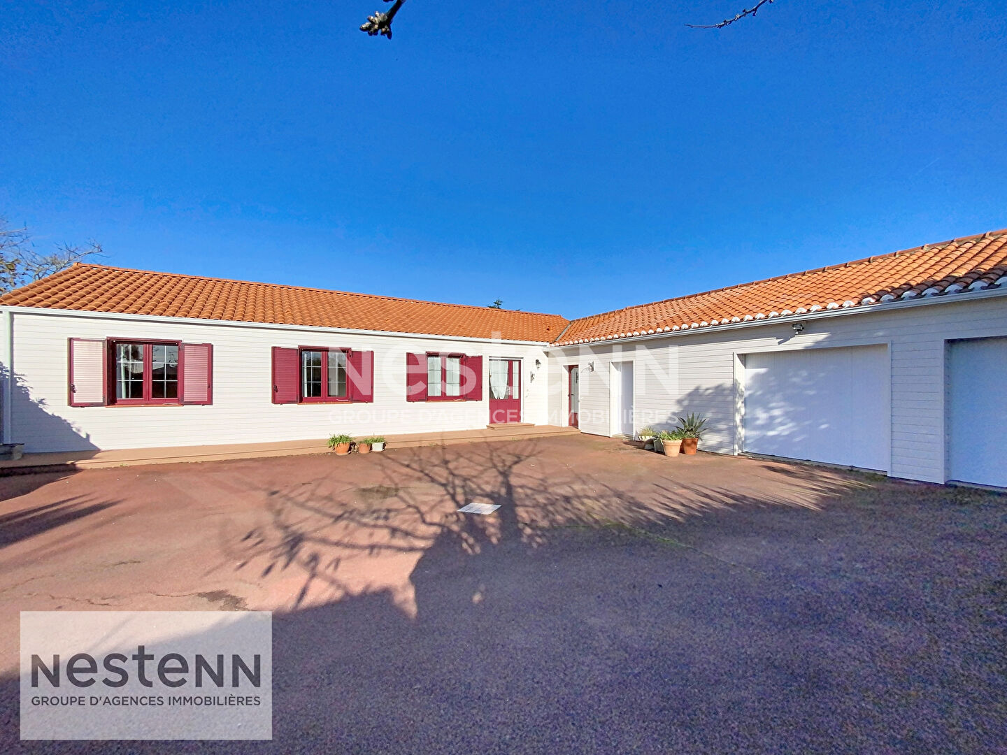 MAISON 3 chambres - BEAUVOIR SUR MER 85230 Découvrez cette agréable maison de plain-pied située à Beauvoir-sur-Mer, en second rideau, offrant un environnement calme et préservé. D'une surface habitable de 120 m², elle propose 4 pièces lumineuses, dont 3 chambres confortables. Vous serez séduit par sa cuisine aménagée et équipée, prolongée par une arrière-cuisine menant à une véranda de 25 m², idéale pour profiter de la lumière tout au long de l'année. Le confort est assuré grâce au chauffage au sol électrique, complété par un poêle à granulés. Construite sur un terrain entièrement clos de 928 m², la propriété bénéficie d'un vaste espace de stationnement permettant d'accueillir plusieurs véhicules. Un atout majeur : un garage de 75 m², doté de deux accès voitures, offrant de multiples possibilités de rangement ou d'aménagement grâce à son important volume. Contactez dès maintenant l'agence NESTENN Challans pour obtenir plus d'informations ou planifier une visite. (5.31 % honoraires TTC à la charge de l'acquéreur.)