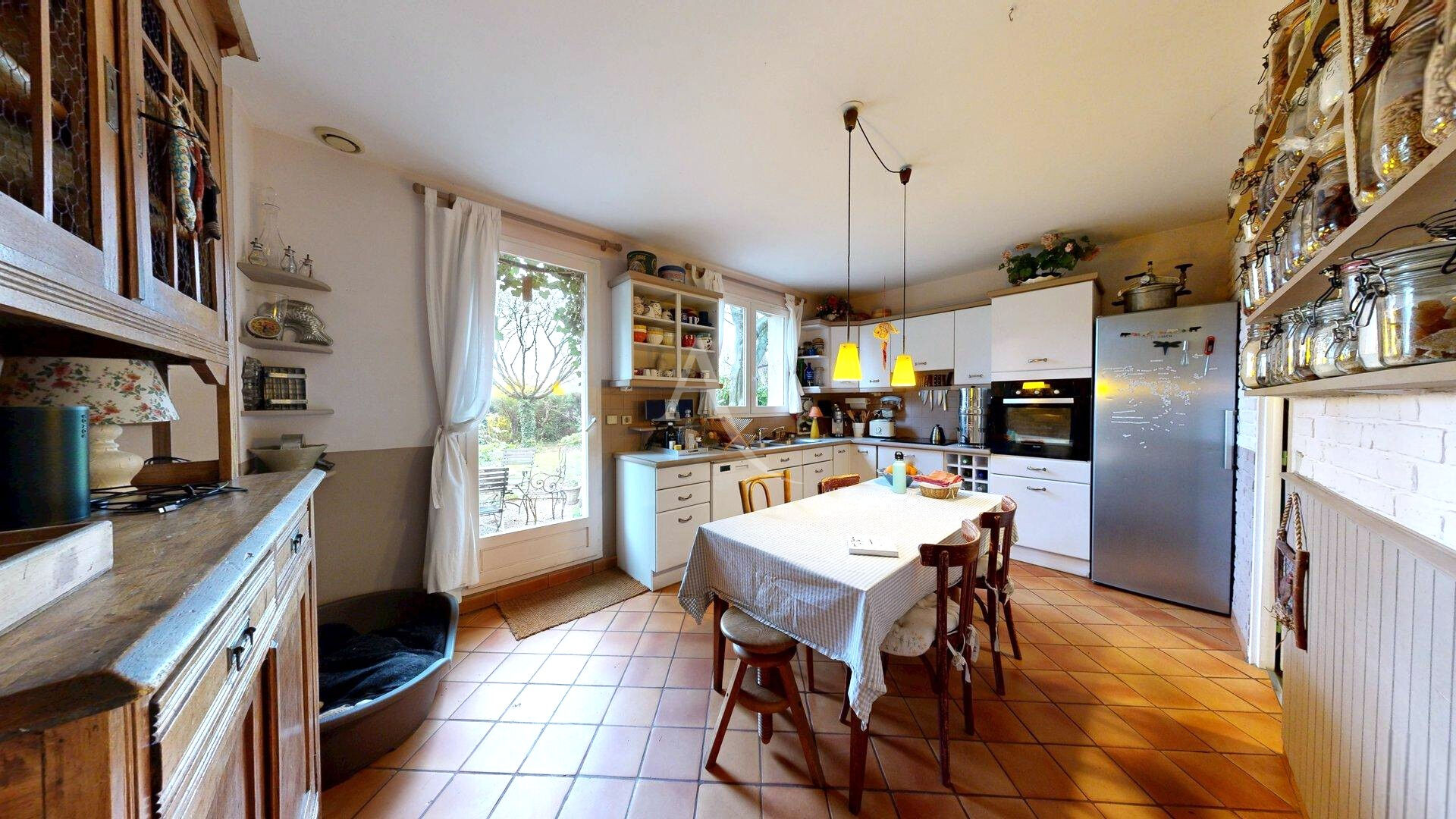 Exclusivité L'Adresse ! Vivre dans une résidence de golf, c'est bénéficier d'un environnement paysager entretenu à l'année - fairways, arbres, pelouses soignées qui offre des vues dégagées et verdoyantes depuis chez soi. Un luxe rare en Île-de-France. Au coeur d'un environnement résidentiel privilégié bordant le Golf de Vauréal, cette élégante maison individuelle développe une surface habitable de 197 m², édifiée sur une parcelle arborée de 1 200 m². Dès l'entrée, spacieuse et pourvue de rangements intégrés, la maison révèle des volumes généreux et une distribution fluide. Le rez-de-chaussée accueille une chambre avec salle d'eau privative, idéale pour recevoir ou pour une vie de plain-pied, ainsi que des toilettes. La cuisine dinatoire, aménagée et fonctionnelle, s'ouvre sur l'extérieur par une porte-fenêtre, invitant à profiter pleinement du jardin aux beaux jours. Les espaces de réception se distinguent par leur luminosité et leur caractère : un vaste salon 45 m² agrémenté d'une cheminée, prolongé par des accès directs vers la terrasse et le jardin, ainsi qu'un second salon plus intimiste, propice à la détente ou à la lecture. Une buanderie, une cave à vin et un garage double complètent harmonieusement ce niveau. A l'étage, un palier dessert une suite parentale aux proportions confortables, comprenant un espace nuit, un dressing, ainsi qu'une salle de bains avec douche et baignoire. Cette suite bénéficie également d'un accès à un espace extérieur privatif. Trois autres chambres spacieuses viennent compléter l'étage, accompagnées d'une salle de bains, de toilettes, d'un dressing supplémentaire offrant un espace de rangement appréciable. A l'extérieur, le jardin paysagé, soigneusement entretenu et sans vis-à-vis, constitue un véritable havre de paix. Il propose un espace dédié aux repas et à la détente, dans un cadre verdoyant et préservé. Un abri de jardin vient parfaire les prestations extérieures. Les amateurs de sport apprécieront la présence de deux courts de tennis à disposition au sein de l'environnement résidentiel. Cette propriété séduira les acquéreurs en quête de calme, de confort et d'un cadre de vie qualitatif, à proximité immédiate des commodités et des axes majeurs. Vauréal est idéalement situé dans la communauté urbaine de Cergy-Pontoise, à environ 35 km de Paris. Accès rapide à l'A15 et à la Francilienne, gares RER A (Cergy) pour rejoindre Paris en moins de 45 minutes.