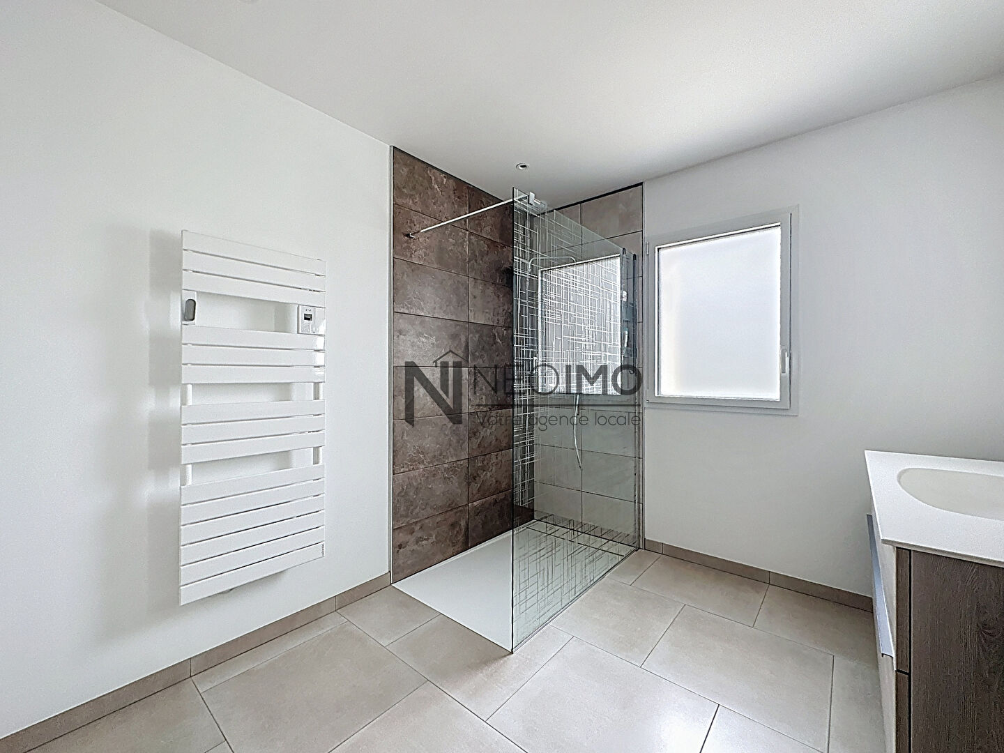 Quartier très calme. Prestations haut de gamme. Magnifique maison de 2023 édifiée de plain-pied sur une parcelle de 978 m². - Hall d'entrée avec placard, superbe pièce de vie lumineuse offrant cuisine aménagée ouverte sur vaste salon-séjour, 4 chambres, wc, salle d'eau. - Buanderie - Double garage de 62 m² - Terrasse Chauffage au sol par pompe à chaleur. Double isolation des murs par l'intérieur et l'extérieur. Facture énergétique faible.