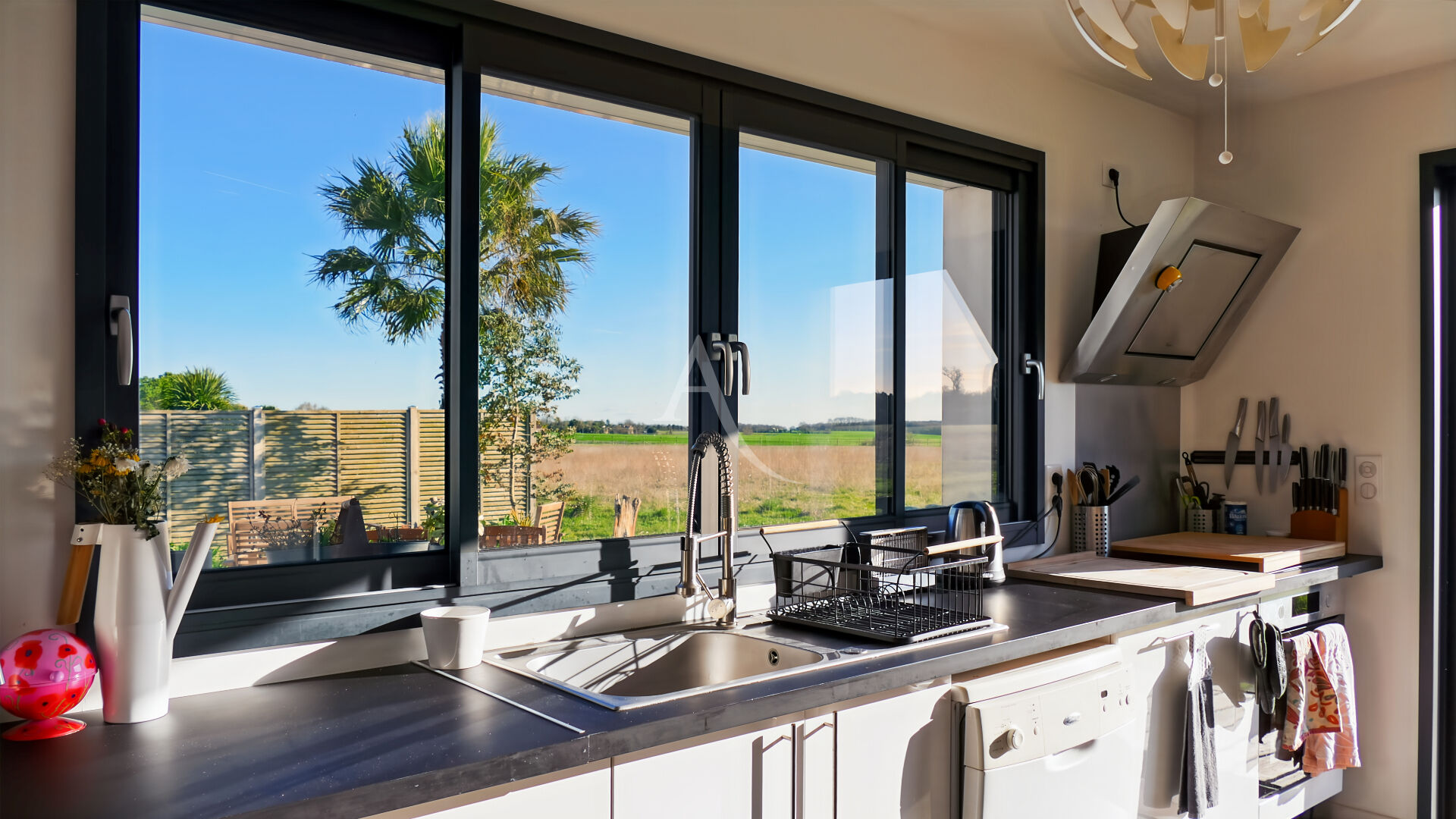 A 15mn de Royan, à proximité des plages, cette maison de plain-pied est baignée de lumière et exposée plein sud. Nichée dans un quartier calme, elle est située dans une impasse donnant sur la nature et sans vis-à-vis. La terrasse offre une vue imprenable sur l'environnement, naturel et non constructible, avec en fond l'estuaire de la Gironde. Le patio apporte luminosité et modernité avec un espace extérieur au coeur de la maison. Récente et bien pensée, la maison ouvre sur un vaste séjour-salon avec un accès direct aux extérieurs. Les pièces sont réparties autour de cet espace de vie. La cuisine est équipée, avec un accès sur l'extérieur. Côté nuit on compte 5 chambres, dont une master-parentale avec salle d'eau et WC, d'autre part, une deuxième salle d'eau avec WC pour trois autres chambres. Un WC indépendant pratique pour les invités. Côté rangement et praticité, vers un troisième espace se situe un cellier-buanderie, qui donne ensuite vers un grand garage attenant, enfin vers la quatrième chambre/bureau avec accès sur le patio. Construite en 2018, avec goût et qualité, elle offre tout le confort : pompe à chaleur, chauffage au sol, volets roulants électriques en aluminium, double vitrage, baies vitrées aluminium coulissantes à galandage, avec beaucoup de surface vitrée pour la lumière et la circulation. A l'extérieur, 3 places de parking, un jardin piscinable et une terrasse en bois ouverte sur un paysage magnifique, le tout sans vis à vis. VISITE VIRTUELLE SUR DEMANDE Votre contact : Nicolas PREST 0661260625 (4.11 % honoraires TTC à la charge de l'acquéreur.) Nicolas PREST (EI) Agent Commercial - Numéro RSAC : 519839278 - SAINTES.