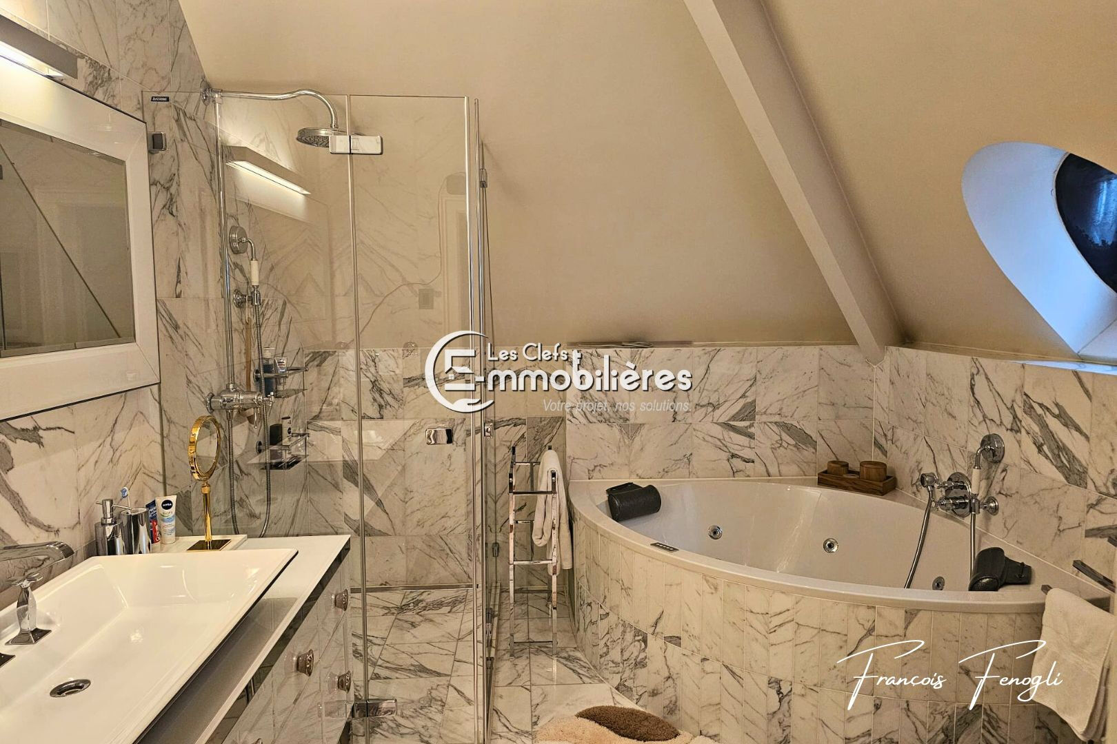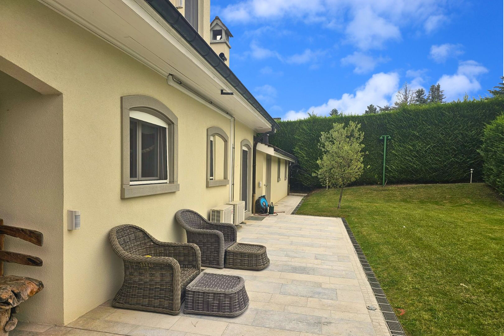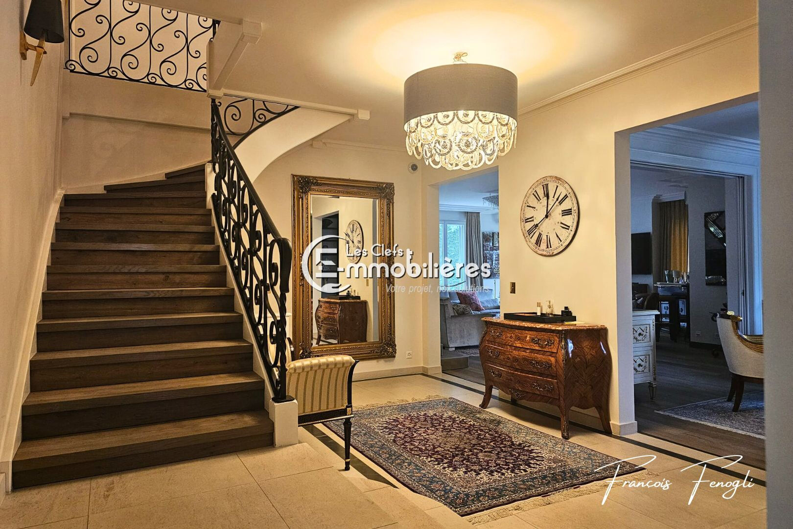 Dans l'un des environnements résidentiels les plus prisés des rives du Lac Léman, cette élégante propriété privée offre un art de vivre rare, alliant sérénité, discrétion et prestations de grand standing, à seulement quelques minutes de Genève. Édifiée au coeur d'un magnifique parc paysager d'environ 3 600 m², la propriété bénéficie d'un emplacement privilégié, entièrement préservé des regards et entouré d'une nature verdoyante qui lui confère une atmosphère paisible et exclusive. Construite en 1976 et rénovée avec soin selon des standards élevés, la villa développe près de 400 m² de surfaces utiles, offrant des volumes généreux et une élégance intemporelle. Le rez-de-chaussée accueille un hall d'entrée raffiné menant à de superbes espaces de réception baignés de lumière, comprenant un vaste double séjour, une salle à manger élégante ainsi qu'une cuisine contemporaine entièrement équipée. Une chambre avec salle de douche privative ainsi que des toilettes ainsi qu'un accès direct au garage complètent ce partie. L'étage supérieur est dédié aux espaces nuit et accueille deux chambres spacieuses, dont une remarquable suite parentale avec dressing et salle de bains, ainsi qu'une seconde chambre disposant de sa propre salle de douche. Pensé pour le bien-être et la détente, le niveau inférieur propose un vaste espace polyvalent pouvant accueillir une salle de fitness ou un espace loisirs, ainsi qu'un espace bien-être avec sauna et hammam. Les installations techniques comprennent également une buanderie, une cave à vin, une chaufferie et un abri sécurisé. A l'extérieur, la propriété dévoile de magnifiques pelouses arborées, des aménagements paysagers soignés ainsi qu'un charmant pavillon de jardin. Une vaste cour d'accès permet le stationnement de plusieurs véhicules en complément d'un garage pouvant accueillir deux à trois voitures. Alliant architecture élégante, volumes généreux et situation privilégiée à proximité immédiate du lac Léman, cette résidence représente une opportunité rare pour une clientèle recherchant discrétion, prestige et proximité avec Genève. Prix de vente : CHF 8 200 000 Located in one of the most sought-after residential settings along the shores of Lake Geneva, this elegant private property offers a rare lifestyle combining serenity, privacy and high-end amenities, just a few minutes from Geneva. Set within a magnificent landscaped park of approximately 3,600 sqm, the property enjoys a privileged location, completely sheltered from view and surrounded by lush greenery, creating a peaceful and exclusive atmosphere. Originally built in 1976 and carefully renovated to high standards, the villa offers nearly 400 sqm of usable space, featuring generous volumes and timeless elegance. The ground floor welcomes you with a refined entrance hall leading to beautiful light-filled reception areas, including a spacious double living room, an elegant dining room and a fully equipped contemporary kitchen. A bedroom with its own private shower room, guest toilets and direct access to the garage complete this level. The upper floor is dedicated to the sleeping quarters and features two spacious bedrooms, including a remarkable master suite with dressing room and private bathroom, as well as a second bedroom with its own shower room. Designed for relaxation and wellbeing, the lower level offers a large versatile space suitable for a fitness room or leisure area, as well as a wellness space with sauna and hammam. Technical facilities include a laundry room, wine cellar, boiler room and a secure shelter. Outside, the property reveals beautiful tree-lined lawns, carefully landscaped gardens and a charming garden pavilion. A large driveway courtyard provides parking for several vehicles in addition to a garage accommodating two to three cars. Combining elegant architecture, generous volumes and a privileged location in immediate proximity to Lake Geneva, this residence represents a rare opportunity for buyers seeking privacy, prestige and close proximity to Geneva. Sale price: CHF 8 200 000