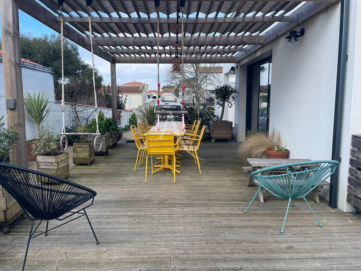 A BREM SUR MER, a proximité immédiate des commerces et à 1,4km de la mer, vous allez tomber sous le charme de cette maison de 2022 composée d'une vaste pièce de vie de plus de 50m2 avec une très belle hauteur sous plafond donnant un volume incroyable. La pièce de vie donne directement sur une vaste terrasse exposée Sud-Ouest, ainsi que sur patio intérieur. Au rez-de-chaussée vous trouverez trois chambres, un WC, une salle de bains avec baignoire et douche. A l'étage, une mezzanine donnant accès à une chambres bénéficiant de sa salle d'eau et wc privatif. Garage. Terrain clos de mûrs de 514m2. Ref : 2275 Classe énergie : A Consommation énergique : 54 kWh/m²/an Emission de gaz à effet de serre : 2 Kg CO2/m²/an Honoraires charge vendeur Montant estimé des dépenses annuelles d'énergie pour un usage standard : entre 720 euros et 1030 euros par an. Prix moyens des énergies indexés sur l'année 2021 (abonnements compris) Les informations sur les risques auxquels ce bien est exposé sont disponibles sur le site géorisques : www.georisques.gouv.fr