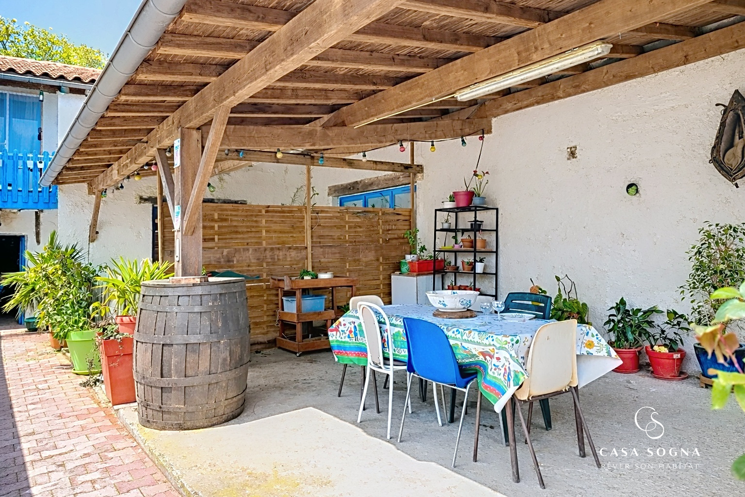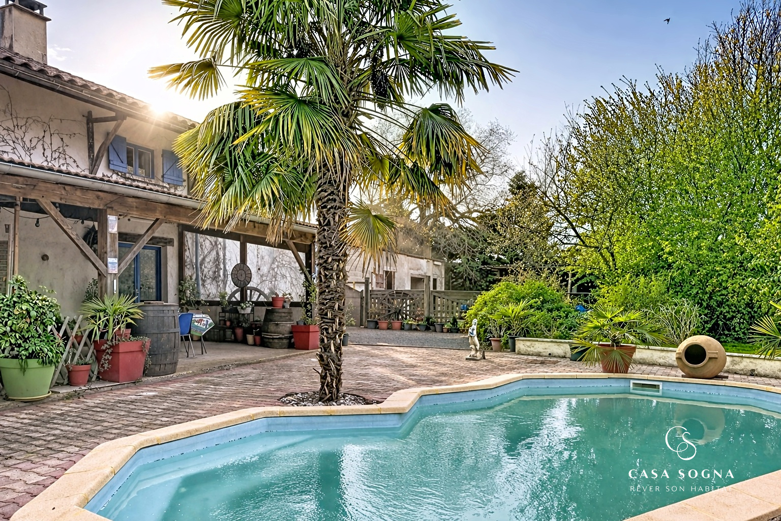 Casa Sogna vous présente en exclusivité cette belle ferme équestre, située à Villeneuve, au coeur de la campagne, à seulement 3 km du village et 20 minutes de Villefranche-sur-Saône, cette propriété entièrement rénovée en 2006 s'offre dans un cadre paisible, sans vis-à-vis, sur un terrain clos et arboré d'environ 3000 m². La maison principale (177 m²) s'articule au RDC autour d'une pièce de vie lumineuse ouverte avec une belle cheminée comprenant une grande cuisine dînatoire, un salon/salle à manger qui s'étire naturellement vers la terrasse et la piscine. Une très grande chambre avec rangements complète ce niveau. A l'étage, trois chambres dont une parentale avec mezzanine et salle d'eau, ainsi qu'une salle de bain et une douche supplémentaires. Une quatrième chambre, aujourd'hui aménagée en cuisine, offre la possibilité de créer un logement indépendant selon vos besoins. Un deuxième escalier extérieur permet d'accéder à l'étage indépendamment. Le gîte (53 m²), en rez-de-chaussée, dispose de sa propre entrée, de sa terrasse privative, d'une chambre, d'une cuisine et d'une salle d'eau avec WC ainsi que de rangements, idéal pour accueillir de la famille, des proches, ou générer un revenu locatif. Les annexes comprennent un atelier de 60m² et une cave, offrant de belles perspectives d'aménagement ou de rangement. Les extérieurs complètent l'ensemble : deux box, une sellerie, un poulailler, un hangar et un pré d'environ 9 000 m² avec un accès indépendant. Ces derniers ne sont pas inclus dans la vente à ce jour, mais seront disponibles à la location avec option d'achat. Un lieu rare, pensé pour ceux qui cherchent l'espace sans s'éloigner du monde. Nature, authenticité, et un vrai potentiel de vie à composer selon vos envies. Visite virtuelle sur demande! DPE: D / GES: B Prix moyens des énergies indexés sur les années 2021, 2022, 2023 (abonnements compris): entre 2720 euros et 3690 euros. Les informations relatives aux risques auxquels ce bien est exposé sont disponibles sur le site www.georisques.gouv.fr. Prix: 475 000 euros Honoraires Agence Inclus à la charge du vendeur. Pour toute information complémentaire ou pour organiser une visite, contactez Ghislaine Labalme au 06 88 67 11 15 Agent commercial immatriculé RCS: 935 167 445 www.casa-sogna.immo 16 Rue Alexandre Bérard, 01500 Ambérieu-en-Bugey