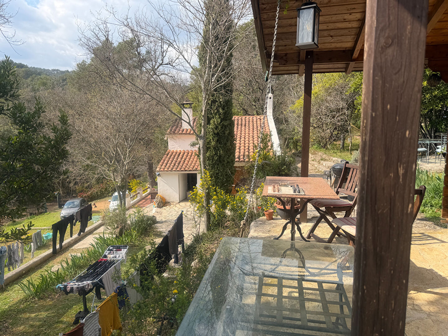 CALLIAN - Charmante maison individuelle en position dominante. Située dans un environnement privilégié, au calme et en position dominante, cette maison individuelle de 70m² pleine de charme saura vous séduire par son authenticité et son cadre de vie exceptionnel. Entrée sur salle à ma,ger et cuisine avec cheminée et son coin lecture ; à l'étage salon , mezzanine chambre , 1 salle de douche et wc separé . 1 chambre avec placard donnant sur le jardin . Bénéficiant d'une exposition plein sud, elle profite d'une belle luminosité tout au long de la journée ainsi que d'une vue dégagée très agréable. Édifiée sur un magnifique terrain de 2 110 m², la propriété offre de beaux espaces extérieurs soigneusement intégrés à la nature. Vous y trouverez également deux chalets indépendants, parfaits pour accueillir famille et amis, créer un espace de loisirs, un atelier ou envisager un rendement locatif. Un véritable atout supplémentaire : l'assainissement est conforme, vous garantissant sérénité et confort. Un bien rare sur le secteur, idéal pour les amoureux de charme, d'espace et de tranquillité, à quelques minutes du village de Callian. A découvrir sans tarder !
