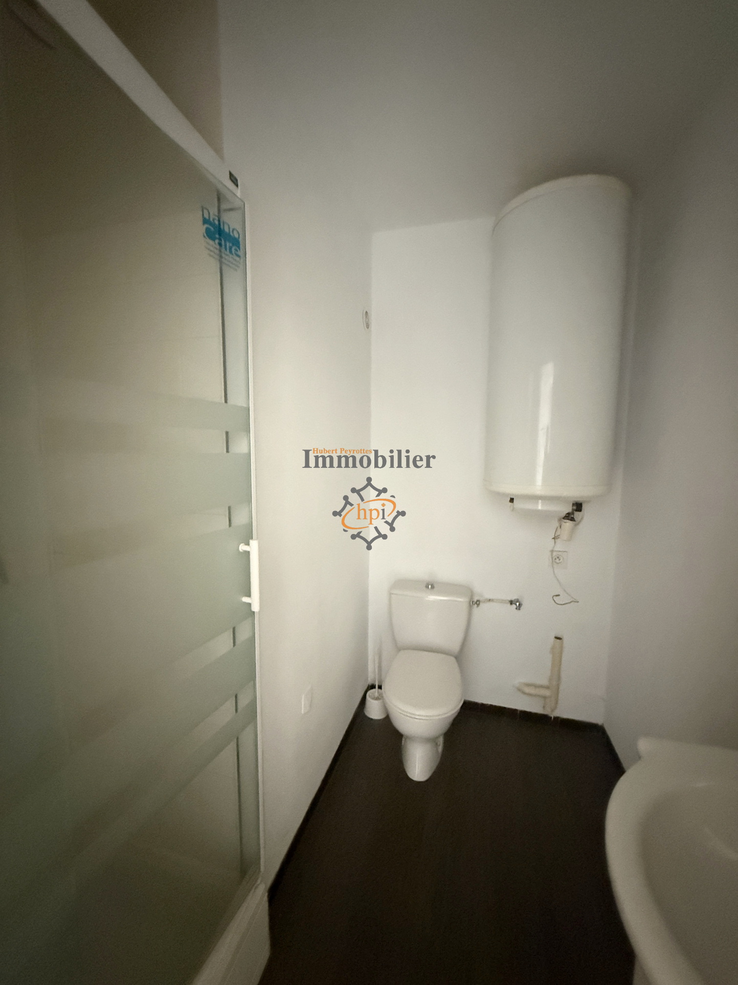 A louer Saint Affrique, centre-ville, Place de la Liberté, appartement de type 2 en 3eme étage. 29 m2 habitables, séjour avec cuisine équipée ouverte (plaque électrique, hotte, frigidaire top, micro-ondes), chambre avec dressing, salle d'eau avec w-c.