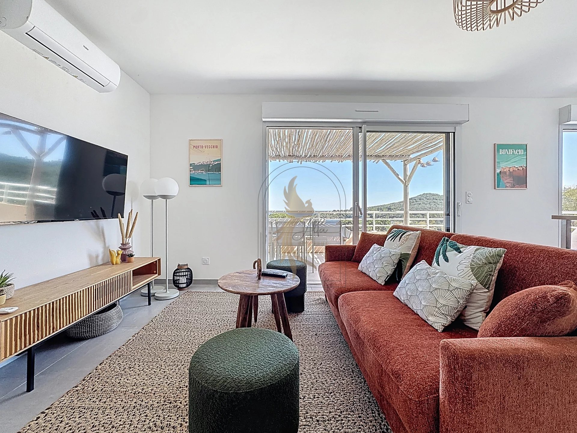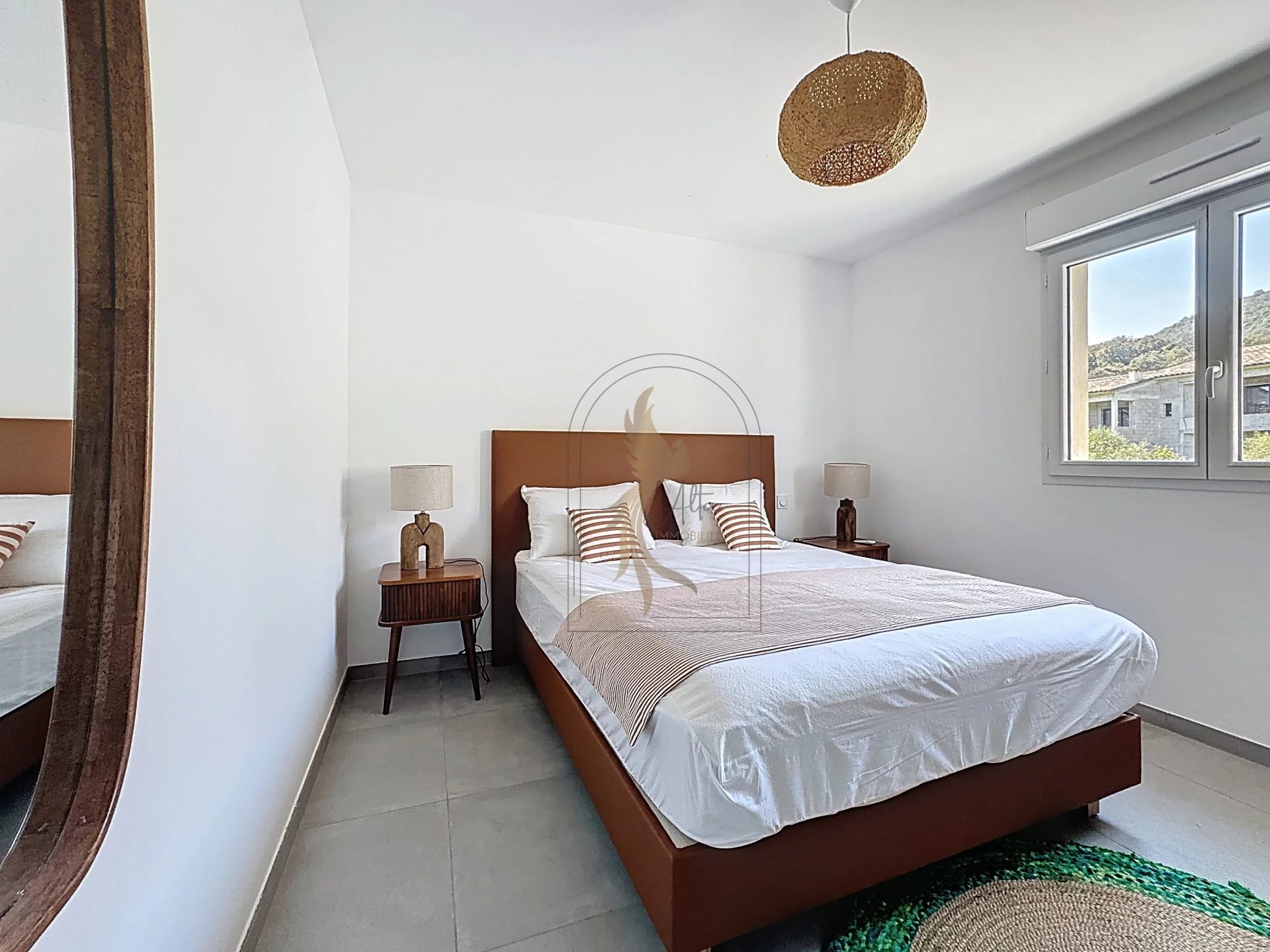 Superbe appartement T3 neuf avec vue imprenable sur la mer, idéalement situé à Favone, à seulement 300 mètres à pied de la plage. Rare à la vente, ce bien d’exception bénéficie d’un emplacement privilégié et d’une vue imprenable. Il séduit par ses beaux volumes et sa luminosité naturelle. L’appartement se compose d’une cuisine moderne entièrement aménagée et équipée, ouverte sur un vaste séjour lumineux avec espace salle à manger, offrant un cadre de vie à la fois convivial et confortable. L’espace nuit propose deux chambres spacieuses, entièrement meublées avec goût et dotées de mobilier de qualité. Une salle d’eau contemporaine avec machine à laver complète l’ensemble. Une place de parking ainsi qu’une cave viennent compléter l’acquisition de ce beau T3 Vendu clé en main, meublé, avec des prestations soignées, cet appartement constitue une opportunité idéale, aussi bien pour une résidence secondaire en bord de mer que pour un investissement locatif.