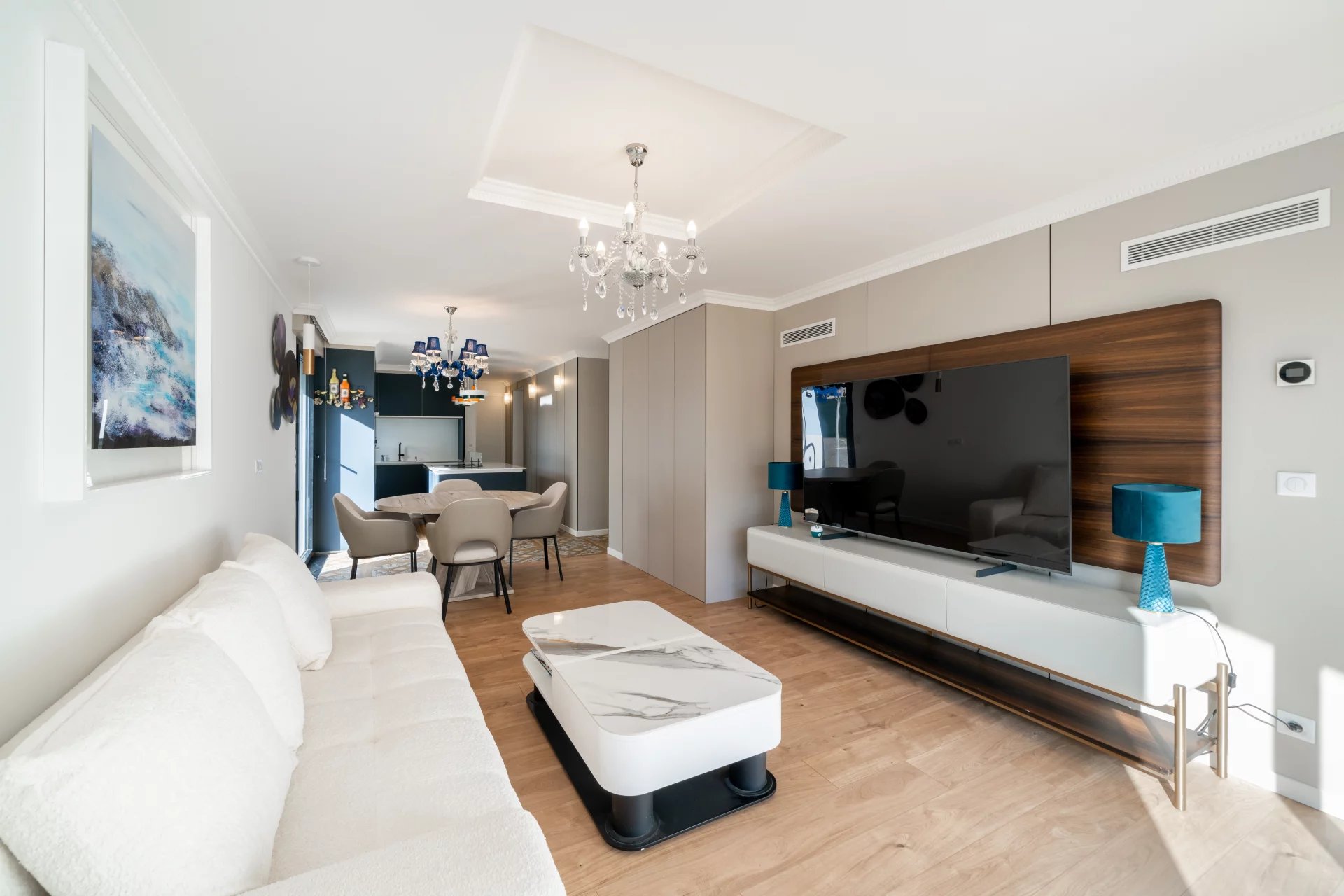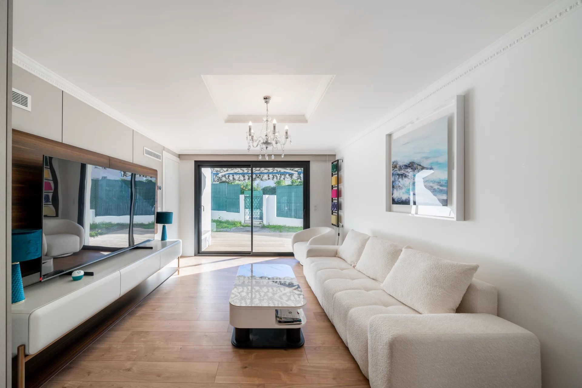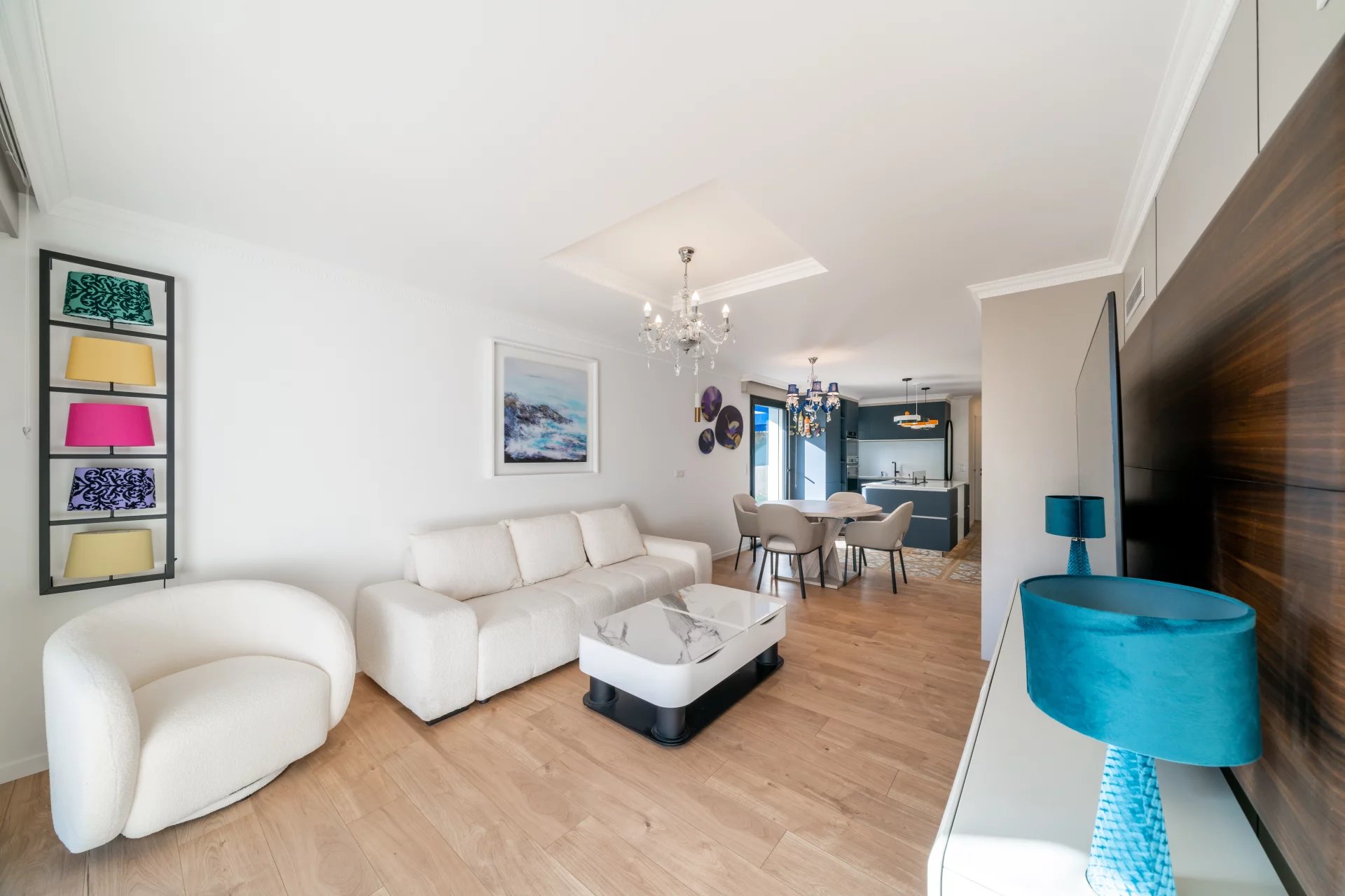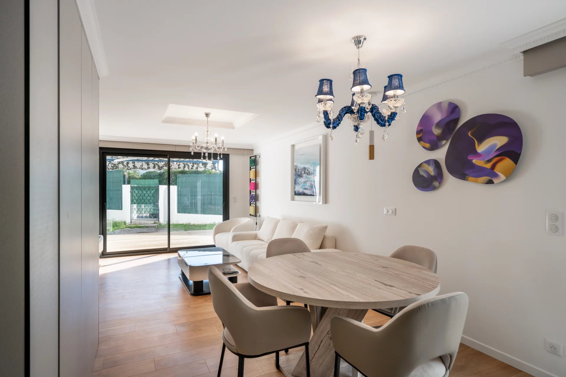 Idéalement situé à quelques pas de la mythique Boulevard de la Croisette et du très recherché quartier Palm Beach Cannes, ce somptueux appartement 4 pièces en rez-de-jardin incarne l’art de vivre cannois dans toute sa splendeur. Niché au Boulevard Chanoine Francis Coeuret, ce bien d’exception développe une surface habitable de 88 m², sublimée par un magnifique jardin privatif de 66 m², véritable havre de paix à seulement 80 mètres de la mer. L’appartement séduit dès l’entrée par ses volumes généreux et sa luminosité remarquable. Le vaste double séjour avec cuisine ouverte s’ouvre harmonieusement sur l’extérieur grâce à de larges baies vitrées panoramiques, offrant une continuité parfaite entre intérieur et extérieur. L’espace nuit propose une élégante suite parentale avec salle de bain, bénéficiant d’un accès direct au jardin, ainsi qu’une seconde chambre accompagnée de sa salle de douche. Un atout rare vient compléter ce bien : un studio indépendant avec coin cuisine et salle de douche, disposant de sa propre entrée. Idéal pour recevoir, loger du personnel ou envisager un rendement locatif, il peut également être relié à l’appartement principal selon vos besoins. Ce bien est vendu avec des prestations complémentaires recherchées : un garage privatif, une cave en sous-sol ainsi qu’une place de stationnement. Alliant emplacement d’exception, confort et potentiel, cet appartement constitue une opportunité rare sur le marché de Cannes, que ce soit pour une résidence principale, secondaire ou un investissement de prestige.
