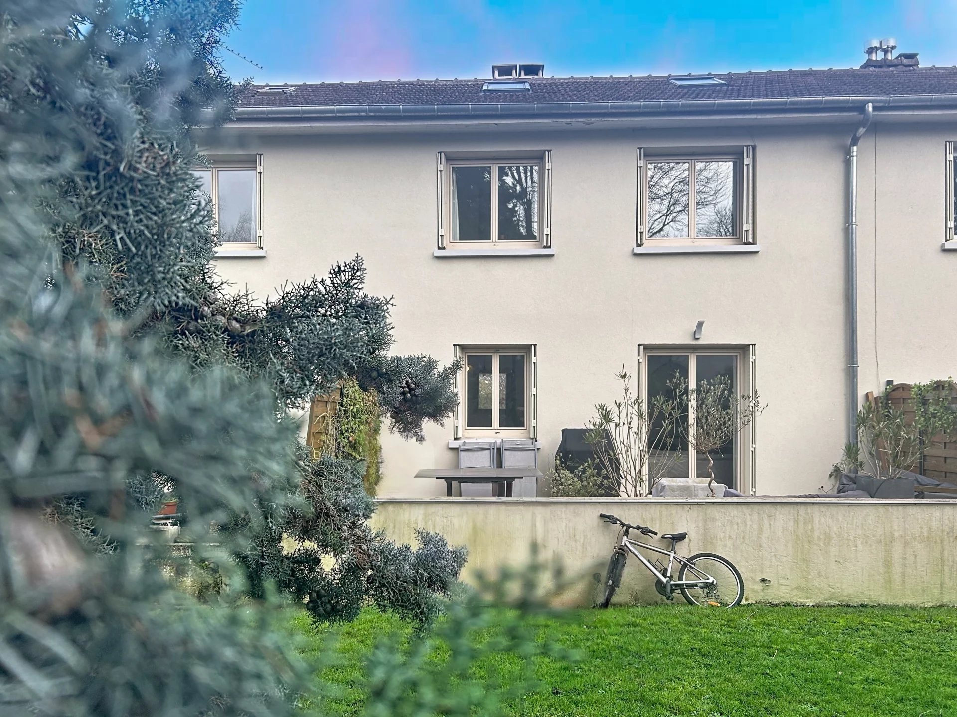 A vendre : Maison de ville rénovée en 2021 : sols, murs, cuisine, pièces d'eau, réseau de chauffage, isolation... située dans résidence fermée et verdoyante. LUMINEUSE, CALME et jolie vue sur la verdure. Aucun vis-à-vis. Vous trouverez au RDC : un espace de vie de plus de 35m2 traversant, exposé majoritairement SUD-OUEST avec cuisine ouverte et CHEMINEE pour d'agréables soirées d'hiver, terrasse de 20m2 avec de la place pour un salon de jardin, un espace repas et BBQ. L'exposition de la terrasse est parfaite : Aux beaux jours, le soleil est présent de la fin de matinée jusqu'au début de soirée et elle est située à l'abri des vents dominants. Au RDC vous trouverez également des rangements et une salle d'eau avec WC. Au 1er étage : 3 chambres entre 9.5 et 11m2, 1 salle d'eau avec WC. Au 2e étage : 1 grande pièce idéale pour un bureau, un espace enfants, une chambre d'appoint (1,70m de hauteur max). En plus : un Sous-sol de 16m2 avec fenêtre pour stockage, buanderie... Parking devant la maison. Surface carrez : 75.5m2 Surface pondérée : 90m2 Surface totale : 130m2 A 5 min à pied du centre ville et des commerces, de la gare SNCF (ligne L- la défense en 15min - St Lazare 23min) et du Haras de Jardy. Egalement : Bus à 20mètres. Commerces: 300m à 500m. Pharmacie, boulangerie, pressing, banque, caviste, fromager, restaurant, onglerie, kiné, médecin... et marché réputé les jeudi et dimanche. Crèche : 200m Ecole primaire : 600m Collège : 500m. Bus : 20m Accès A13 et A86 facile. Charges de la résidence : 139€/ mois, dont assurance, entretien des espaces verts et eau froide. Taxe foncière : 1.107 €.