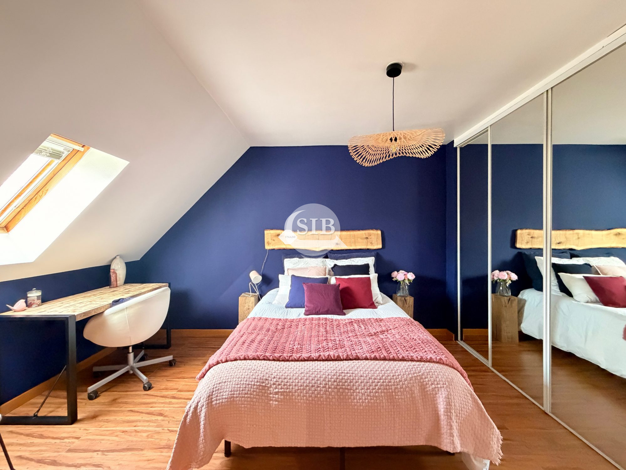 À l'étage, une spacieuse mezzanine avec une chambre aménagée et un accès balcon, une suite parentale avec placards, une chambre double avec salle d'eau et rangements ainsi qu'un wc indépendant.