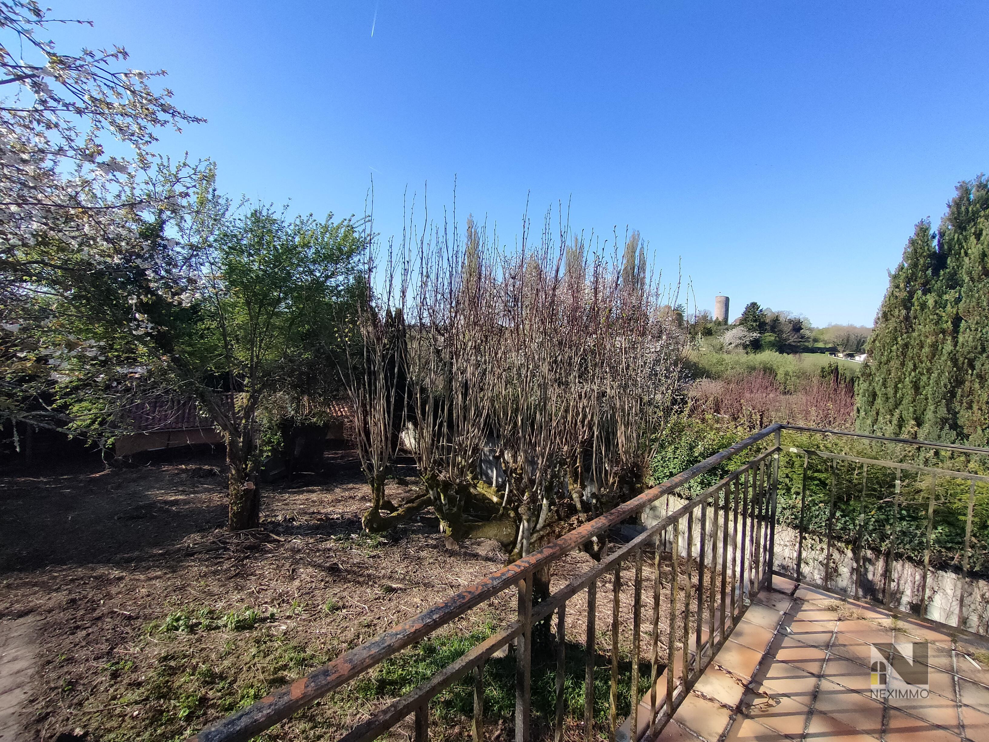 À l'étage : l'entrée dessert une cuisine, un séjour lumineux ouvrant sur un balcon avec véranda et sa vue sur la tour du château, deux chambres, une salle de bains et un WC séparé.