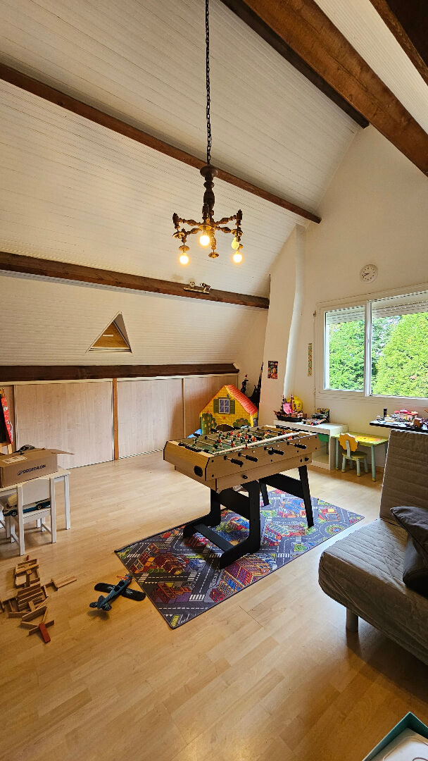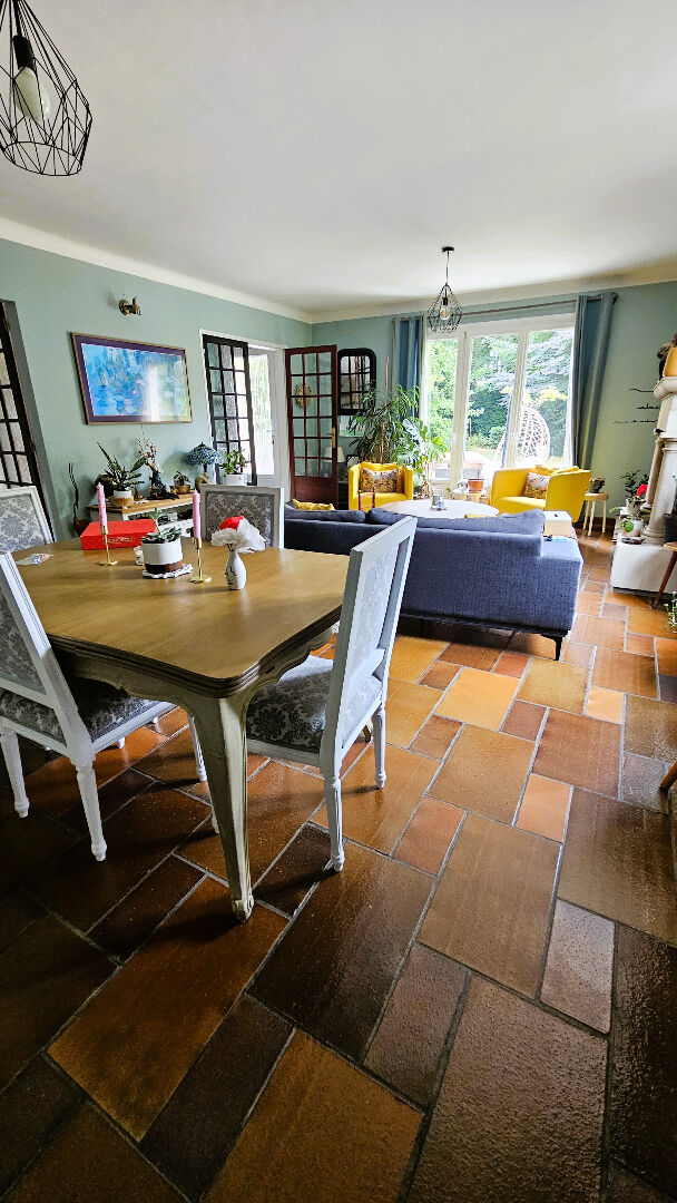 Nichée au coeur d'un parc arboré de 5605 m² , cette élégante et spacieuse traditionnelle (192 m² habitables sur un sous-sol de 120 m²) laisse libre cours à tout projet familial ou professionnel. Au rez-de-chaussée, la pièce de vie de 35 m² et la cuisine de 12 m² s'ouvrent sur une confortable terrasse exposée sud et entourée de verdure. Côté nuit, un dégagement équipé de placards distribue 4 chambres dont une de 12.50 m² avec un accès à la terrasse et 3 autres de 9 m² . Une salle d'eau et des toilettes viennent compléter le rez-de-chaussée. De l'entrée cathédrale, l'escalier dessert l'étage par la grande mezzanine distribuant d'un côté une grande chambre de 37 m² et les toilettes et de l'autre une chambre de 13 m² avec sa salle d'eau privative et deux greniers servant de rangement. Travaux récents: production d'eau chaude et chauffage par une pompe à chaleur AIR/EAU en 2018, poêle à bois, rénovation du tableau électrique, cuisine refaite à neuf en 2025 Les Plus: carport et cabanon de jardin, grand sous-sol aménagé avec garage, chaufferie, cuisine et cave. Jardin avec fruitiers et arbustes à fleur. (3.48 % honoraires TTC à la charge de l'acquéreur.) Annick Le Nevé (EI) Agent Commercial - Numéro RSAC : 477839716 - NANTES 44.