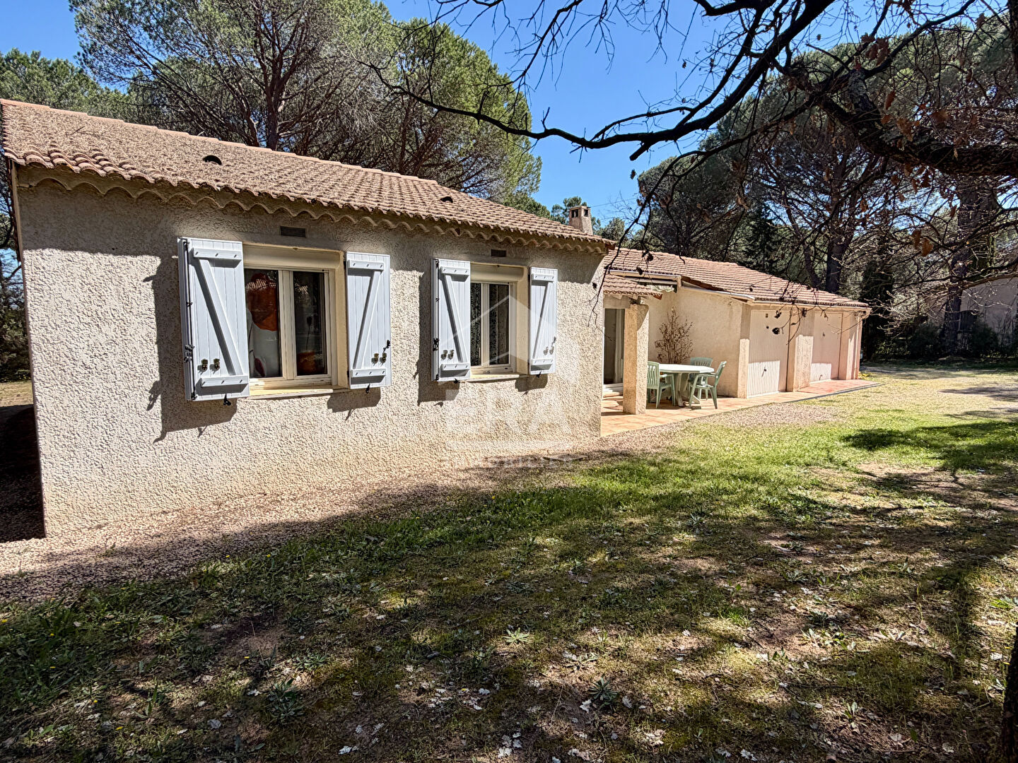 Votre agence ERA vous propose, dans un environnement agréable et recherché, cette charmante maison de plain-pied qui offre un très beau potentiel après rafraîchissement. D'une surface pleinement fonctionnelle, elle se compose de 4 pièces, dont 3 chambres, idéales pour accueillir une famille. Vous apprécierez son séjour lumineux et climatisé, agrémenté d'une cheminée, parfait pour des moments conviviaux. La cuisine semi-ouverte, aménagée et équipée, s'intègre harmonieusement à l'espace de vie. Côté nuit, une salle d'eau et un WC séparé complètent l'ensemble. Implantée sur un vaste terrain de 2 500 m² plat et arboré, la propriété offre un cadre de vie privilégié, avec de nombreuses possibilités d'aménagement extérieur. Une terrasse permet de profiter pleinement des beaux jours. Deux garages viennent compléter ce bien, offrant un espace de stationnement et de stockage appréciable. Une maison idéale pour les amoureux de tranquillité et de grands espaces, à personnaliser selon vos envies. Pour plus d'informations ou organiser une visite, contactez nous.