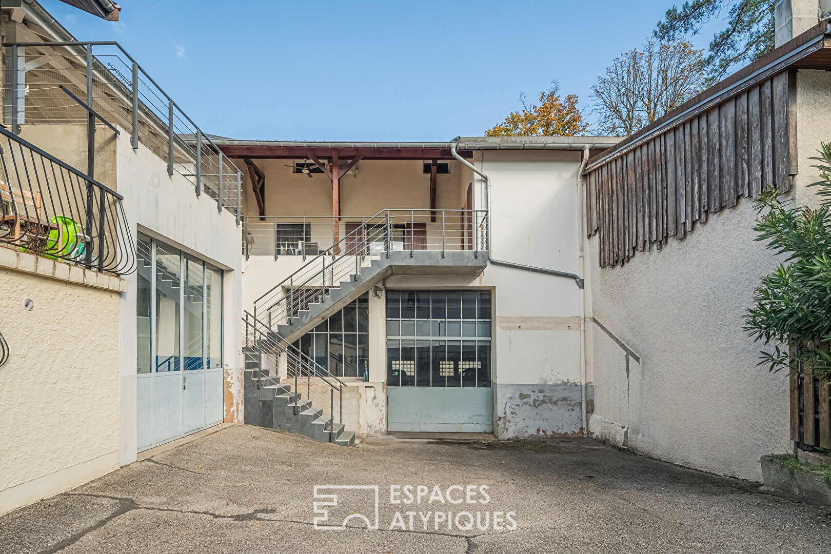 Idéalement situé au coeur d'une commune recherchée du bassin grenoblois, à deux pas des écoles et de toutes les commodités, cet ensemble immobilier singulier s'impose comme un lieu à part. Érigé sur une parcelle de 922 m², il développe plus de 500 m² de surface utile et conjugue, dans un équilibre rare, authenticité, potentiel et liberté d'usage. L'accès à la propriété se fait par deux entrées indépendantes : l'une par la rue principale du bourg, l'autre par une ruelle paisible menant à une cour intérieure avec garage indépendant ? un confort d'accès et de stationnement apprécié. Le rez-de-chaussée, d'une surface de 291 m², déploie de vastes volumes aujourd'hui répartis en ateliers, bureaux et zones de stockage. Un espace brut, aux multiples possibles : loft à la hauteur exceptionnelle, showroom, atelier d'artiste, local artisanal, salle de sport, cabinet professionnel ou projet immobilier d'envergure. Un lieu inspirant pour celles et ceux qui aiment créer, transformer et imaginer. La partie habitation, restaurée en 2006, s'organise en duplex autour d'une belle terrasse couverte de 75 m², véritable prolongement de la pièce de vie. Le premier niveau accueille un vaste séjour de plus de 50 m² avec cuisine américaine équipée, trois grandes chambres lumineuses, deux salles d'eau, un dressing, une buanderie et des rangements généreux. L'étage supérieur, accessible par un escalier à claire-voie, révèle deux chambres supplémentaires dont une suite de 62 m² utiles, agrémentées d'une salle d'eau, d'un WC et d'espaces de rangement sous combles. Une cave voûtée de 20 m² complète cet ensemble au caractère affirmé, où volumes et lumière dialoguent avec élégance. Avec ses 506 m² exploitables, ses accès indépendants et son emplacement stratégique, ce bien atypique s'adresse à ceux qui souhaitent conjuguer lieu de vie et d'activité, résidence familiale et espace professionnel, ou tout simplement donner vie à un projet unique et évolutif. Taxe foncière : 640 euros CLASSE ENERGIE : D / CLASSE CLIMAT : D Montant moyen estimé des dépenses annuelles d'énergie pour un usage standard, établi à partir des prix de l'énergie de l'année 2021 : entre 3.0400 euros et 4.180 euros. Les informations sur les risques auxquels ce bien est exposé sont disponibles sur le site Géorisques : www.georisques.gouv.fr Contact : Marie-Laure MAVIC (EI) - 06 84 97 46 73 Agent commercial indépendant RSAC Grenoble n° 890 478 670