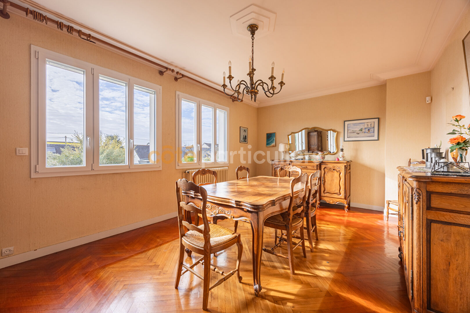 NOUVEAUTÉ - COTÉ PARTICULIERS NANTES. Située à Rezé, cette maison familiale construite en 1963, développe environ 150 m2 sur une parcelle de 346 m2 exposée sud-est côté jardin. Occupée comme résidence principale depuis son origine, elle a été entretenue au fil des années et partiellement rénovée, tout en conservant son cachet d'époque. Dès l'entrée, le ton est donné avec un sol en pierre et des placards intégrés offrant un rangement appréciable et un WC invité. Le rez-de-chaussée propose trois chambres aux surfaces confortables. Le garage attenant, d'une surface d'environ 19 m2 permet un stationnement sécurisé et un espace de stockage complémentaire. Une buanderie indépendante avec accès direct au jardin apporte une fonctionnalité supplémentaire au quotidien. A l'étage, le palier dessert une belle pièce de vie d'environ 35 m2, sur parquet massif avec moulures au plafond, belle luminosité et vue dégagée sur le jardin. La cuisine, indépendante, conserve un esprit authentique avec son mobilier en bois massif, son plan de travail carrelé et ses faïences d'époque. Elle est équipée d'une plaque mixte gaz/vitrocéramique, d'un four et d'un évier double bac. Ce niveau offre deux chambre supplémentaires, une salle de bain à rénover et un second WC indépendant. Les menuiseries ont été partiellement remplacées en double vitrage, notamment au rez-de-chaussée. Le chauffage est assuré par une installation individuelle au gaz avec radiateurs en fonte. La toiture en ardoise est en bon état général. La fibre est déployée. A l'extérieur, le jardin exposé sud-est accueille une terrasse à l'arrière ainsi qu'un cabanon. Les combles, déjà dotés de lucarnes et d'un parquet massif, offrent un potentiel d'aménagement intéressant, avec la possibilité de créer un accès plus direct depuis l'étage selon le projet envisagé. Une maison familiale aux volumes généreux, offrant cinq chambres et de nombreuses possibilités d'évolution, située dans un environnement résidentiel recherché de Rezé, à proximité des commodités et des transports. Prix de vente : 325 500 euros HAI, dont 15 500 euros d'honoraires d'agence à la charge de l'acquéreur, soit un prix net vendeur de 310 000 euros. Coté Particuliers. (RCS. Nantes 948 350 889). Les informations sur les risques auxquels ce bien est exposé sont disponibles sur le site Géorisques. (5.00 % honoraires TTC à la charge de l'acquéreur.)