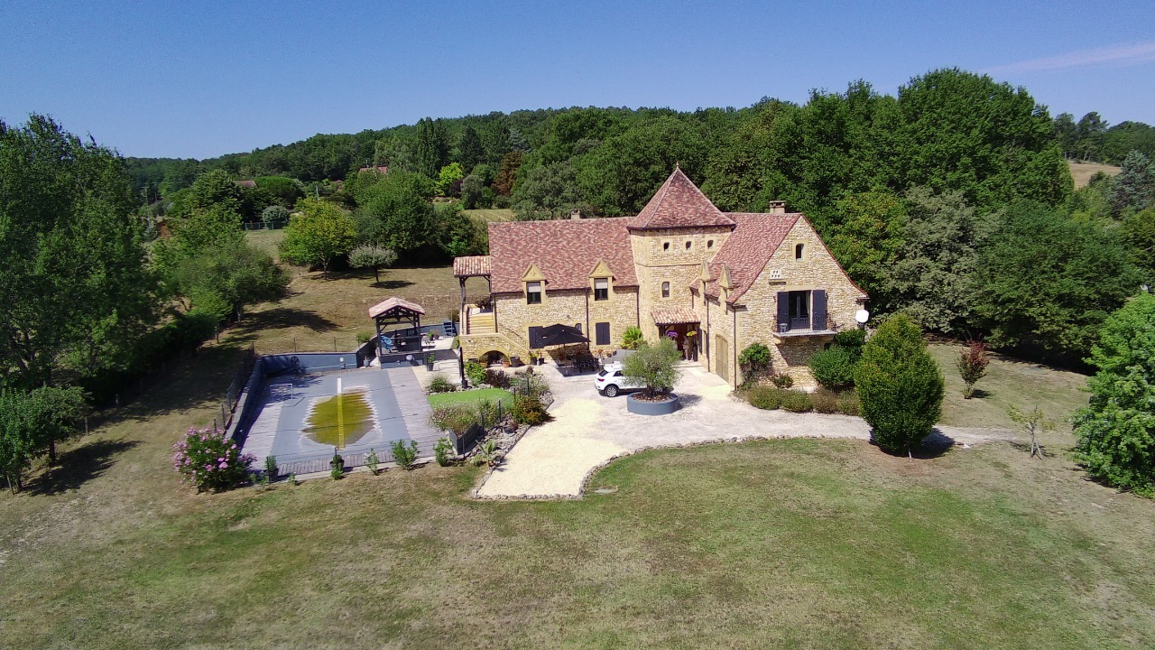MAGNIFICENT AND EXCEPTIONAL STONE HOUSE WITH VIEW 450 M² OF LIVING SPACE, PART OF WHICH IS A CHARMING SEASONAL RENTAL, SUPERB AMENITIES, UNIQUE IN THE SECTOR, PARK OF 4 740 M² HEATED OVERFLOW POOL 17 X 5 + BEACH