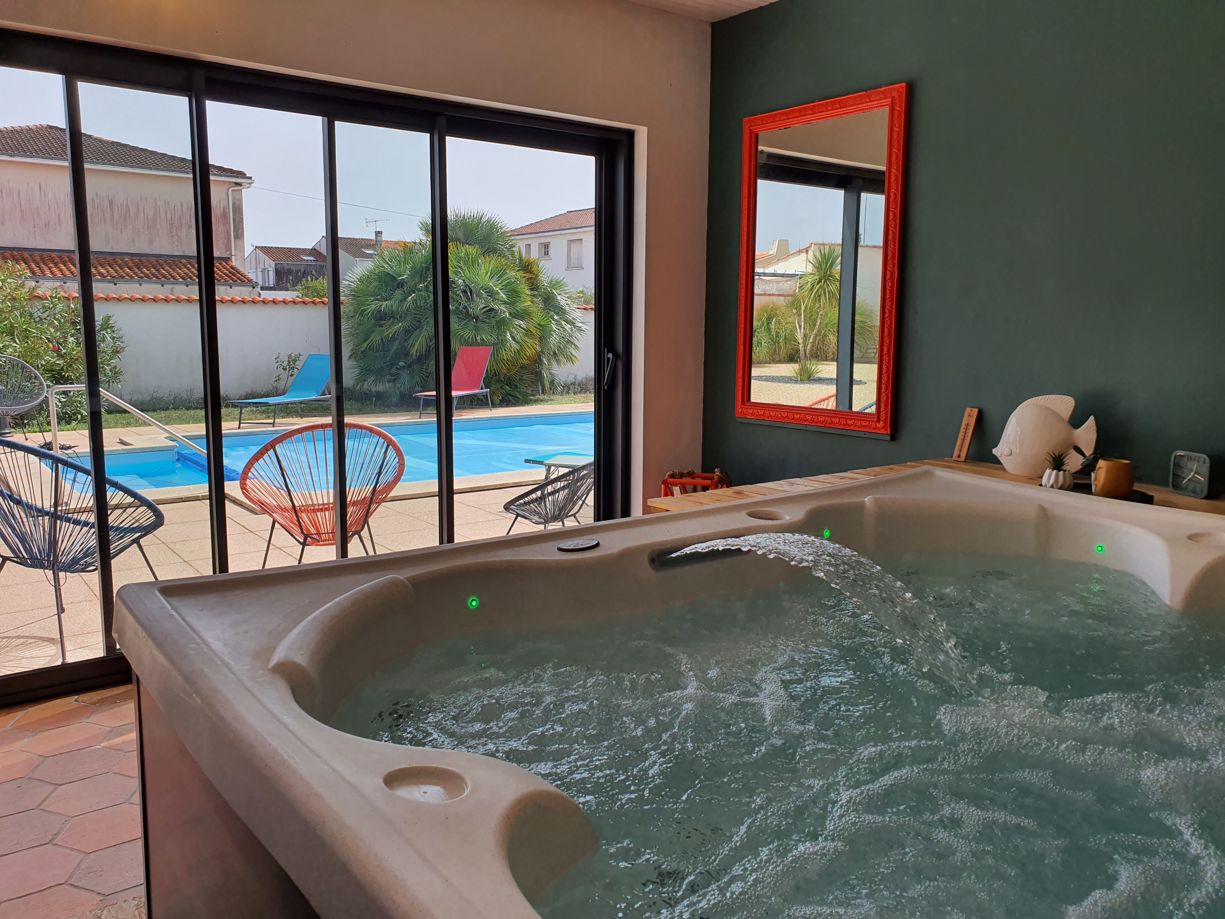 Ancienne maison de pêcheur à 400 m du centre de L’Aiguillon-sur-Mer, des commerces, services ou marchés et plans d’eau. Rénovée en 2025, ses 141 m2 de surface habitable et une pièce de loisirs de 19 m2 avec Jacuzzi, offrent plus de 160 m2 de plain pied et un garage de 44 m2 avec porte motorisée et galetas. Pièce de vie lumineuse de 63 m2 avec cuisine ouverte équipée neuve. Trois chambres de 15 à 19 m2. Trois salles d’eau et trois WC dont deux indépendants. La grande chambre indépendante avec porte extérieure a sa salle d’eau. Des placards intégrés, un atelier de 9m2, un local piscine et une cave de 6 m2 complètent ce bien. Sur un terrain de 664 m2 bordé de murs, la piscine de 9 x 4 m avec bâche et volet roulant électrique, un jardin d’agrément, une terrasse en bois protégée par store banne ainsi qu’un voisinage calme, permettent de profiter pleinement des extérieurs.