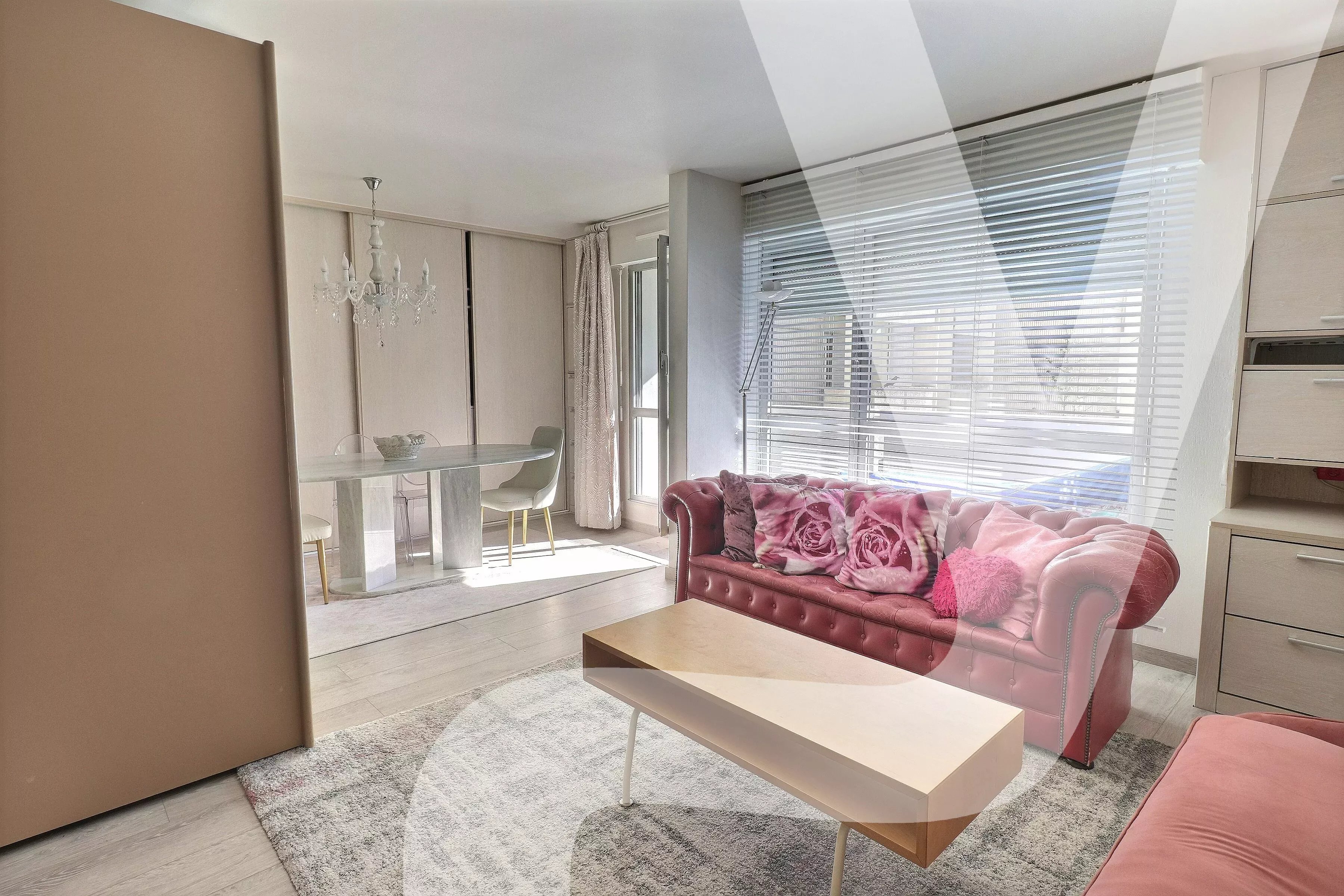 L’appartement, calme et donnant sur des jardins privatifs, se situe dans un immeuble spacieux, sécurisé et bien entretenu avec gardiens. Il bénéficie d’un accès pratique par deux ascenseurs.