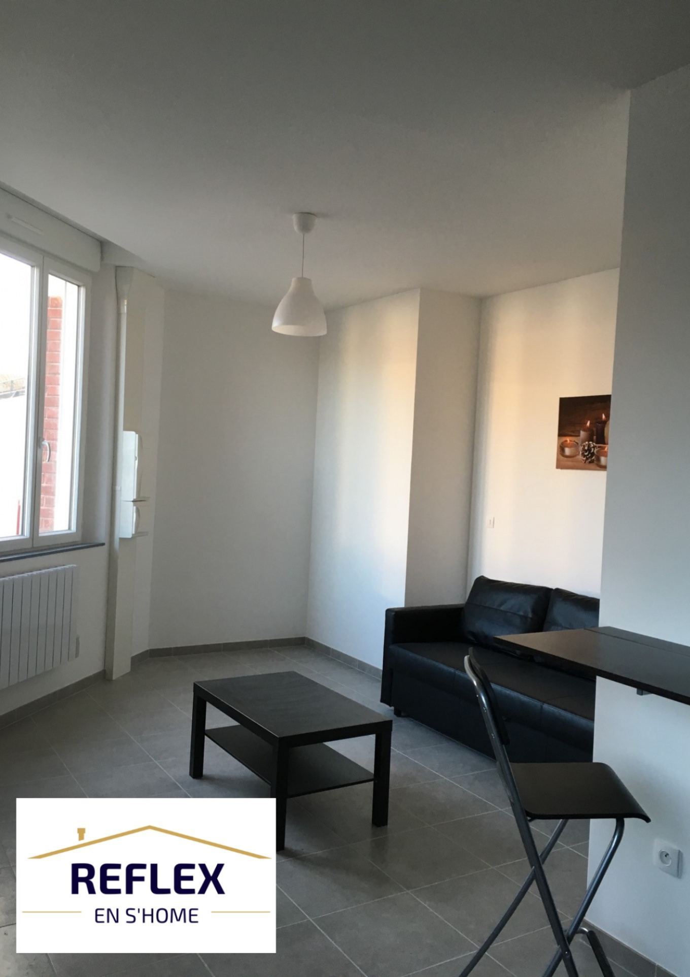 L'Agence Reflex en s'Home vous propose à la location ce studio proche de la gare et du centre-ville d'Albert. Rénové et moderne ce studio meublé se compose d'une pièce de vie lumineuse avec coin cuisine équipée et aménagée (micro-ondes, plaque, hotte, frigo), une salle d'eau avec douche et WC.