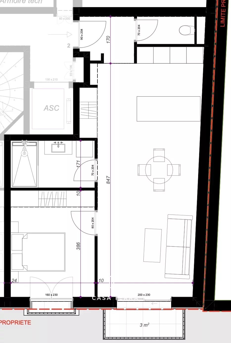 Situé au 1er étage, ce vaste 2 pièces d'une surface de 59 m² se compose d'un séjour avec cuisine ouverte (non comprise) de 34 m², d'une chambre de 12 m², d'une salle d'eau et d'un WC invité.