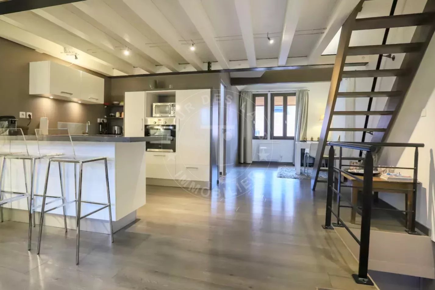 Au troisième étage d’un immeuble de charme, niché dans une rue piétonne prisée du centre historique d’Annecy, ce loft traversant offre un cadre de vie rare, à quelques pas du lac et des plus belles adresses de la ville.