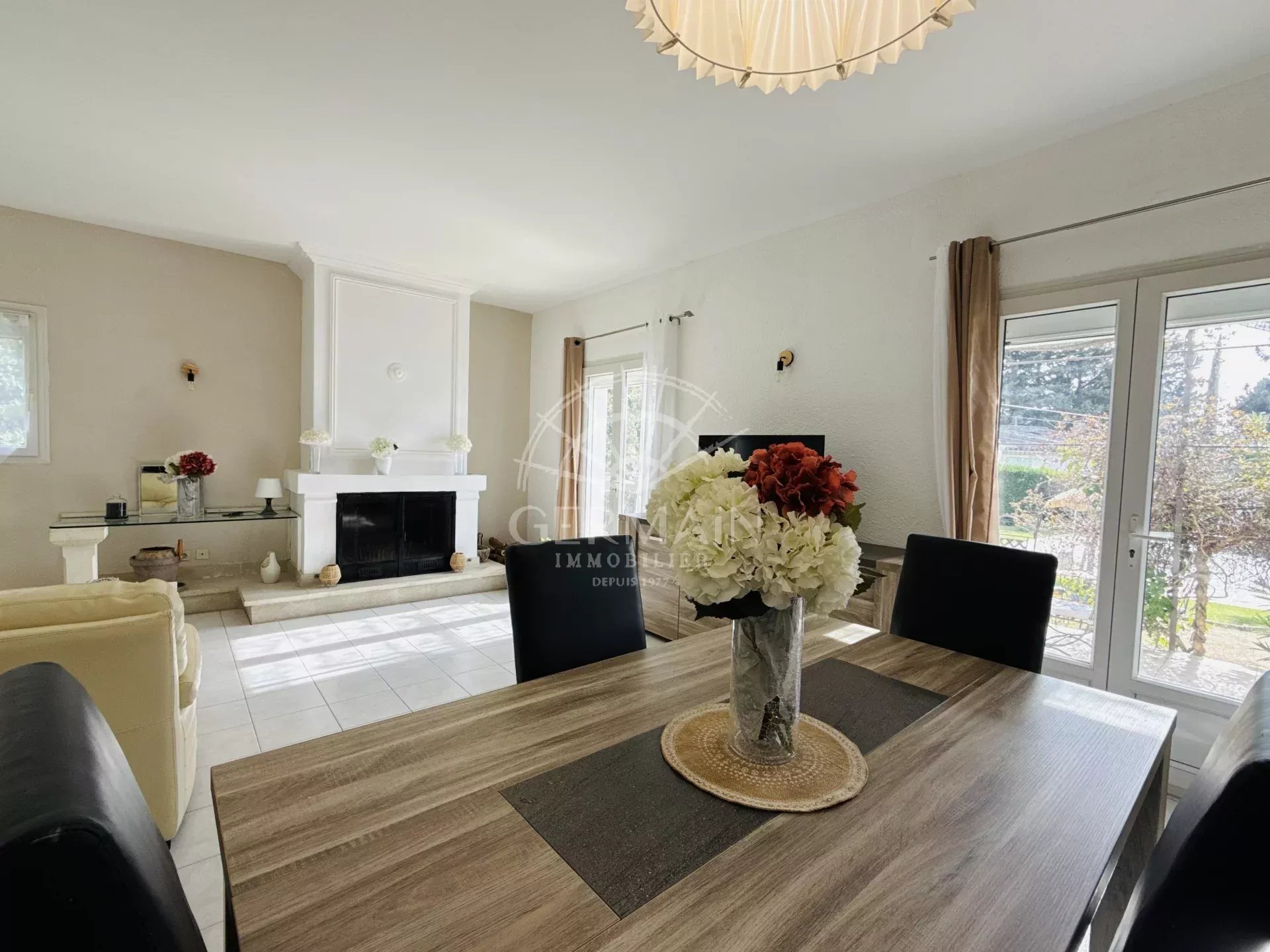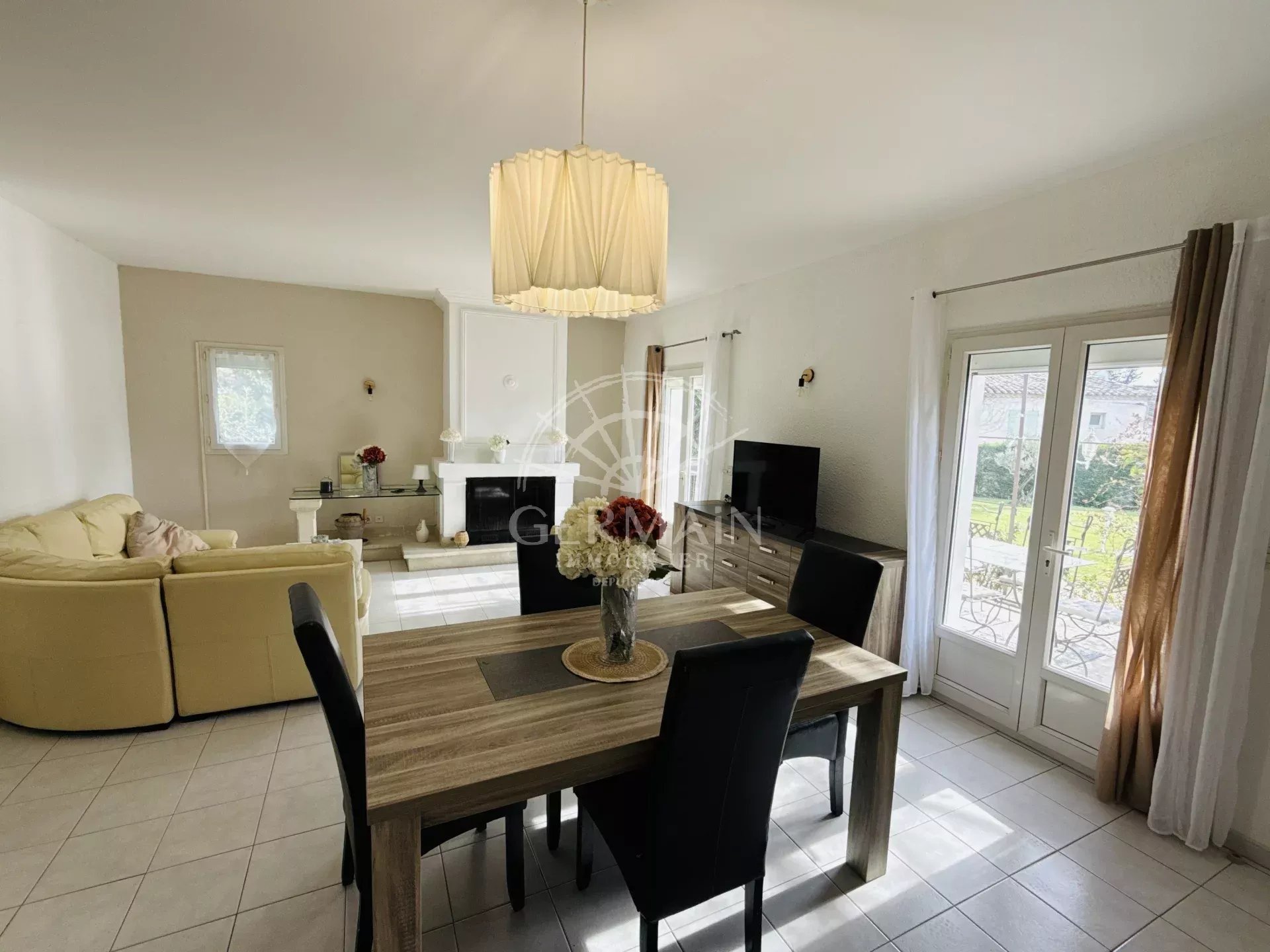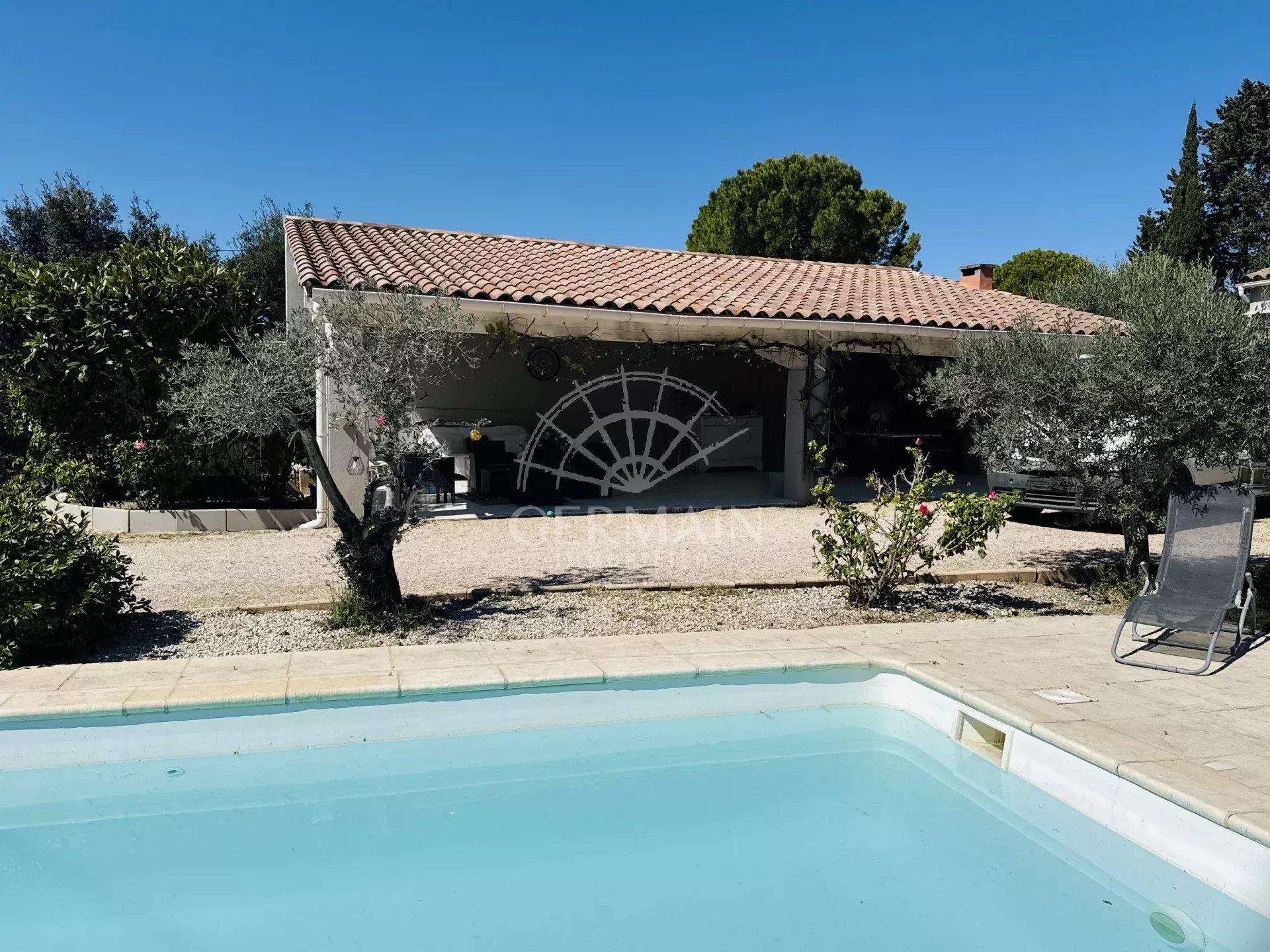 Découvrez à la vente dans votre agence Germain cette maison traditionnelle de 102 m² entièrement de plain-pied sur un terrain clos et arboré de 1250 m² avec piscine.