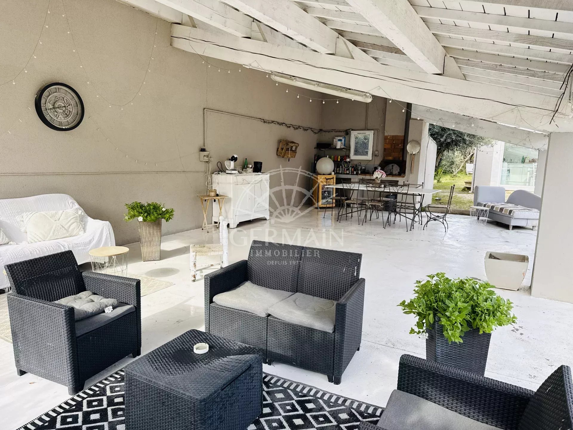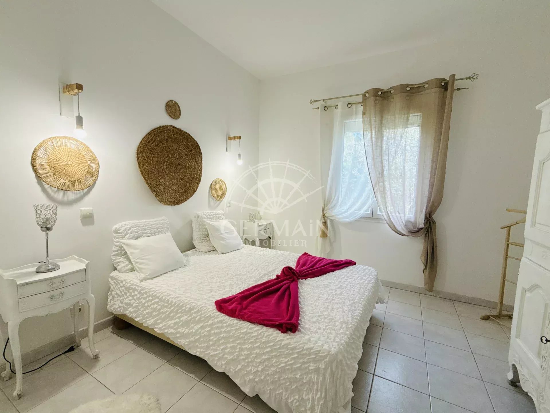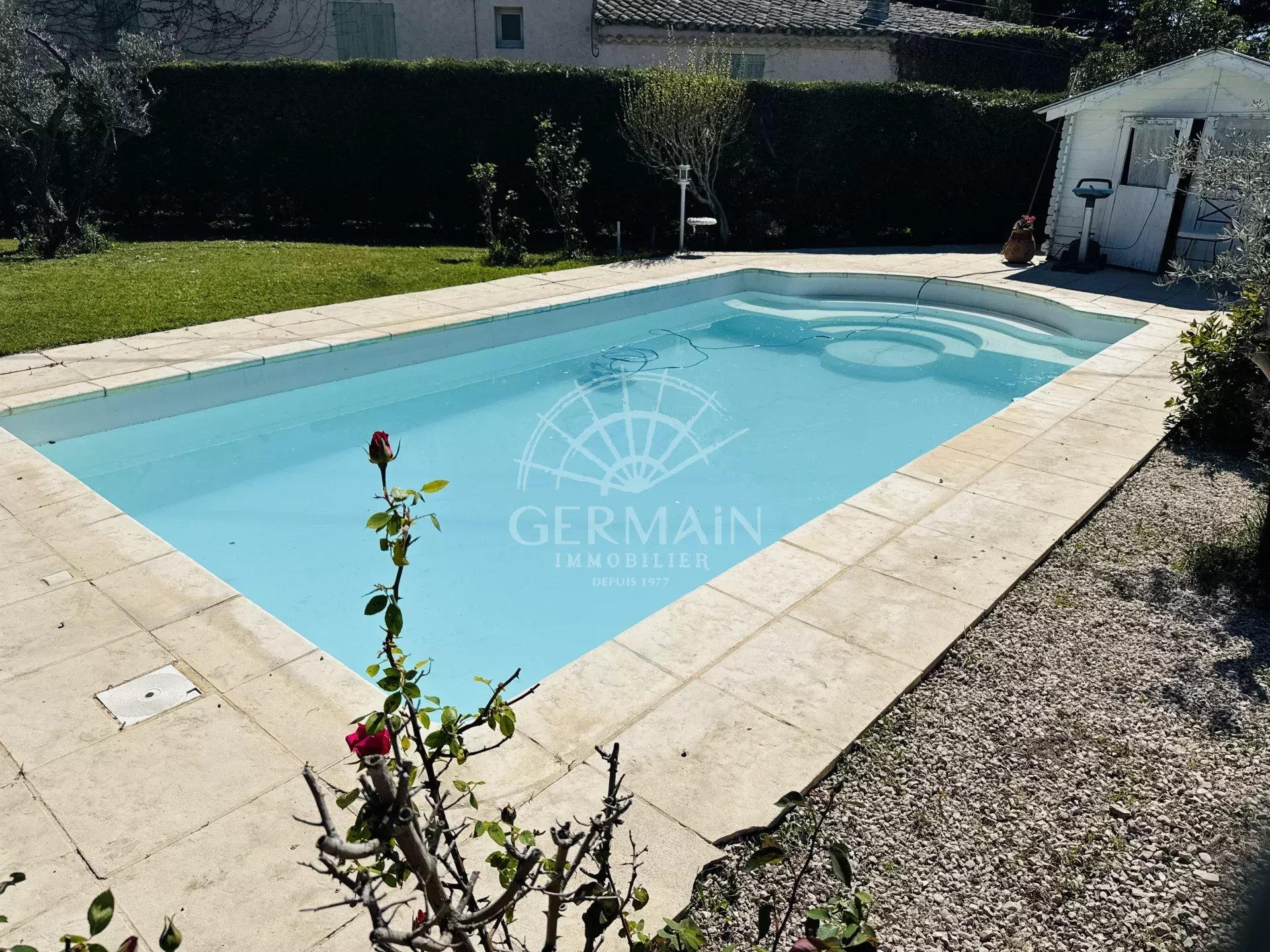 Découvrez à la vente dans votre agence Germain cette maison traditionnelle de 102 m² entièrement de plain-pied sur un terrain clos et arboré de 1250 m² avec piscine.