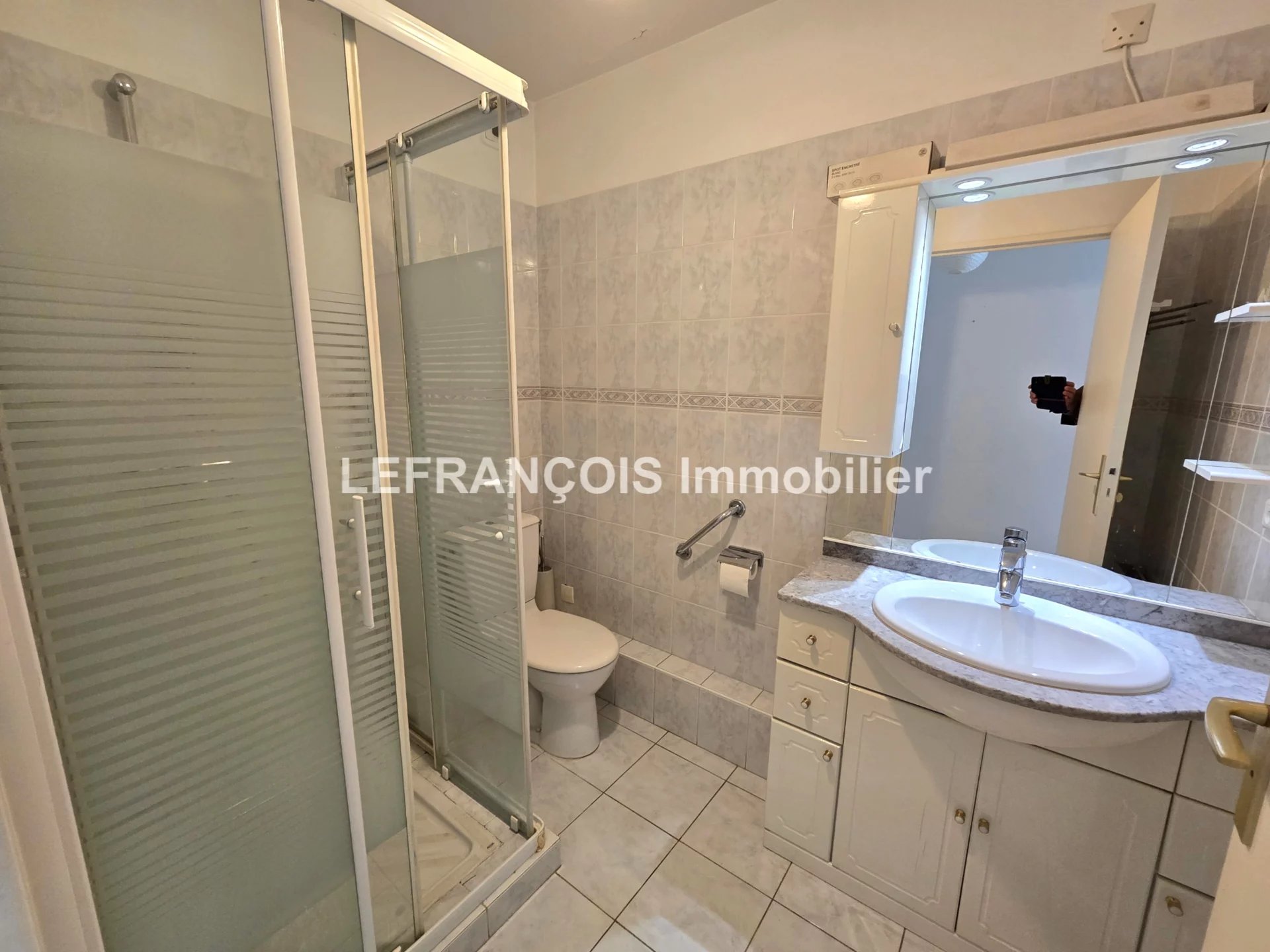Entrée avec placard, séjour lumineux et climatisé, cuisinée équipée, une chambre climatisée avec placard, une buanderie, une salle d'eau avec WC. une terrasse.