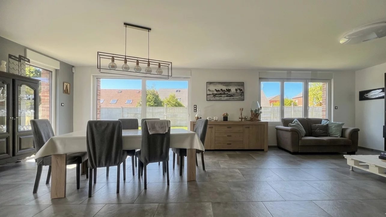 Vous recherchez l’irréprochable ? Découvrez cette villa moderne aux prestations haut de gamme, conçue pour ceux qui exigent confort, design et sérénité. Dès l’entrée, laissez-vous séduire par un espace de vie baigné de lumière, où chaque détail a été pensé avec soin. ✨ Les points forts qui font la différence : Cuisine d’Exception : Une réalisation monumentale, mariant esthétique noire mate et fonctionnalité, idéale pour les passionnés de gastronomie. Espace Nuit de Prestige : Une suite parentale avec un dressing de showroom digne des plus grands hôtels. 4 autres chambres. Confort Absolu : Salle de bain ultra-moderne, matériaux nobles (carrelage grand format, verrières) et finitions impeccables. Extérieur "Cocon" : Un jardin tournant optimisé en terrasse intimiste. Profitez de vos soirées d’été sans les contraintes d’un entretien lourd. Pourquoi choisir cette maison ? Parce qu'ici, il n'y a aucun travail à prévoir. C'est un bien "clé en main" pour les acquéreurs qui valorisent leur temps et leur confort de vie au-dessus de tout. 📞 Contactez moi pour plus d’informations ou organiser une visite. Ruben MARLE - Agent Commercial Immobilier RSAC Douai - 944 580 893 06X28X37X60X75