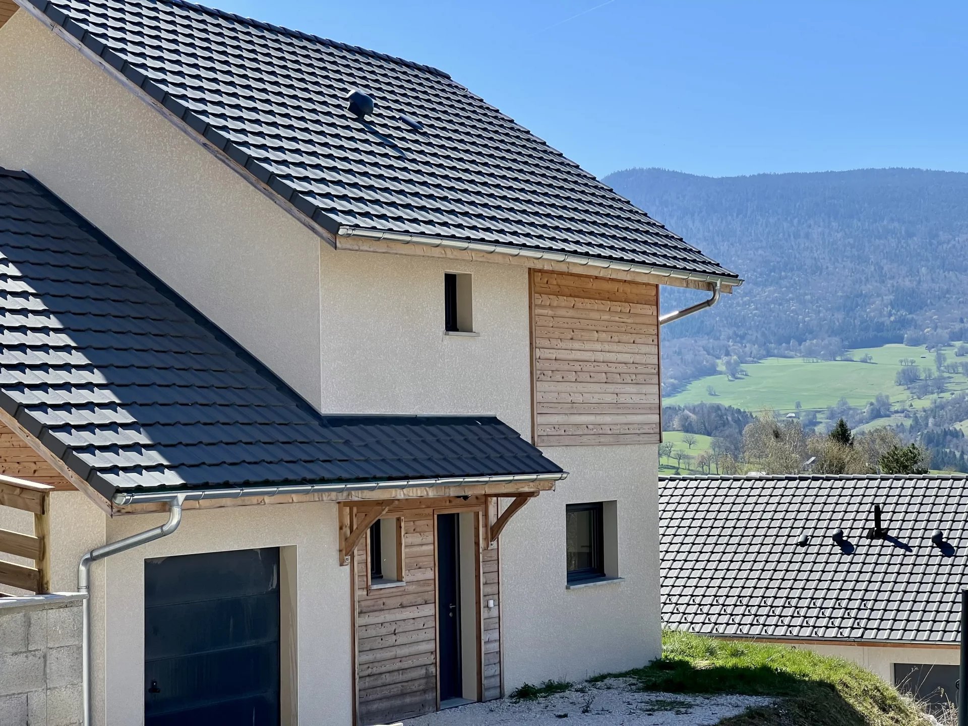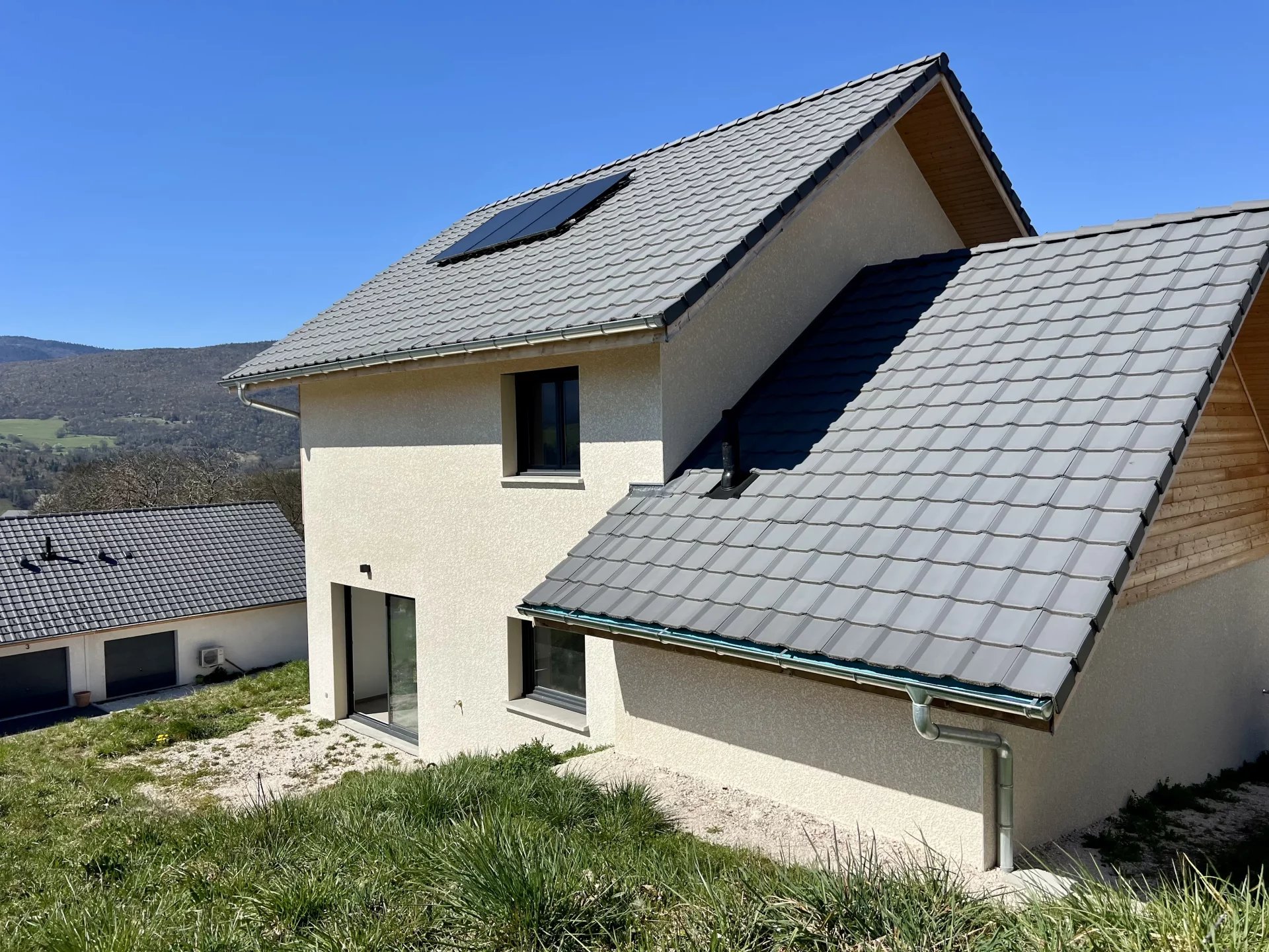 Découvrez cet opportunité rare dans un hameau calme de la Motte en Bauges. Cette maison complètement neuve de plus de 90 m2 habitable avec garage et buanderie offre une vue à couper le souffle sur les montagnes des Hautes-Bauges. Au premier niveau, le grand séjour avec cuisine ouverte de 43 m2 donne sur la terrasse exposé sud. On retrouve également une entrée indépendante, un toilette et un accès au garage. Trois grandes chambres et une salle de bain se trouvent à l'étage ou les vues sur la vallée sont encore plus spectaculaires. Cette maison a été conçue de manière très fonctionnelle et les performances énergétiques sont au rendez-vous. Chaudière gaz, panneaux photovoltaïques, volets roulants, accès de plain-pied, prise au sol dans le salon, tout à été réfléchi pour un confort optimal. La maison se trouve dans un petit lotissement récent et bien entretenu. Prenez contact rapidement pour une visite ou pour tout renseignement.