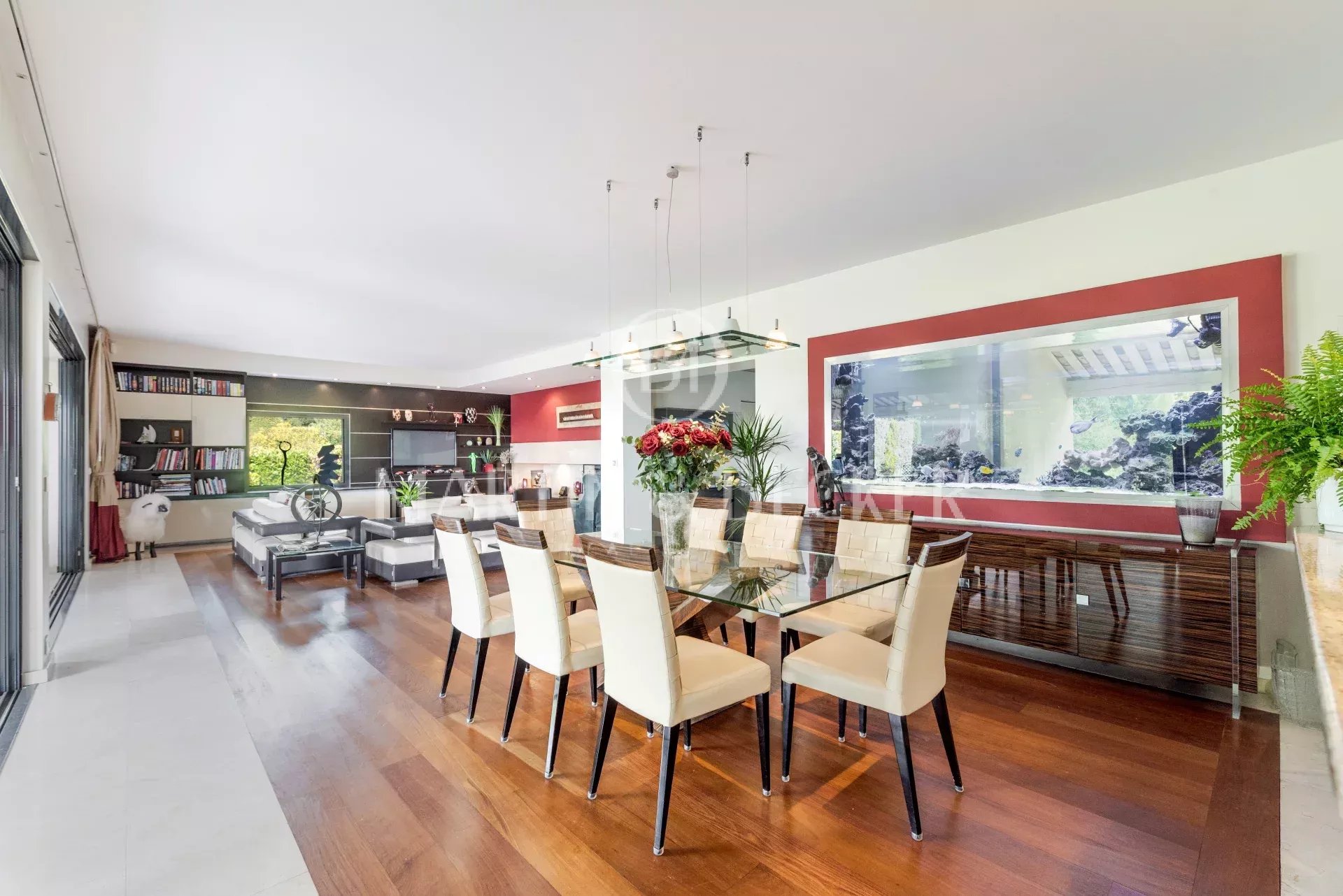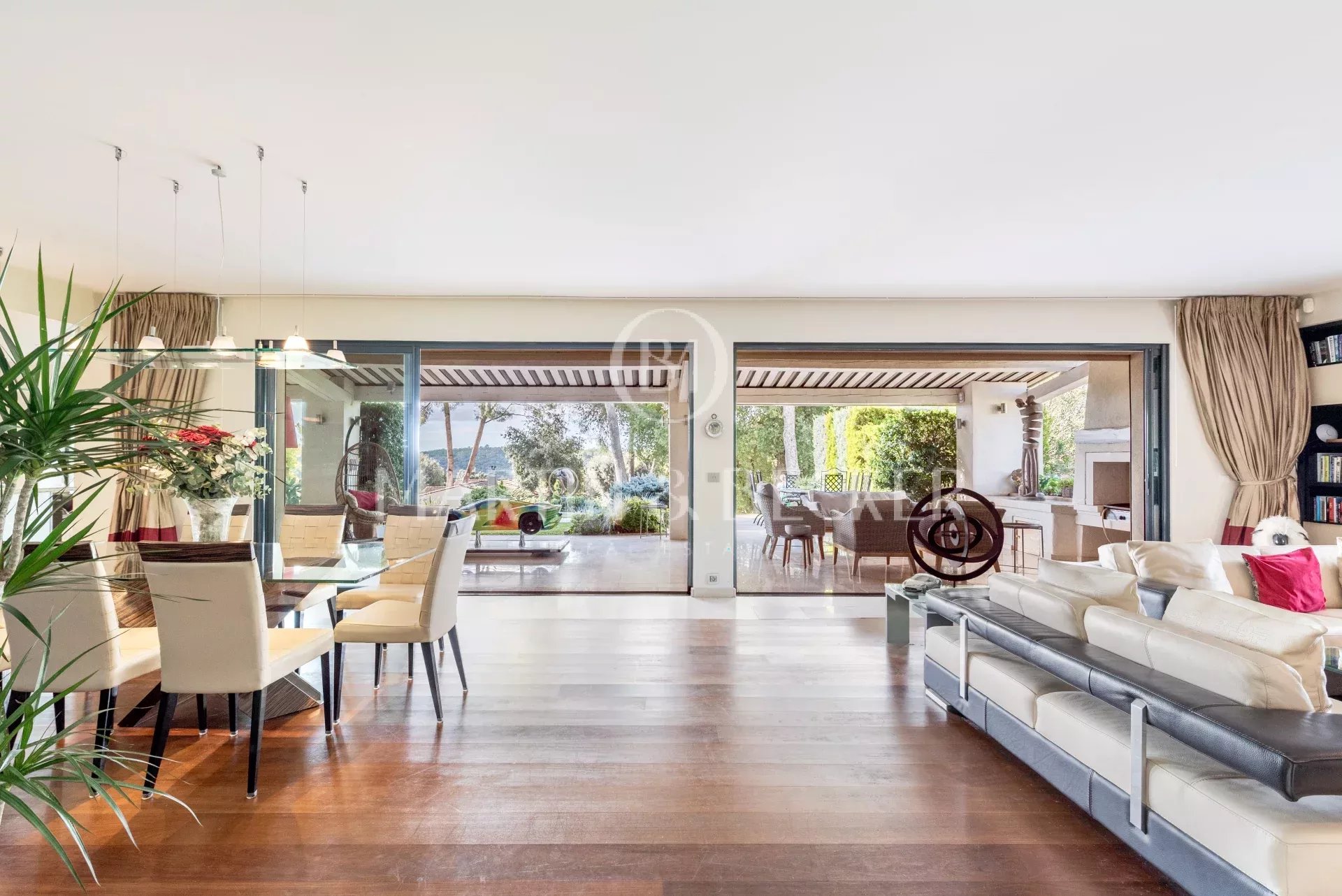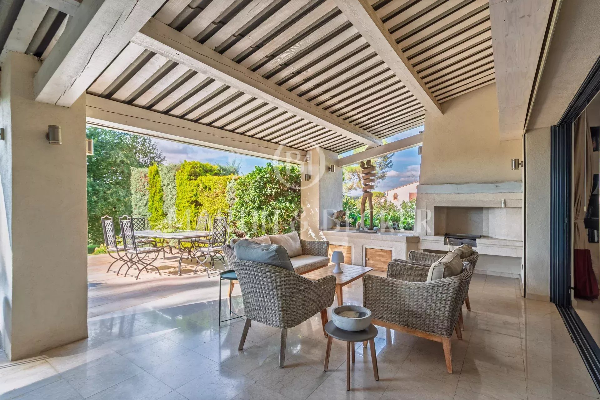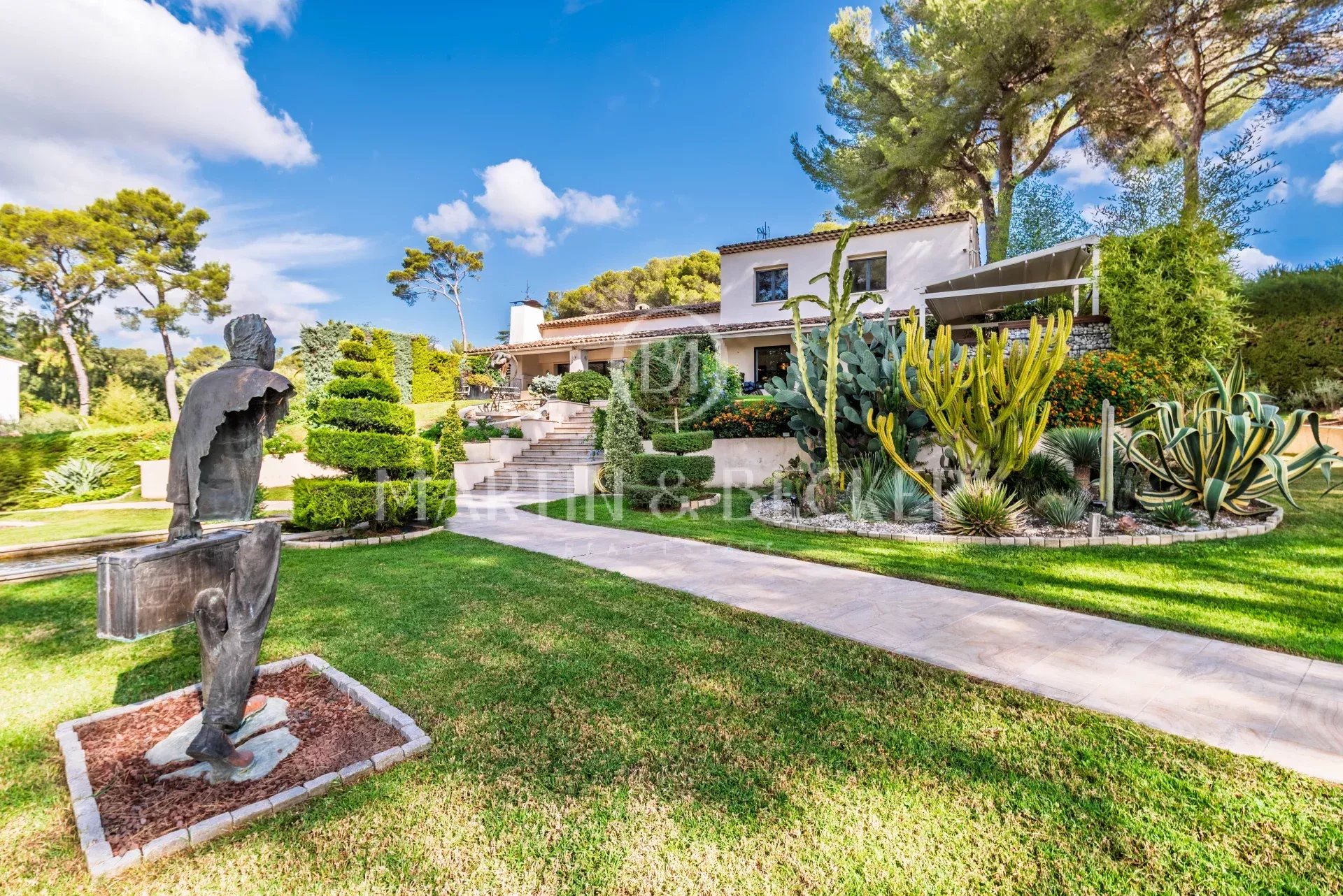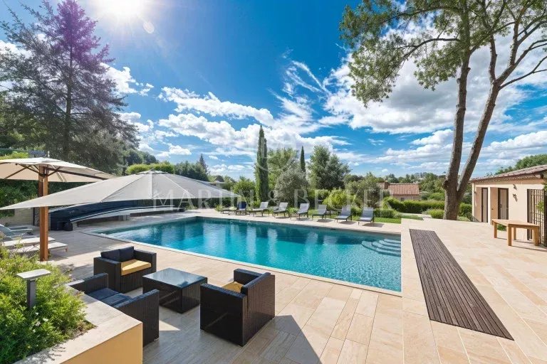 Située dans un quartier résidentiel prisé, entre les villages de Valbonne et de Biot, belle propriété principale de 7 chambres et une maison d'invités de 2 chambres et pool house, agrémentée d’un splendide jardin paysager, où chaque espace extérieur invite à la détente. Terrasses ensoleillées, piscine chauffée de 14x8, boulodrome et essences méditerranéennes composent un cadre de vie rare et enchanteur. La maison principale propose un vaste salon prolongé par une grande terrasse qui surplombe le jardin. Le salon est ouvert sur une cuisine familiale d’où l’on admire le jardin par une large baie vitrée. La maison offre une suite parentale (dressing et salle de bain) et un bureau de plain-pied, à l’étage 1 chambre ensuite, 2 chambres qui se partageant 1 salle de bain et un vaste salon pour les enfants. A un demi-niveau 1 chambre ensuite et 2 autres chambres se partageant 1 salle de bain. Très rare sur le secteur, un immense garage pour 14 voitures totalement sécurisé qui fera le bonheur des passionnés d’automobiles. Une adresse exclusive, à proximité de villages pittoresques de la coté d’azur, des golfs renommés, des écoles internationales (Mougins shool, CIV) et à 25 minutes de l’aéroport de Nice et des belles plages de Cannes et d’Antibes. Un lieu parfait pour partager des moments inoubliables en famille ou entre amis, dans un cadre accueillant et chaleureux.