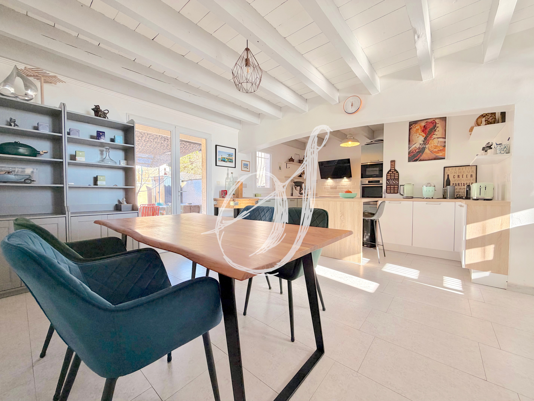 Située sur les hauteurs du village, à quelques minutes de Montpellier, au calme d'une impasse, cette maison de construction traditionnelle offre un cadre de vie paisible et agréable. L'espace de vie, d'une superficie de plus de 52 m2, réunit cuisine, séjour et salon sous une belle hauteur sous plafond sublimée par des poutres apparentes. Lumineux et convivial, il s'ouvre sur une terrasse arborée et un jardin d'environ 300 m2, exposé plein Sud, offrant de deux espaces distincts propices à la détente. La maison dispose de trois chambres, de deux salles d'eau ainsi que d'un bureau pouvant être aménagé en chambre d'appoint, assurant une organisation intérieure à la fois pratique et confortable. Entièrement rénovée, ce bien non mitoyen est équipé d'une piscine hors sol, de panneaux photovoltaïques et deux emplacements de stationnement.