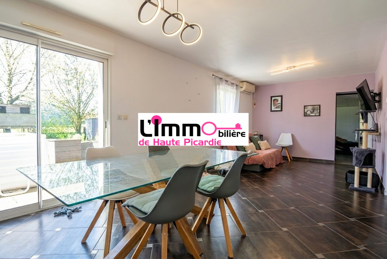 L'IMMOBILIERE DE HAUTE PICARDIE vous propose cette charmante maison mitoyenne de 2008, offrant 120,72 m² habitables en semi plain-pied. Un bien en excellent état, idéal pour une famille cherchant confort et proximité des commodités.