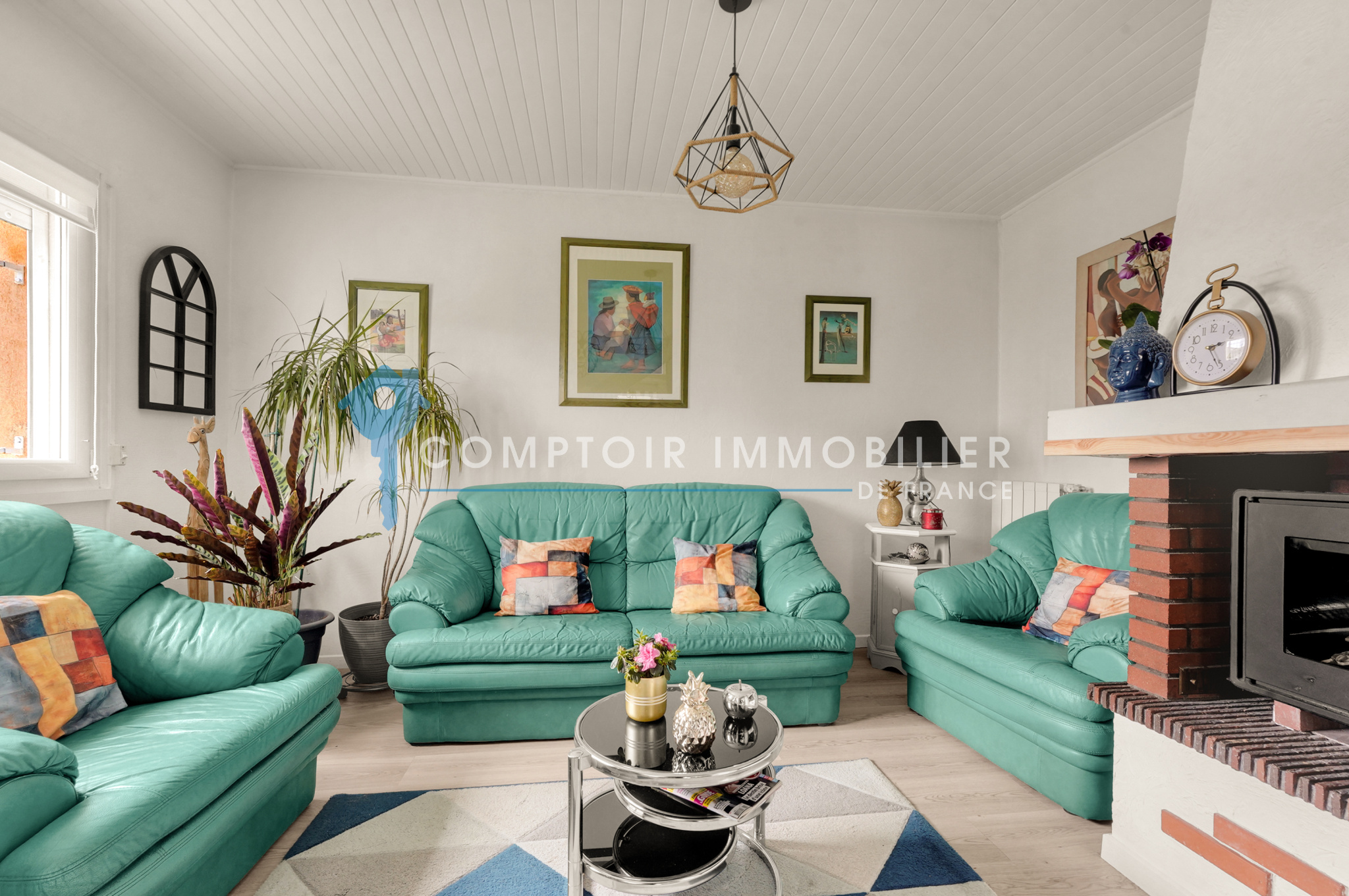 La maison offre au rez-de-chaussée un séjour lumineux et convivial, avec coin salon / TV et cheminée avec insert, ouvrant sur une agréable véranda baignée de lumière, créant un véritable espace de vie supplémentaire très appréciable.