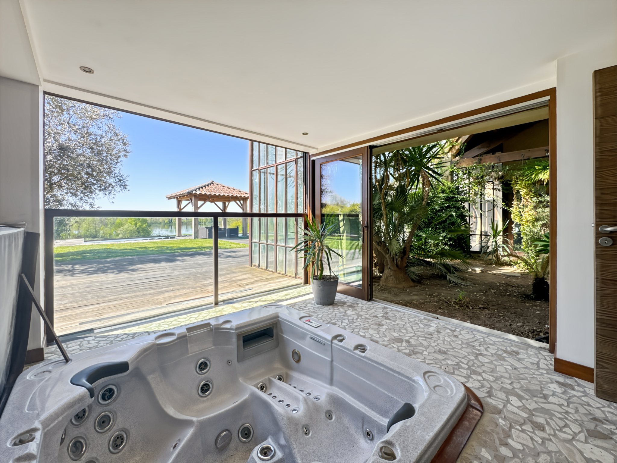 La suite parentale, véritable cocon, dispose d'un accès direct à un espace détente avec jacuzzi, offrant un cadre intime et privilégié.
