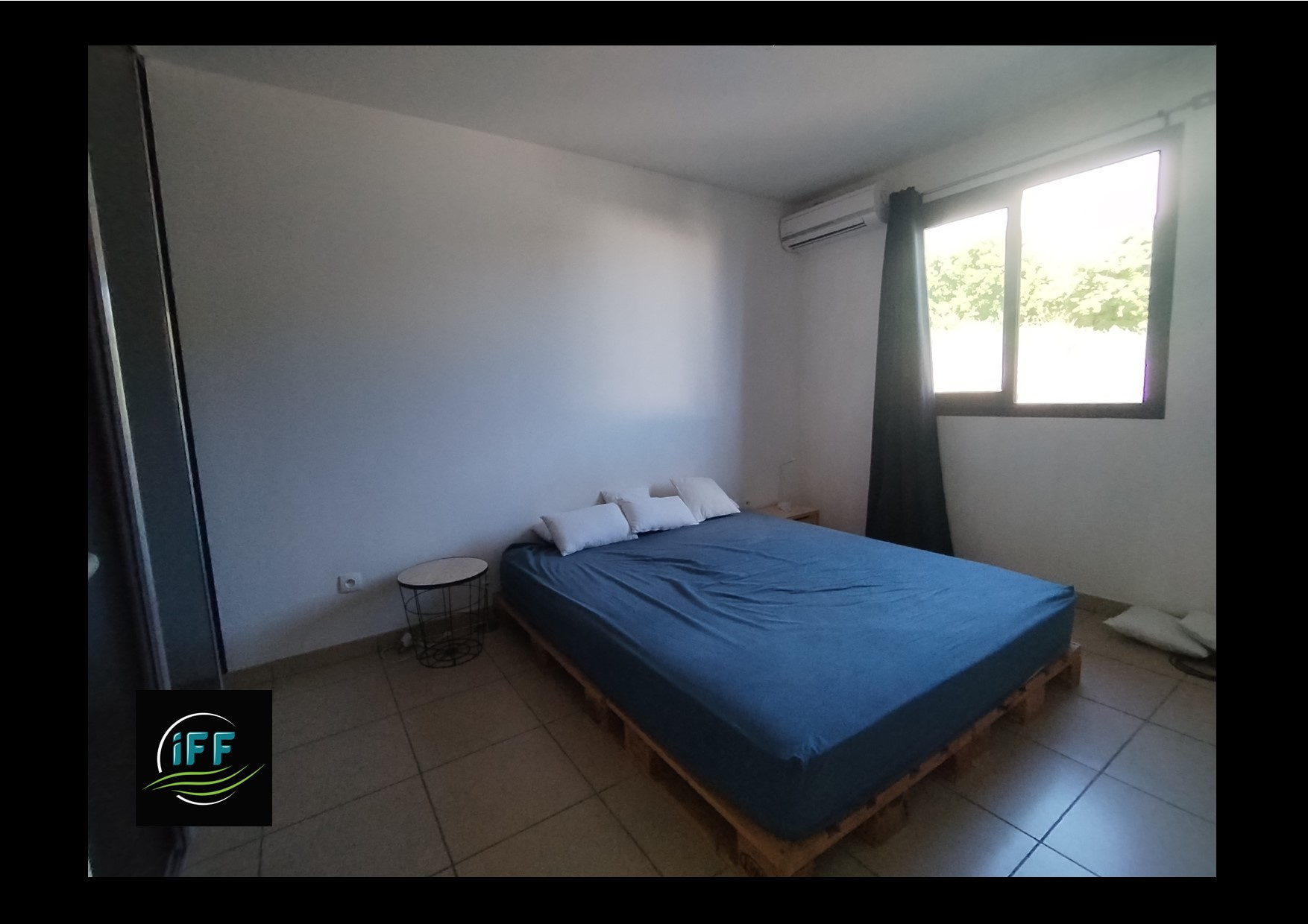 Cet appartement est composé d'un séjour, une cuisine aménagée et équipée (four, plaque de cuisson, hotte), une salle de bain, une grande chambre climatisée avec placard, un wc indépendant, une grande terrasse avec une belle vue mer, sans vis à vis.
