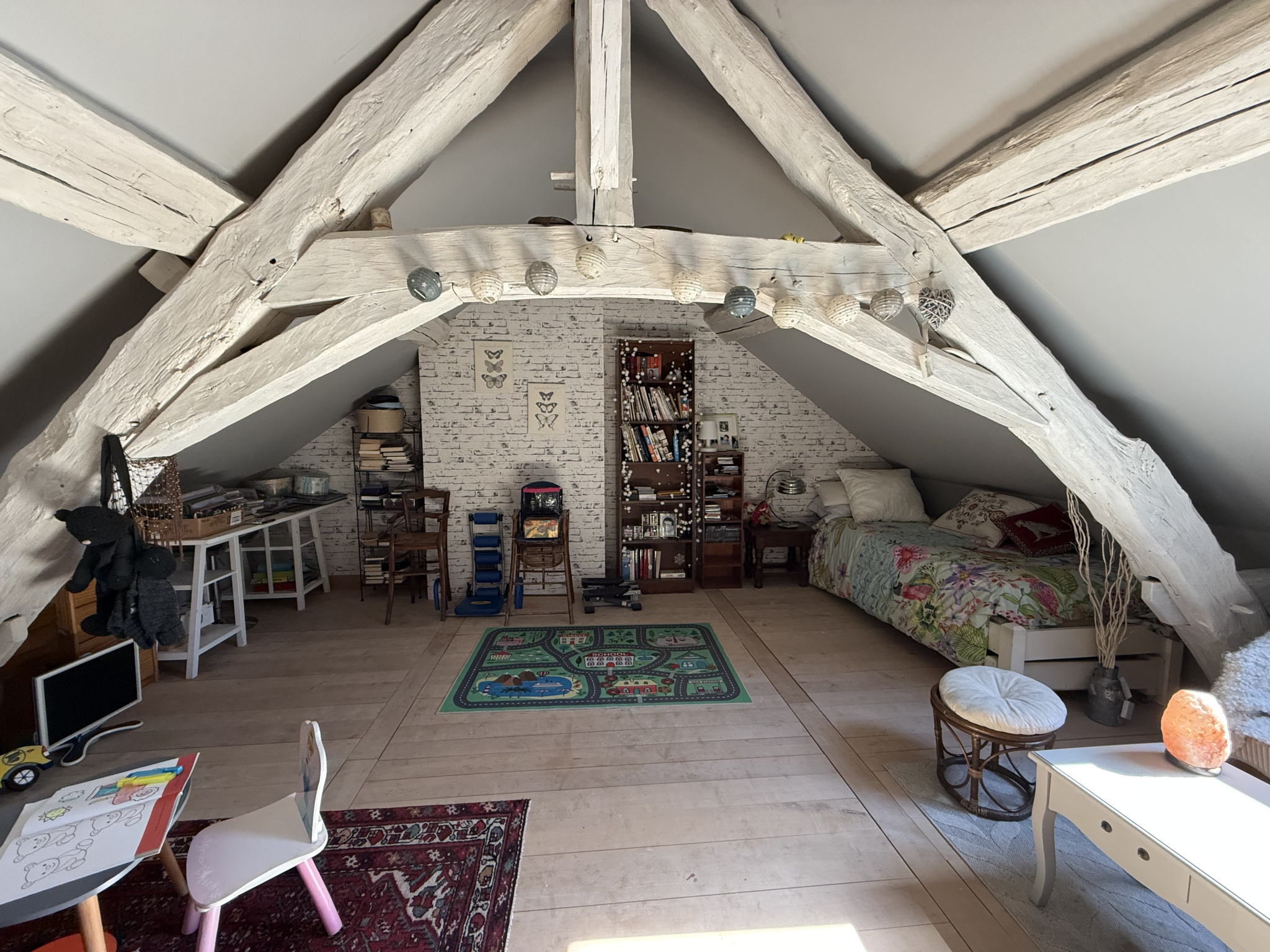 A l'étage, un espace bureau, deux grandes chambres lumineuses.