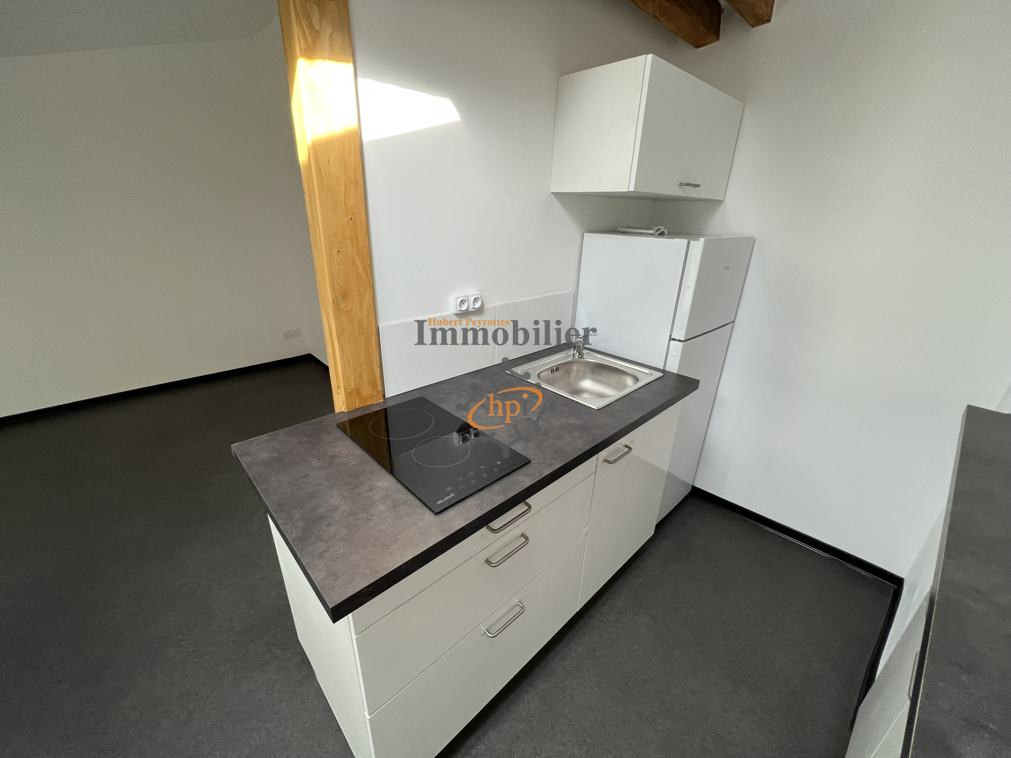 A louer Saint Affrique, centre-ville, Boulevard de Verdun, appartement de type 2 en 3ème et dernier étage, entièrement rénové. 38 m2 habitables, entrée sur salon-séjour 25 m2 avec cuisine équipée et intégrée (plaque électrique, réfrigérateur-congélateur), une chambre, salle d'eau avec w-c. Disponible début Juillet 2026.