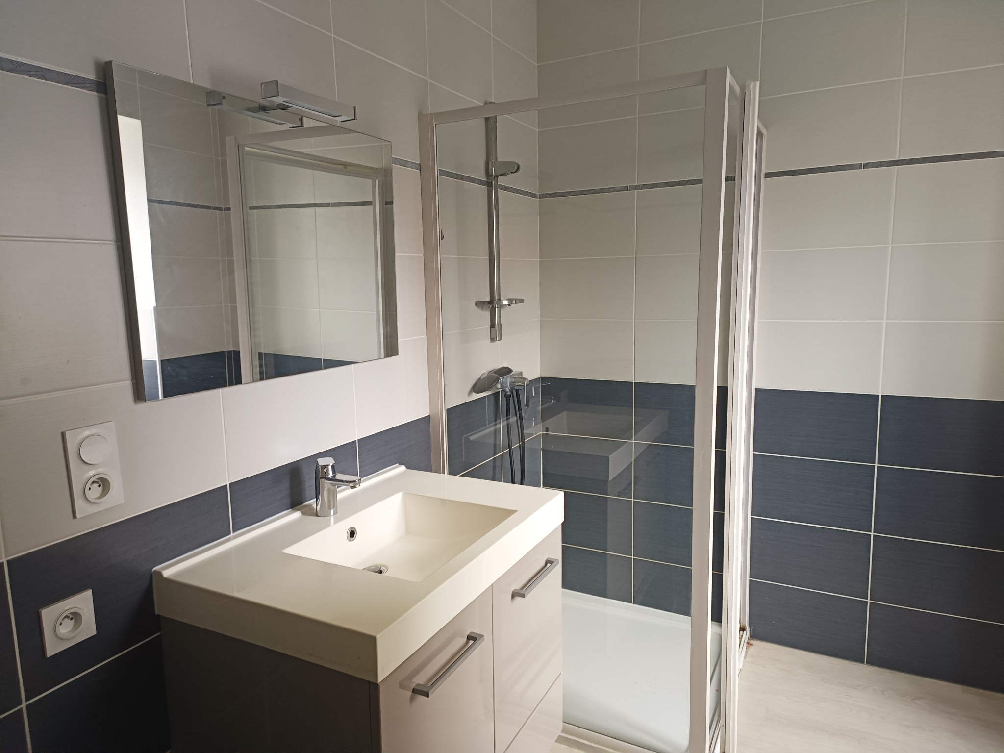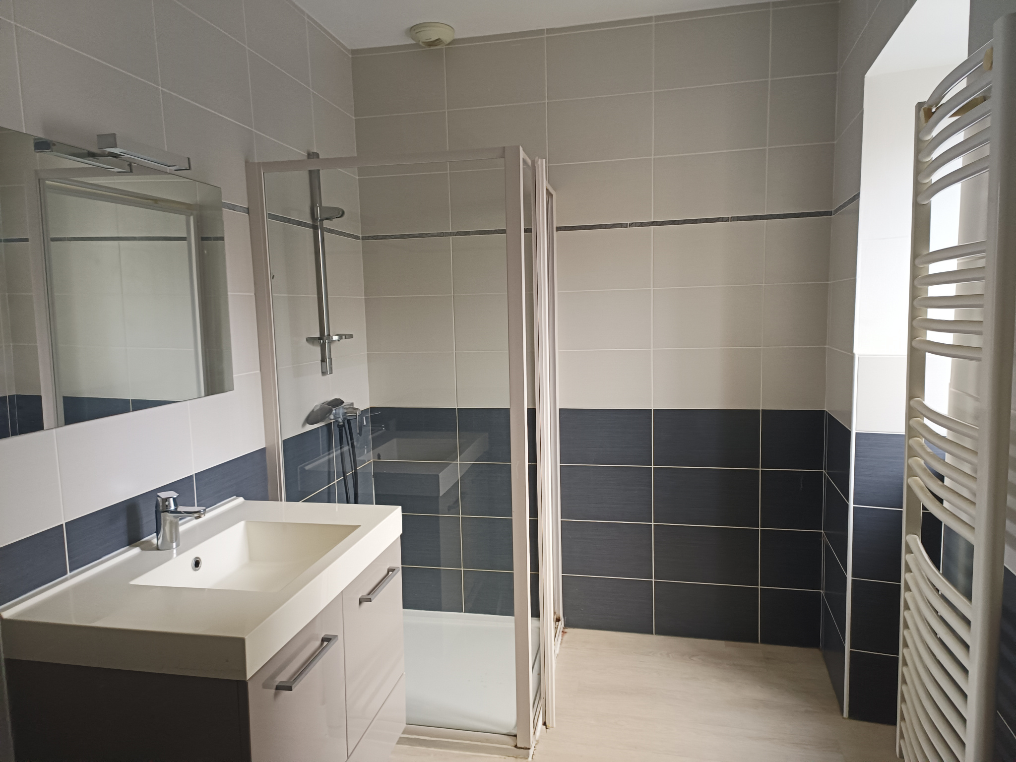 1ER LOGEMENT : en rez de chaussé actuellement loué normes PMR composé : hall, une cuisine ouverte sur salon/séjour, une salle de douches avec WC, une chambre avec dressing, une courette, une cave