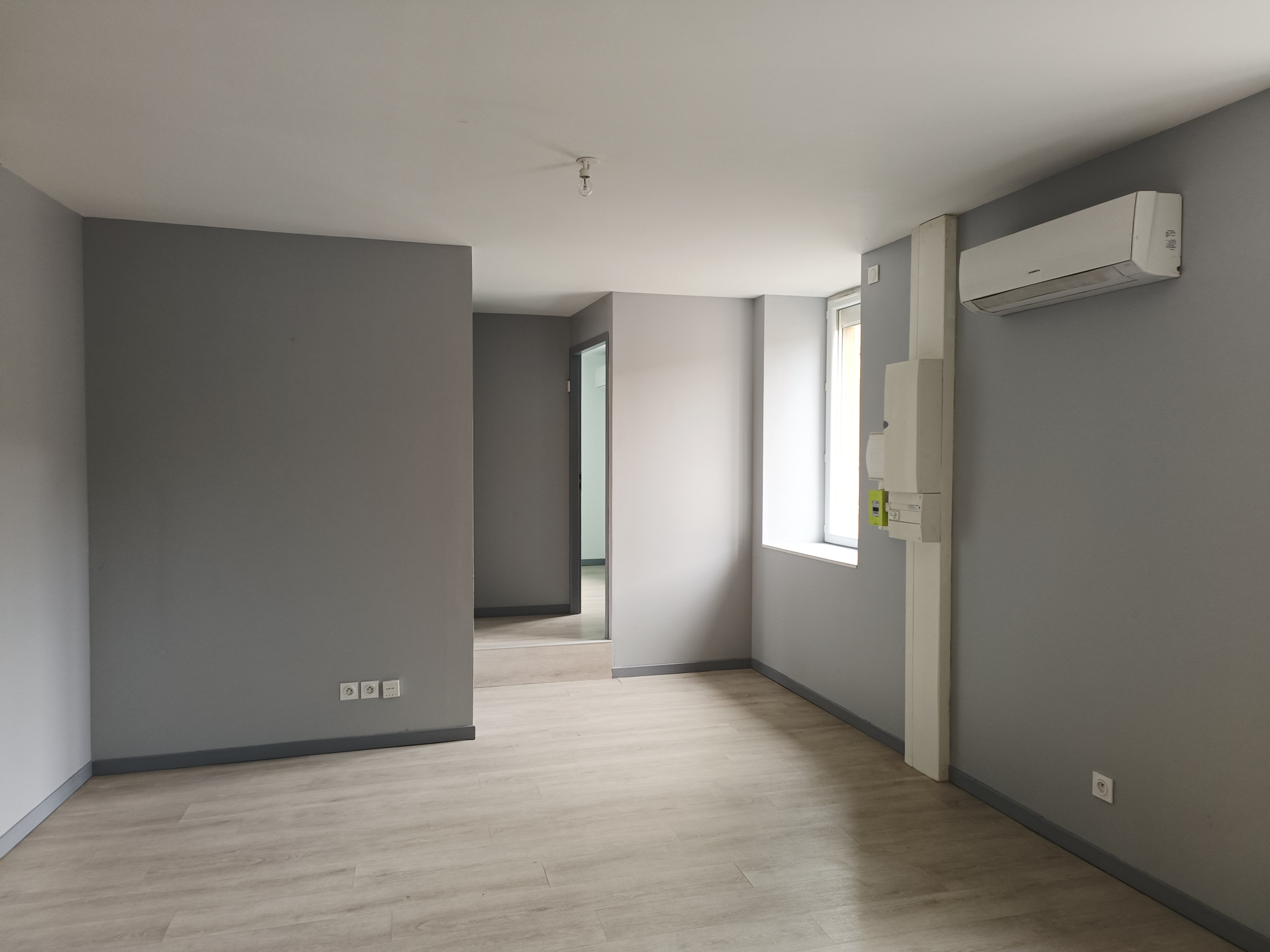 1er ETAGE : actuellement vide, composé d'une cuisine équipée ouverte sur le salon/séjour, une salle de bains, un WC, à l'étage un grenier aménageable
