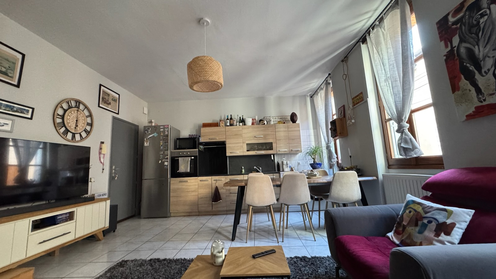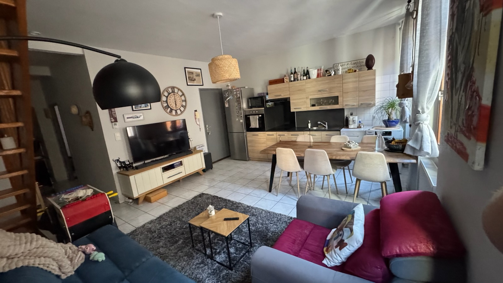 Au centre ville de VILLEMUR/TARN, aux pieds des commerces et commodités, bel et grand appartement T3 duplex situé au 1er étage d'un petit immeuble privatif. Rénové, très lumineux et au calme, ce logement dispose d'une grande pièce à vivre avec cuisine ouverte, entièrement équipée et aménagée, d'une grande chambre avec placards, d'une salle de bains avec baignoire et vasque, d'un WC séparé, et d'une seconde grande chambre en duplex. Chauffage individuel au gaz.