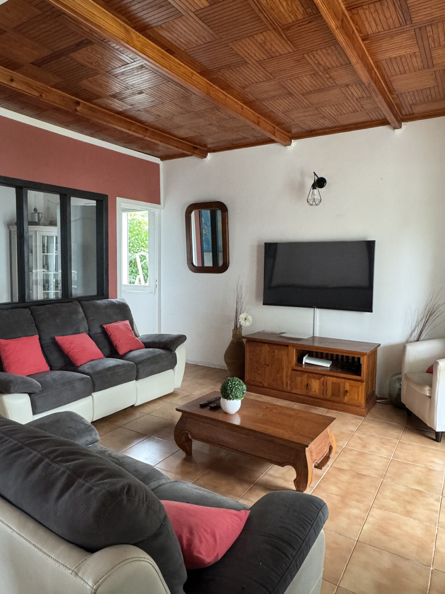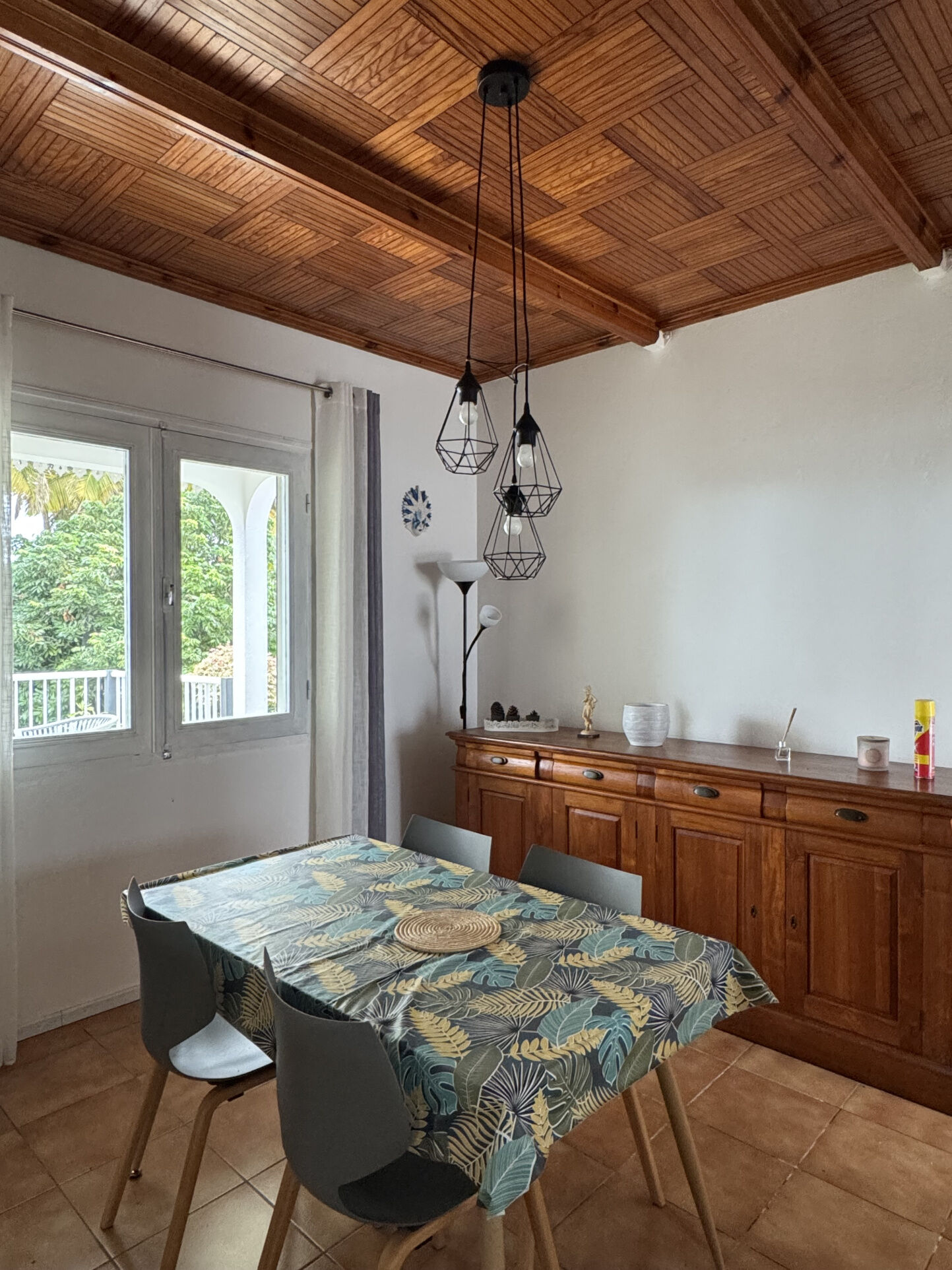 Quadran Immobilier vous propose une maison meublée de type F4, offrant un grand et beau jardin. Elle se compose de 3 chambres, d'une cuisine séparée, d'une salle à manger, d'un séjour, d'un espace bureau, d'une terrasse, d'un WC indépendant et d'une salle de bain. D'une surface habitable de 100 m², cette maison est située sur un terrain de 870 m² à La Rivière Saint-Louis. Vous bénéficierez également de 2 places de parking intérieures et de 2 places de parking extérieures.
