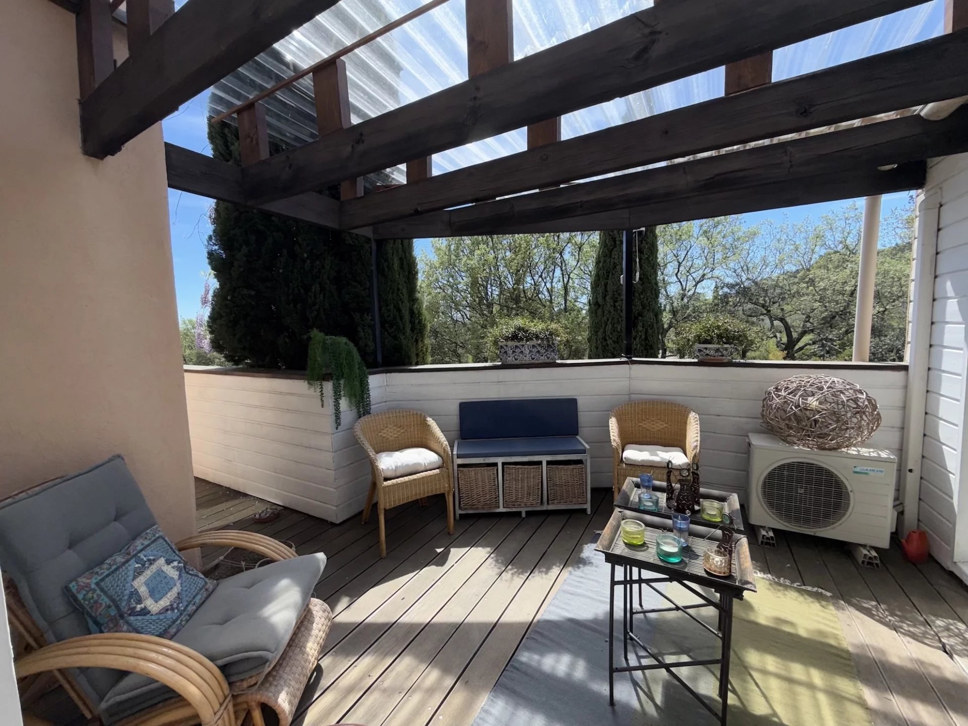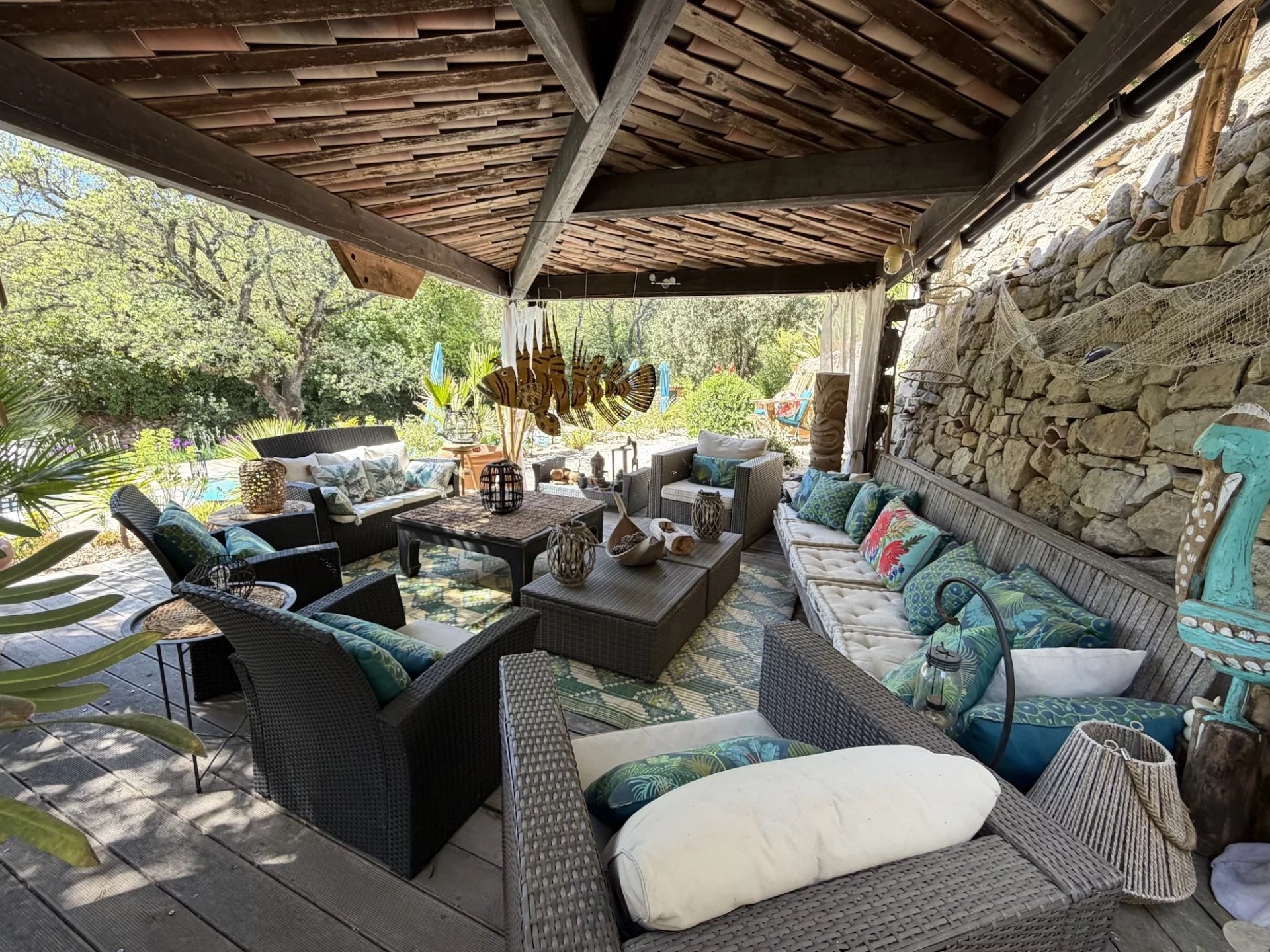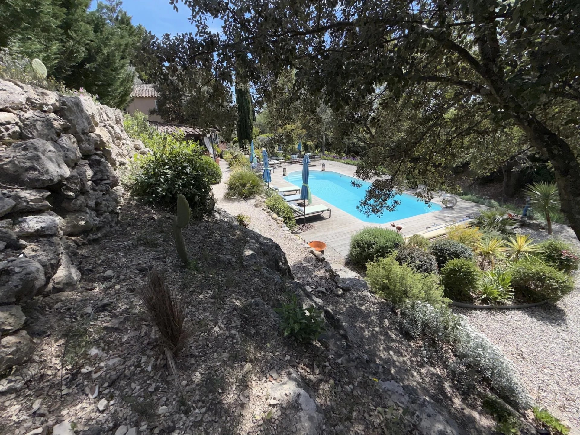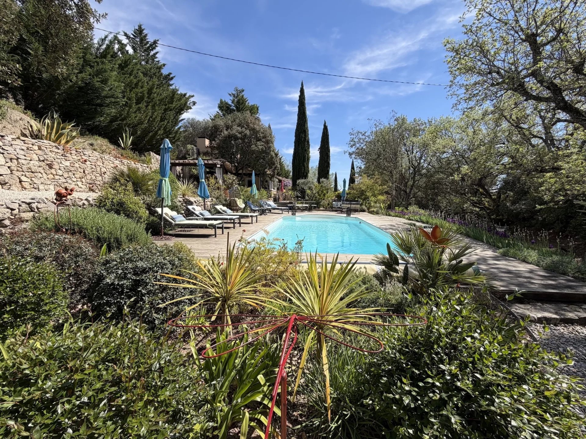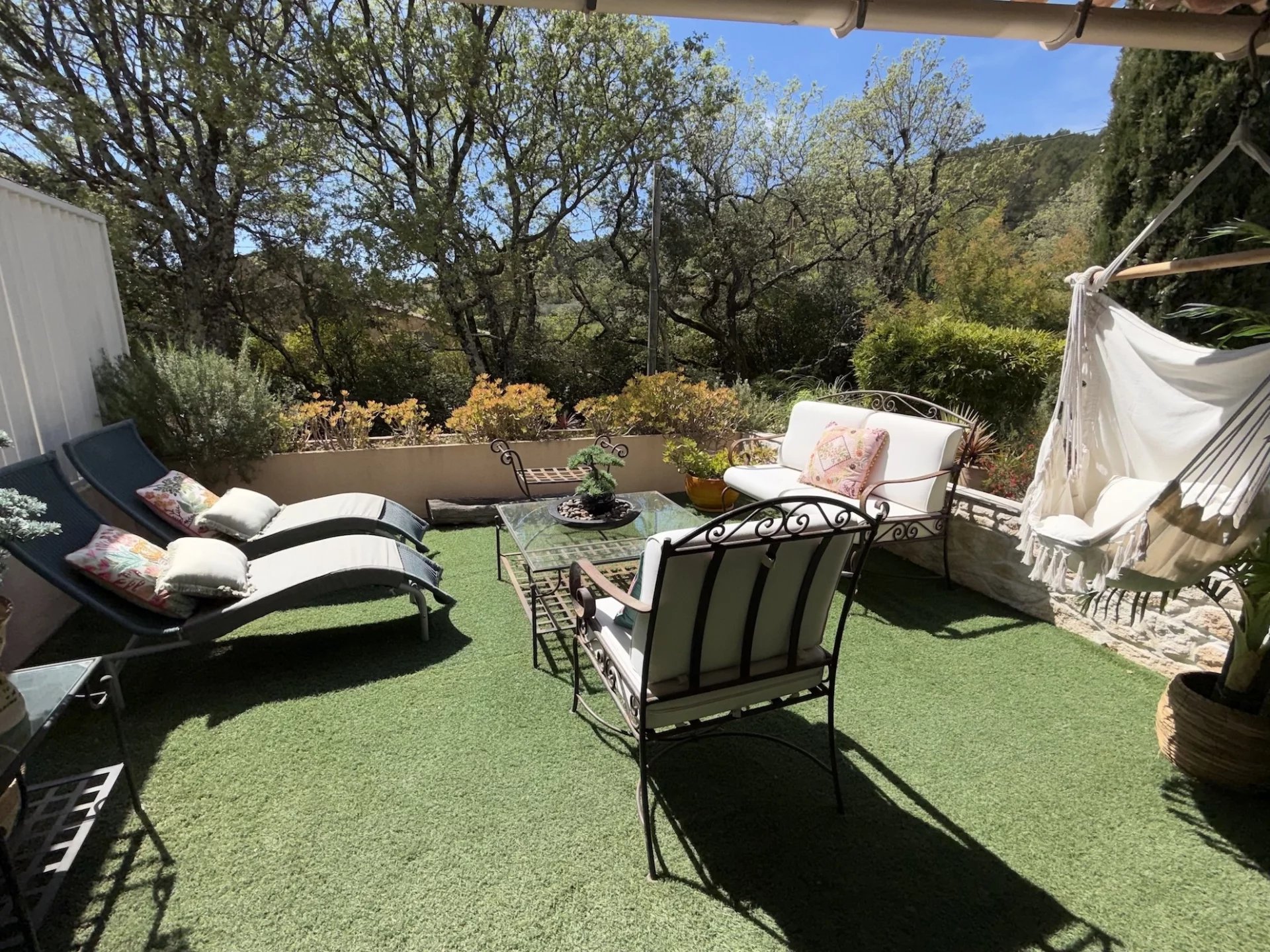 MAISON - COTIGNAC, entre les Gorges du Verdon et la Côte-d'Azur, au pied d'une impressionnante falaise de tuf, vous aurez le privilège de devenir propriétaire d’une jolie maison d’architecte dans un village de caractère unique aux façades colorées certifié Plus Beau Village de France depuis 2022. A proximité à pieds du village et de l’ensemble des commodités, la maison est implantée au cœur d’un terrain clos de 2 365 m² planté de nombreuses essences méditerranéennes. Sans vis à vis, au calme, elle offre une vue dégagée sur la campagne environnante. Le jardin est agrémenté d’une jolie piscine avec ses larges plages dallées. Une belle entrée avec dégagement, agréable salon / salle à manger avec cheminée. Cette pièce lumineuse s’ouvre sur la terrasse au Sud. Jolie cuisine ouverte entièrement équipée, cellier, tonnelle ombragée avec sa cuisine d’été, salon de jardin pour se relaxer, 1 confortable chambre parentale, avec rangements, terrasse solarium pour se détendre, salle d’eau avec wc. Une deuxième chambre. A l’étage : petit salon avec sa bibliothèque, 1 chambre spacieuse s’ouvrant sur une terrasse solarium comme l’espace bibliothèque, dressing, une chambre supplémentaire, salle de bains avec wc. Garage et carport. Située dans un quartier résidentiel recherché, exposée idéalement au Sud la maison est lumineuse et agréable à vivre. En excellent état général, décorée avec gout, les matériaux sont de qualité, les dimensions sont généreuses et les volumes harmonieux. Coup de cœur assuré, en résidence principale ou secondaire, pour cette maison pleine de charme. Excellent rapport locatif saisonnier possible. Les informations sur les risques auxquels ce bien est exposé sont disponibles sur le site Géorisques : georisques.gouv.fr. LA SIGNATURE DE L'ACTE AUTHENTIQUE NE POURRA PAS INTERVENIR AVANT FIN MAI 2026