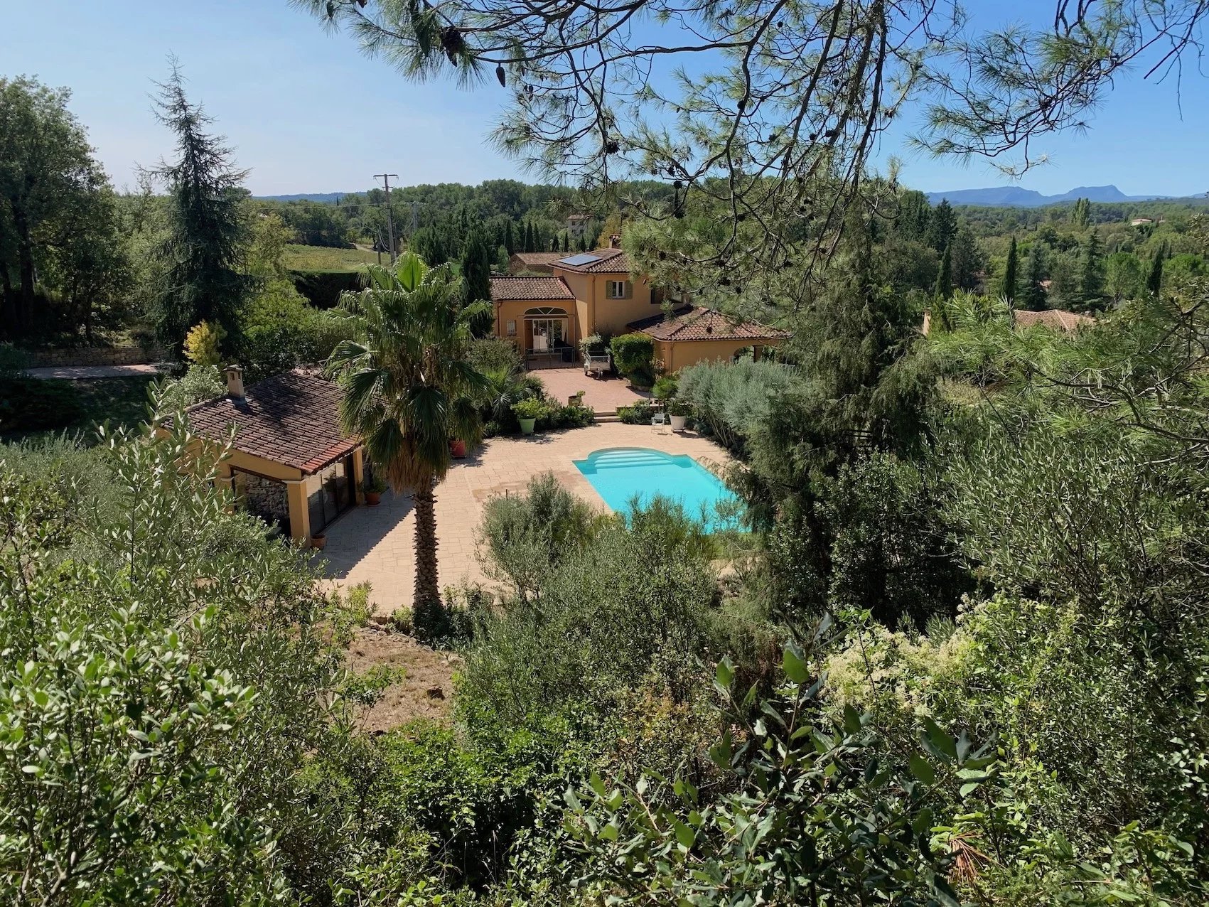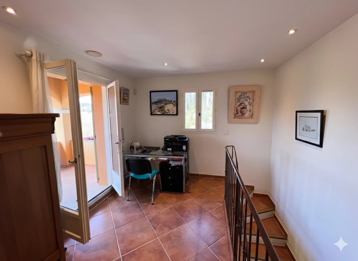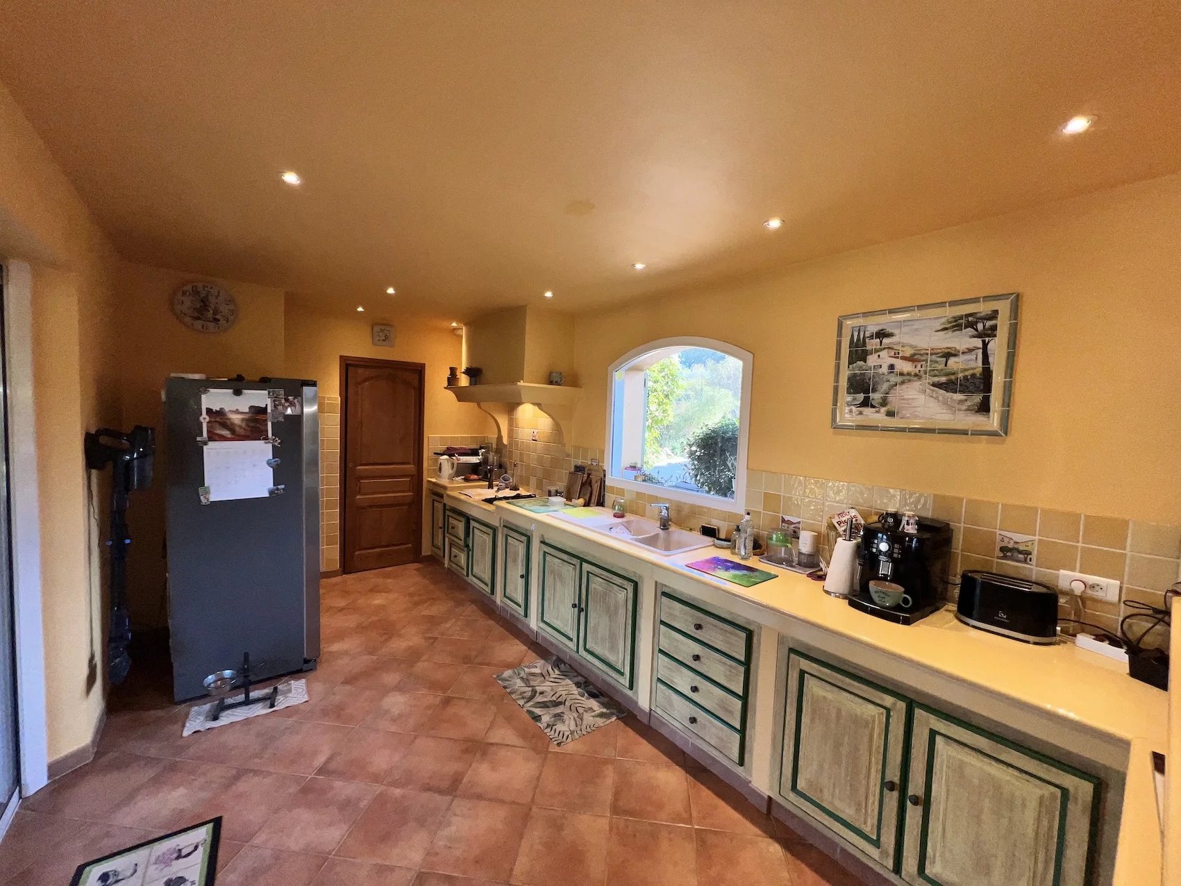 MAISON - COTIGNAC, entre les Gorges du Verdon et la Côte-d'Azur, au pied d'une impressionnante falaise de tuf, vous aurez le privilège de devenir propriétaire d’une jolie Bastide provençale aux portes d’un village de caractère unique aux façades colorées certifié Plus Beau Village de France depuis 2022. A proximité du village et de l’ensemble des commodités, cette superbe maison est implantée au cœur d’un terrain paysagé et clos de plus de 7 700 m², planté de 120 oliviers et de nombreuses autres essences méditerranéennes. Sans vis à vis, au calme, elle offre une vue panoramique unique et exceptionnelle sur la campagne environnante. Le jardin est agrémenté d’une jolie piscine (12 x 5 m) avec de larges plages dallées et un pool house. Terrain de pétanque pour vous détendre. Au rez-de-chaussée : entrée avec dégagement, wc, confortable salon / salle à manger avec une cheminée à insert, agréable terrasse ombragée, spacieuse cuisine ouverte entièrement équipée, cellier, buanderie, 3 confortables chambres avec rangements, jolie salle de bains, wc. A l’étage : dégagement aménagé en espace bureau, 1 chambre parentale avec rangements, terrasse ombragée, salle d’eau privative et wc. Garage double attenant, abri jardin. Eau de ville, forage, chauffage géothermie avec pompe à chaleur, panneaux solaires photovoltaïques... Située dans un quartier résidentiel recherché, bénéficiant d’une exposition idéale, la maison est lumineuse et agréable à vivre. En excellent état général, peu énergivore, les matériaux sont de qualité, les dimensions sont généreuses et les volumes harmonieux. Coup de cœur assuré, en résidence principale ou secondaire, pour cette maison pleine de charme. Les informations sur les risques auxquels ce bien est exposé sont disponibles sur le site Géorisques : georisques.gouv.fr