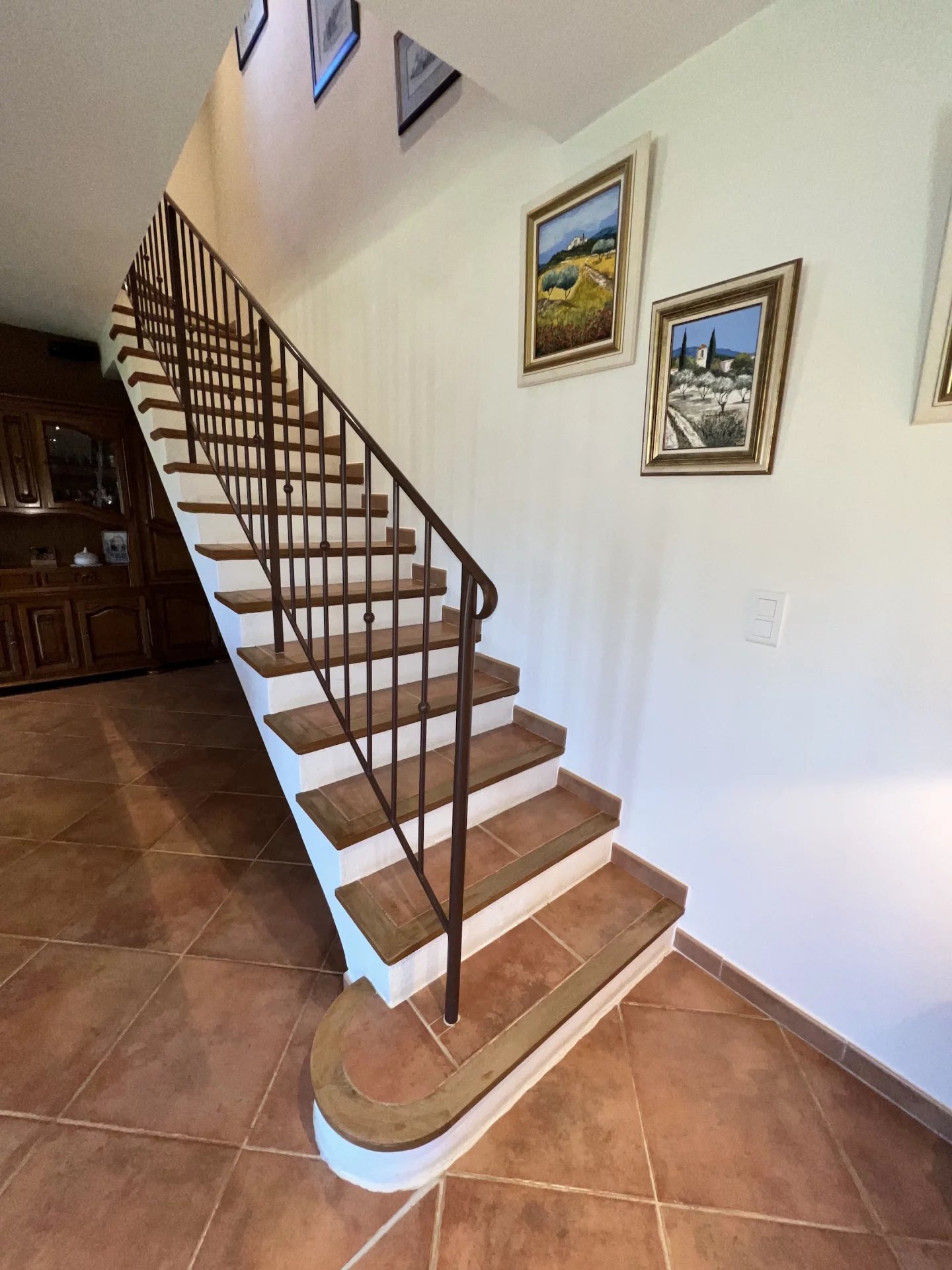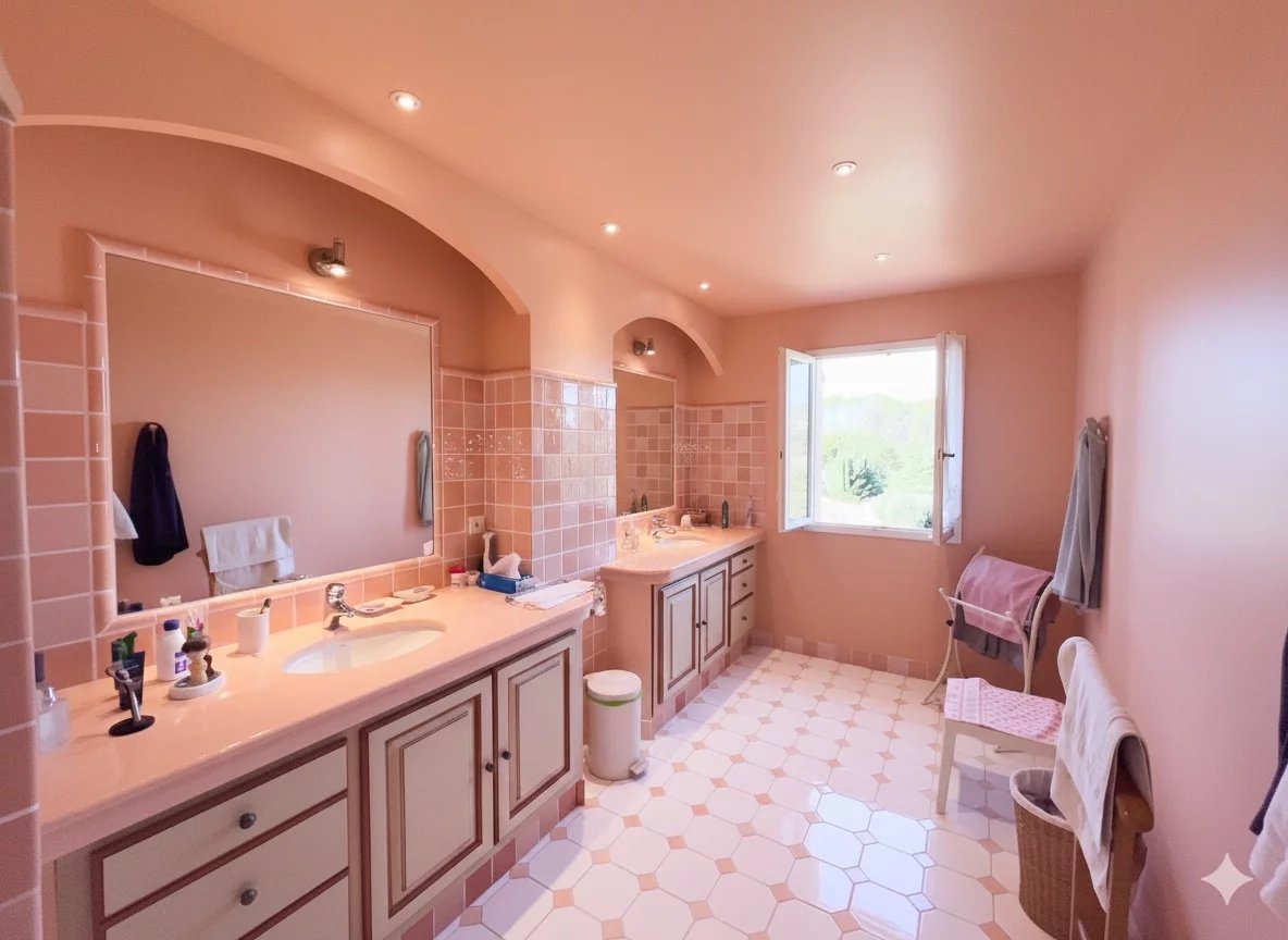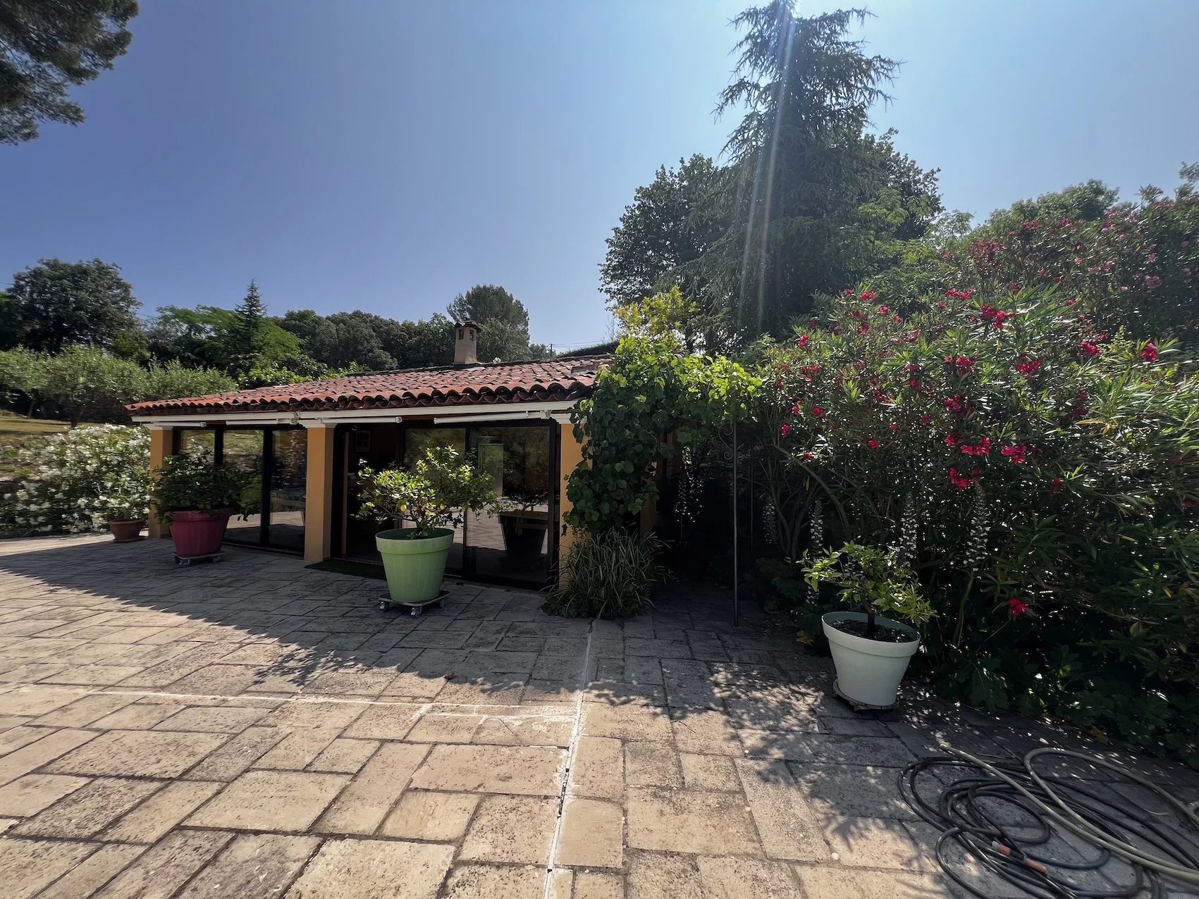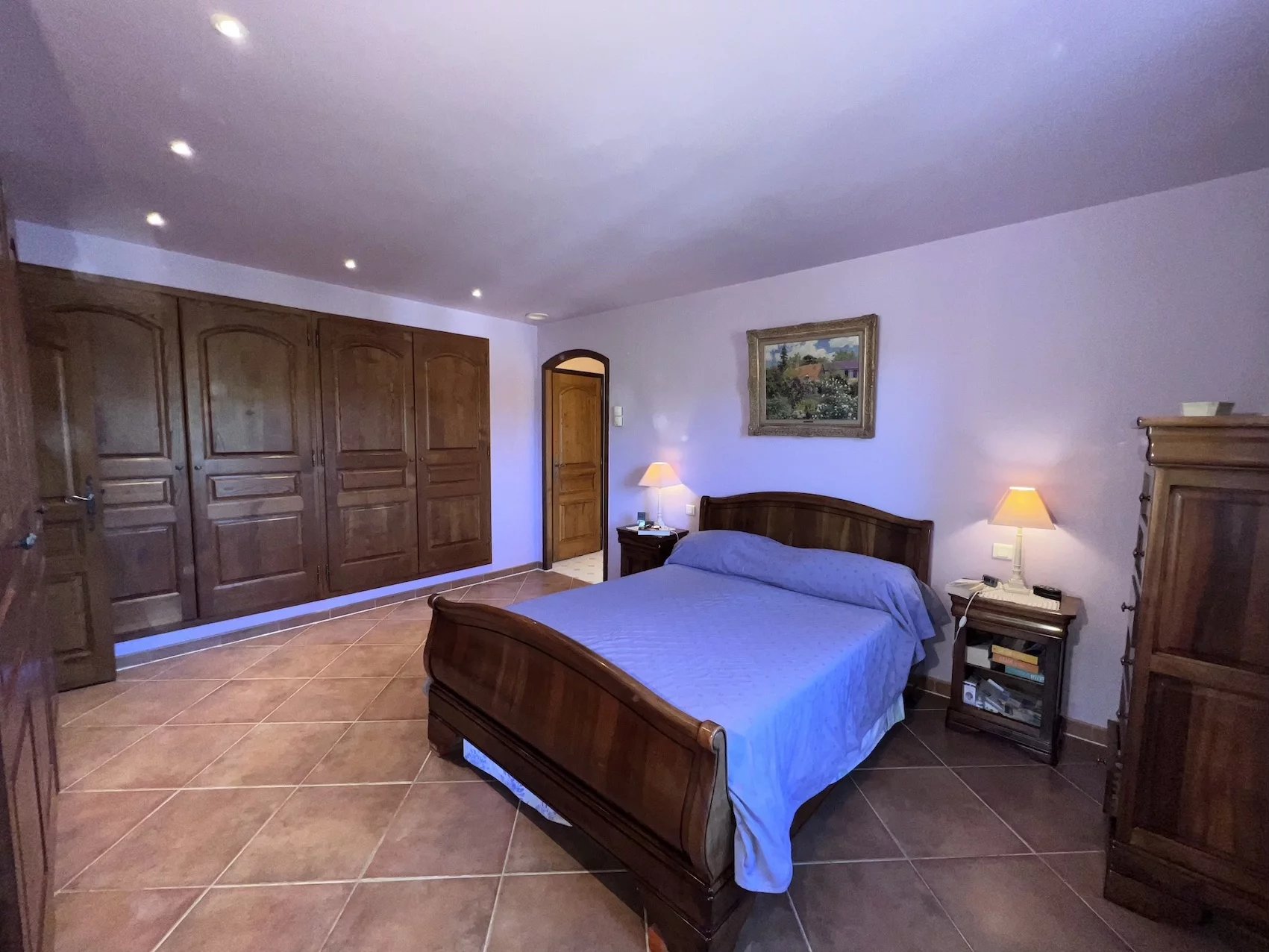 MAISON - COTIGNAC, entre les Gorges du Verdon et la Côte-d'Azur, au pied d'une impressionnante falaise de tuf, vous aurez le privilège de devenir propriétaire d’une jolie Bastide provençale aux portes d’un village de caractère unique aux façades colorées certifié Plus Beau Village de France depuis 2022. A proximité du village et de l’ensemble des commodités, cette superbe maison est implantée au cœur d’un terrain paysagé et clos de plus de 7 700 m², planté de 120 oliviers et de nombreuses autres essences méditerranéennes. Sans vis à vis, au calme, elle offre une vue panoramique unique et exceptionnelle sur la campagne environnante. Le jardin est agrémenté d’une jolie piscine (12 x 5 m) avec de larges plages dallées et un pool house. Terrain de pétanque pour vous détendre. Au rez-de-chaussée : entrée avec dégagement, wc, confortable salon / salle à manger avec une cheminée à insert, agréable terrasse ombragée, spacieuse cuisine ouverte entièrement équipée, cellier, buanderie, 3 confortables chambres avec rangements, jolie salle de bains, wc. A l’étage : dégagement aménagé en espace bureau, 1 chambre parentale avec rangements, terrasse ombragée, salle d’eau privative et wc. Garage double attenant, abri jardin. Eau de ville, forage, chauffage géothermie avec pompe à chaleur, panneaux solaires photovoltaïques... Située dans un quartier résidentiel recherché, bénéficiant d’une exposition idéale, la maison est lumineuse et agréable à vivre. En excellent état général, peu énergivore, les matériaux sont de qualité, les dimensions sont généreuses et les volumes harmonieux. Coup de cœur assuré, en résidence principale ou secondaire, pour cette maison pleine de charme. Les informations sur les risques auxquels ce bien est exposé sont disponibles sur le site Géorisques : georisques.gouv.fr