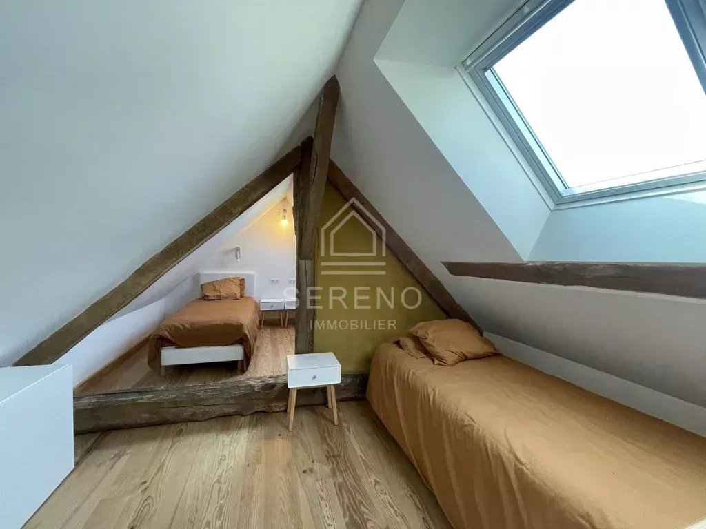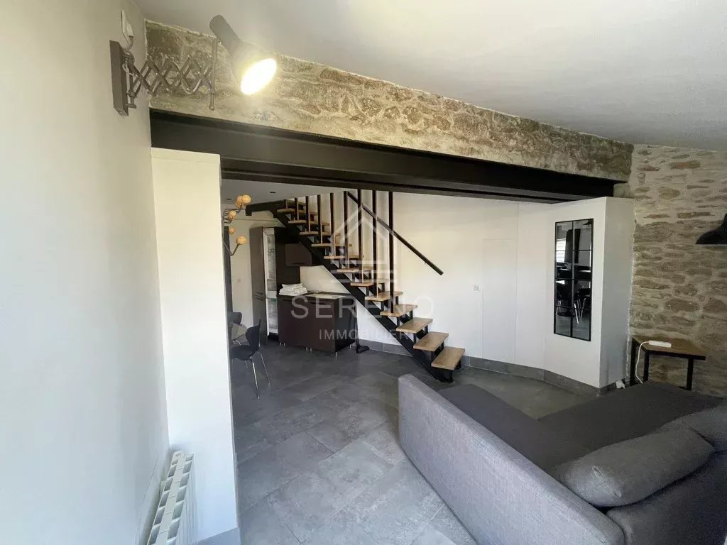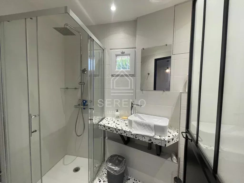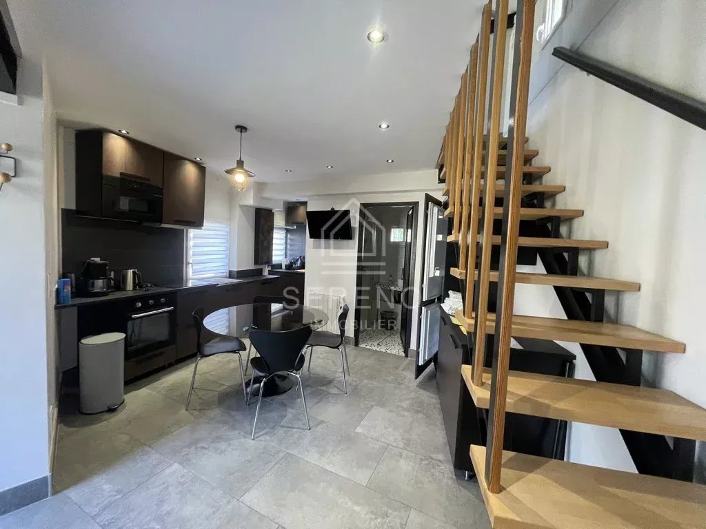 Seconde maison avec terrasse privative et jardinet, comportant séjour avec cuisine aménagée et équipée, salle d’eau avec toilettes, à l’étage une grande chambre avec vaste baie vitrée sur jardin, placards.