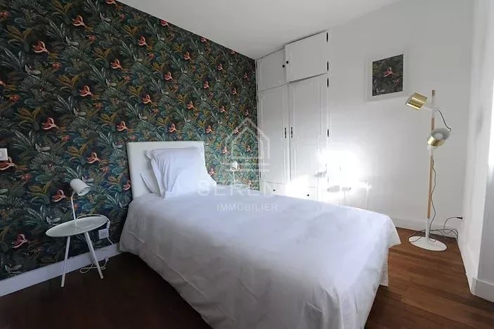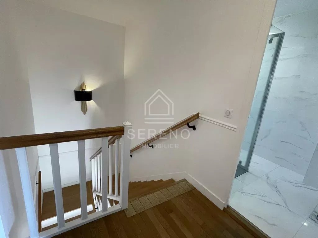 Au rez-de-chaussée, entrée desservant un lumineux salon-séjour pouvant faire chambre, une cuisine salle à manger équipée, une salle d'eau et un WC indépendant, buanderie équipée. Au premier étage, palier desservant cinq belles chambres sur cour et jardin, et une salle d'eau, WC séparé, parquets de qualité. En sous-sol cave et atelier aménagé.