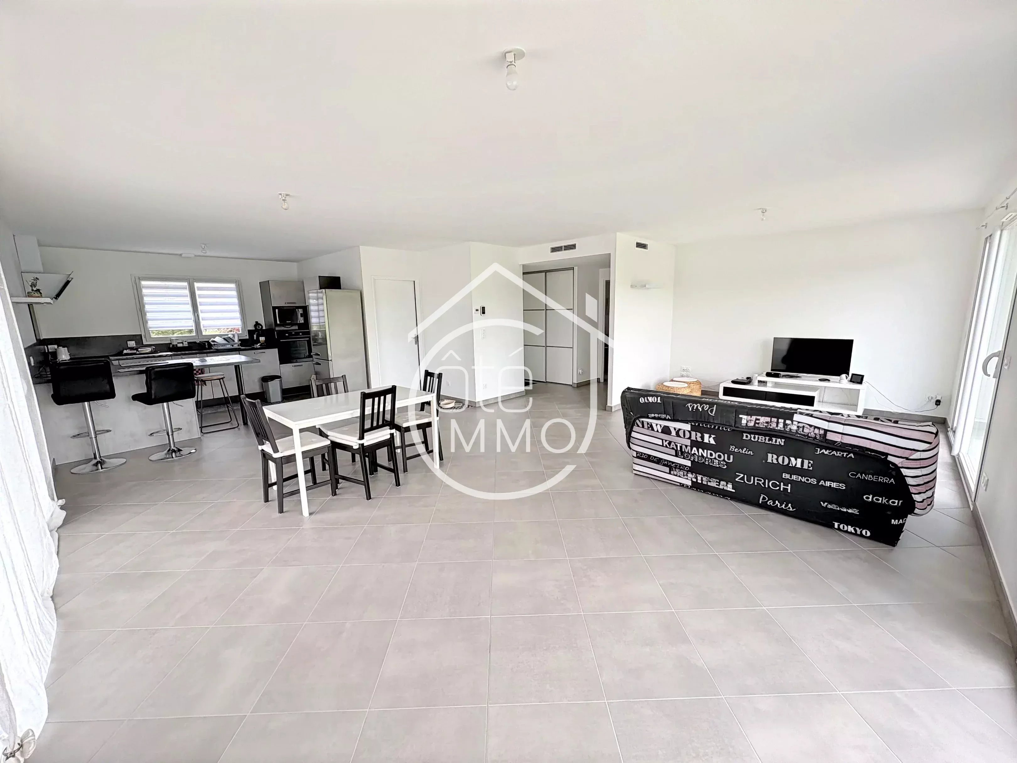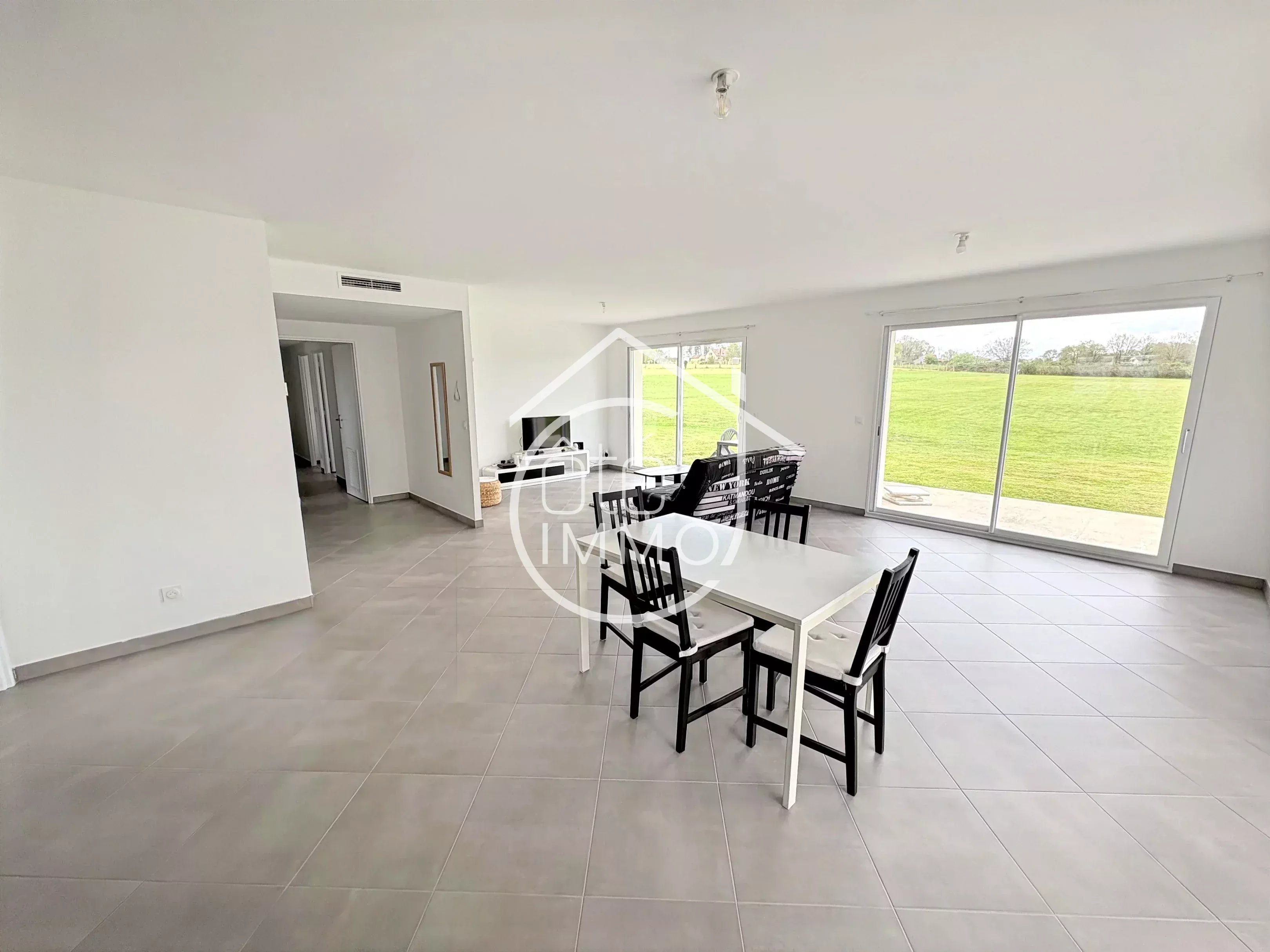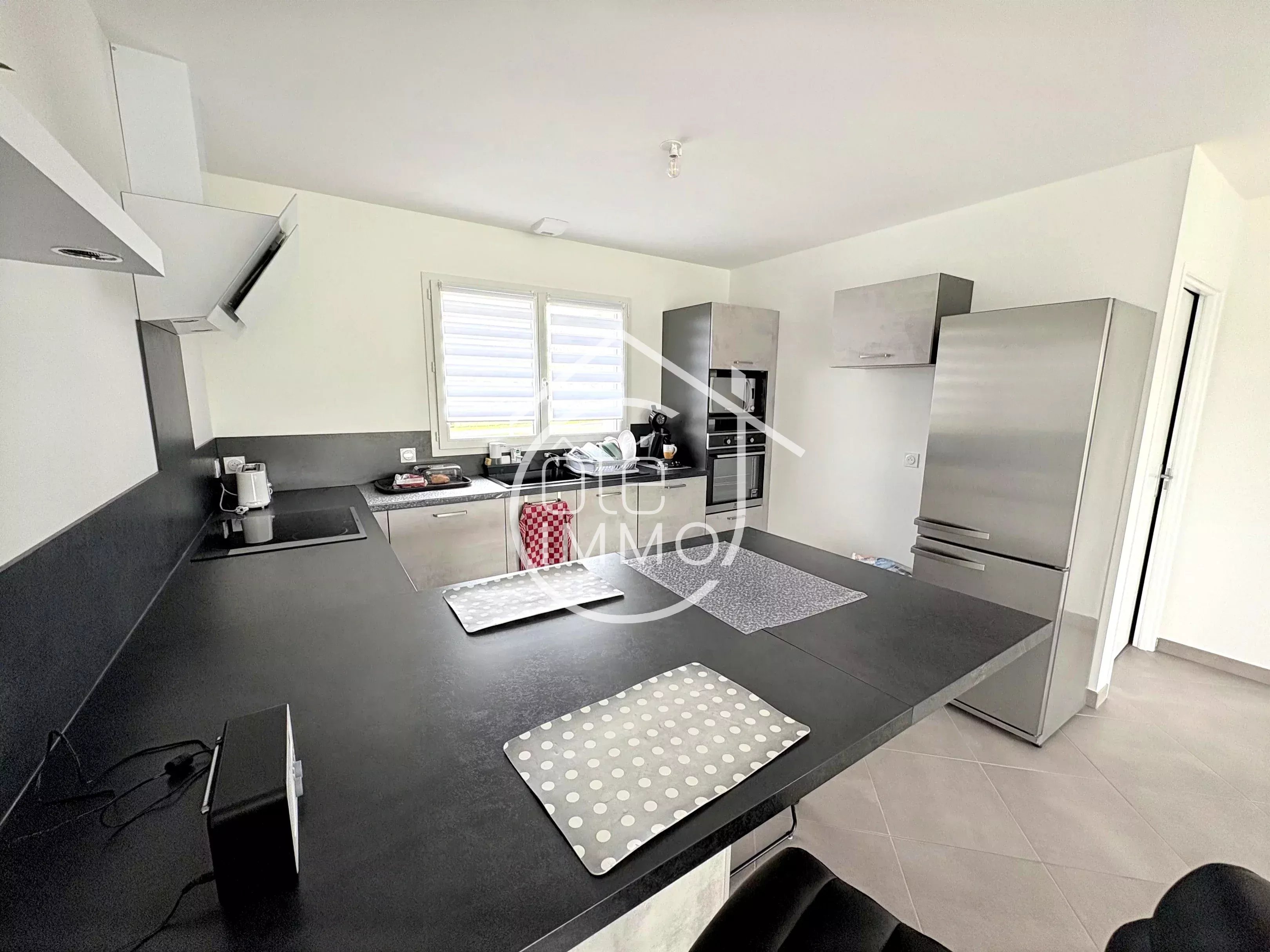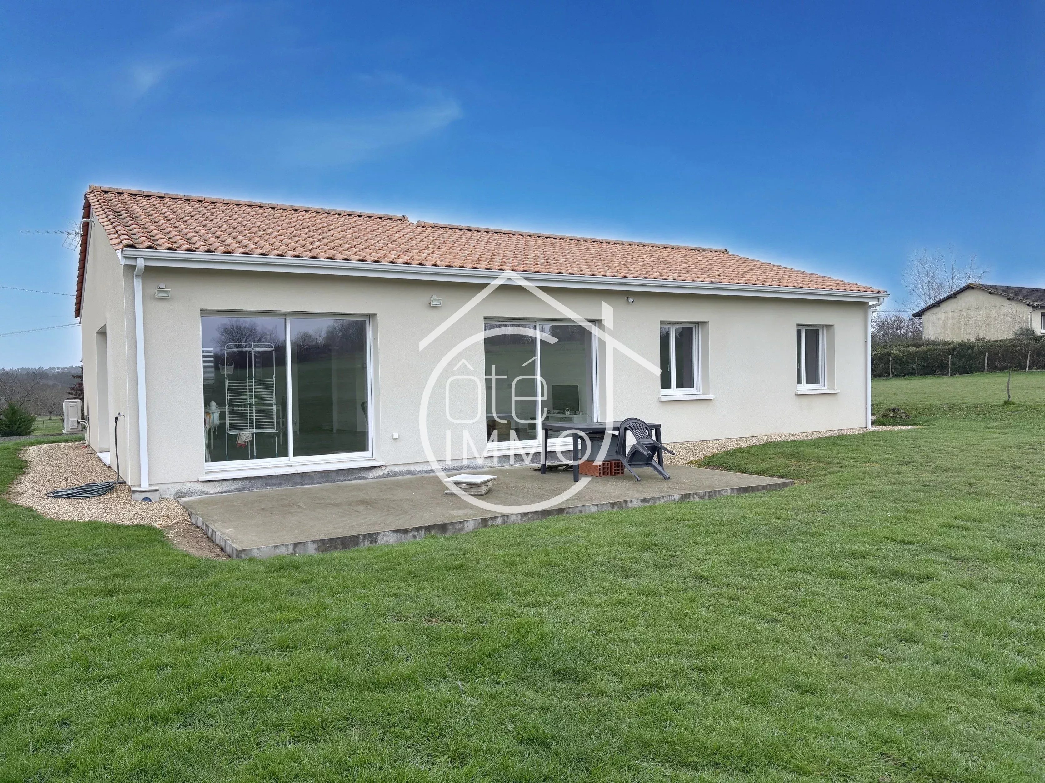 Côté Immo Prigonrieux vous invite à découvrir cette élégante maison contemporaine de plain-pied, construite en 2022, nichée dans un environnement paisible et recherché, au sein d’un quartier résidentiel de qualité, à proximité des commodités. Développant environ 110m² habitables, cette maison séduit dès l’entrée par ses volumes harmonieux et sa fonctionnalité. Vous découvrirez une belle entrée avec espace de rangement, menant à une superbe pièce de vie de 52m², baignée de lumière, où séjour et cuisine ouverte se conjuguent dans un esprit convivial et moderne. L’espace nuit, pensé pour le confort de toute la famille, se compose d’une raffinée salle d’eau avec douche à l’italienne, d’un WC indépendant ainsi que de trois chambres comprises entre 10m² et 12m². À l’extérieur, vous retrouverez un vaste terrain de 3046 m², offrant un cadre verdoyant et intimiste. Une agréable terrasse de 27m² prolonge les espaces de vie, idéale pour profiter des beaux jours, tandis qu’un garage attenant de 18m² vient parfaire les prestations de ce bien. Maison récente aux prestations soignées, alliant confort moderne et sérénité. Une opportunité rare où chaque détail a été pensé pour une qualité de vie optimale. Points techniques : - Climatisation réversible par PAC air/air connectée - Chauffe eau thermodynamique - Double vitrage PVC et aluminium - Volets roulants électriques connectés - Tout à l'égout
