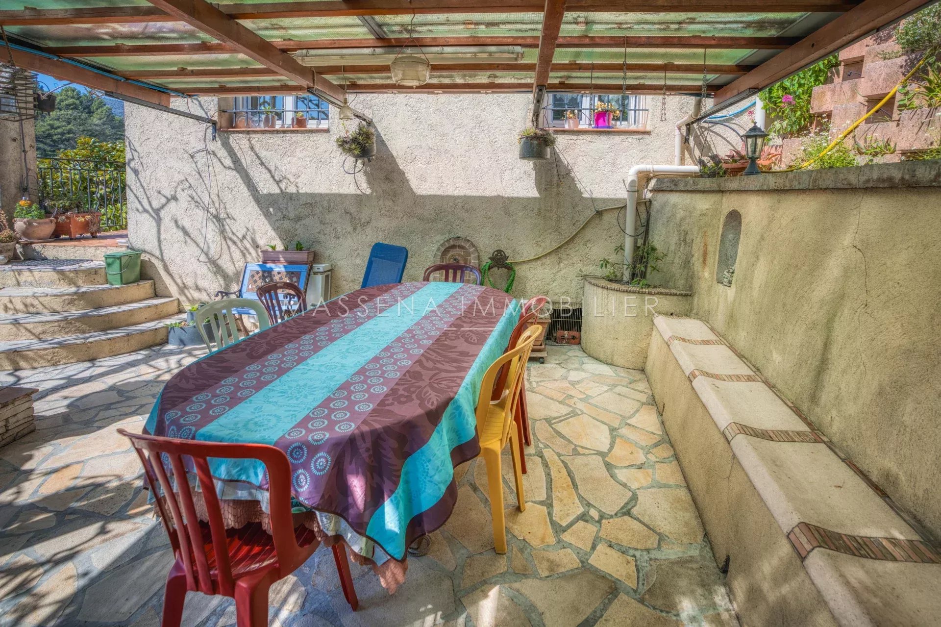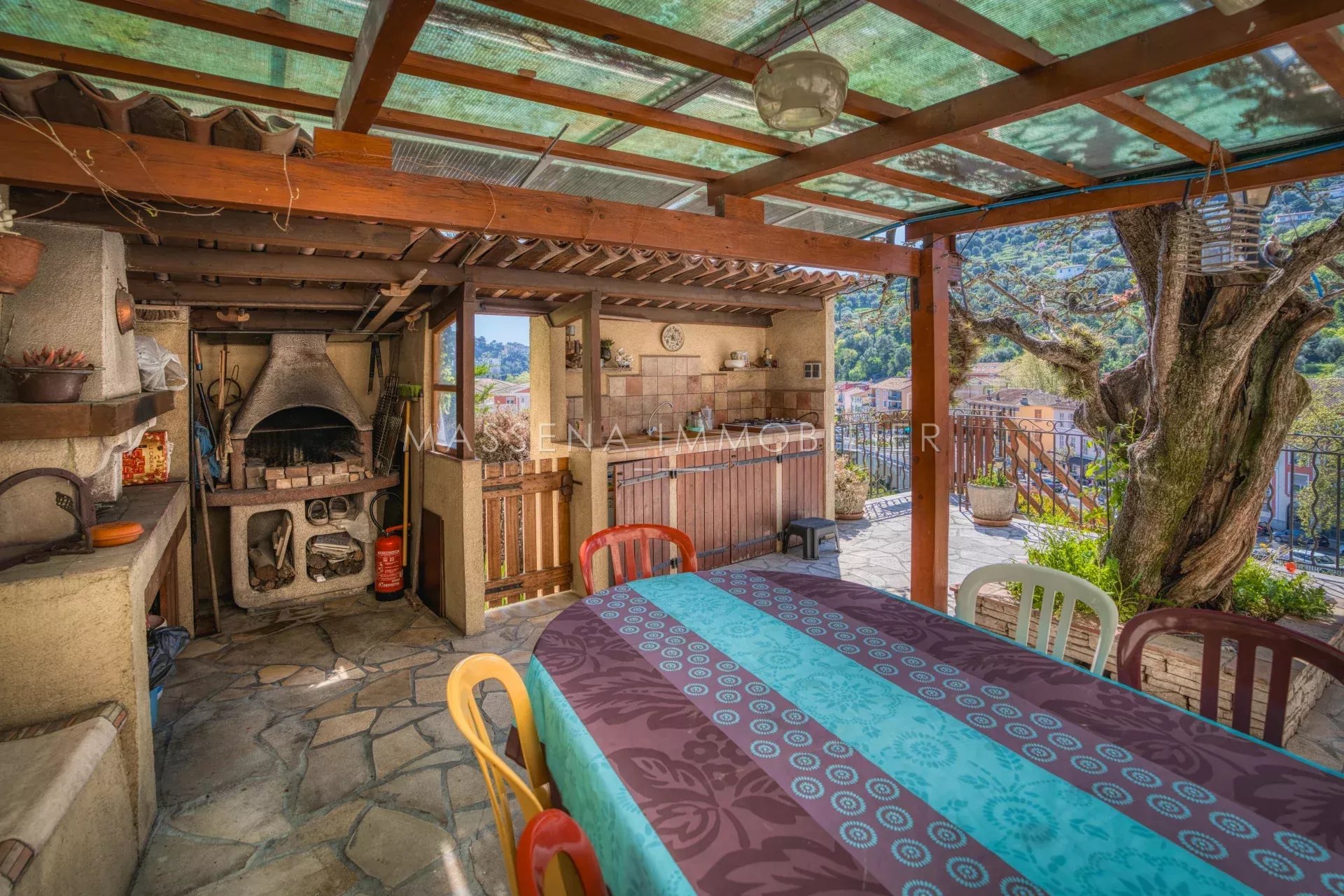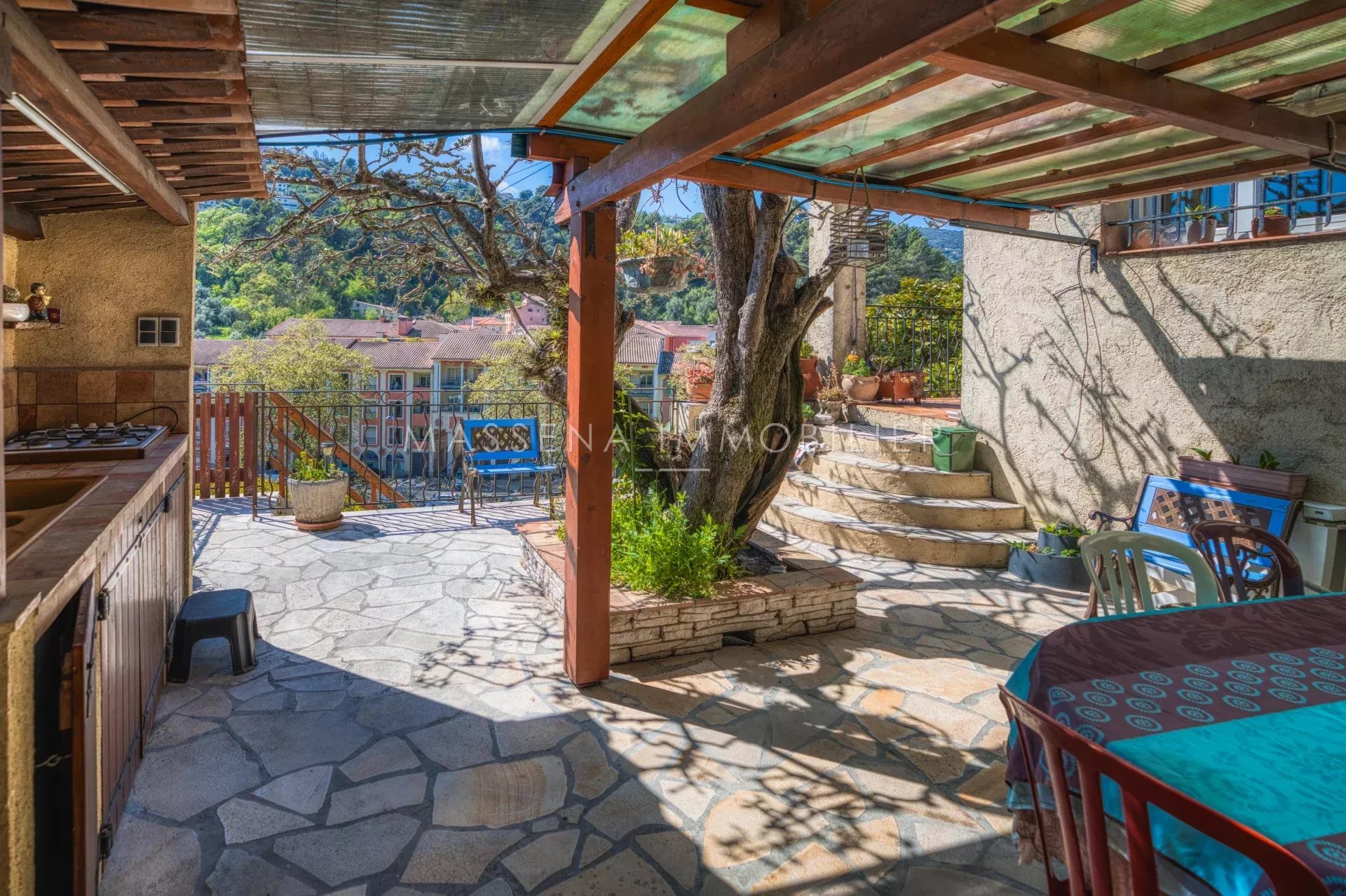 Située dans un environnement agréable et à proximité immédiate du centre-ville de Saint André de la Roche et de toutes les commodités (écoles, commerces, transports, services médicaux), cette charmante maison individuelle d’environ 136 m² offre un cadre de vie idéal. Édifiée sur une parcelle d’environ 900 m² joliment aménagée, la propriété bénéficie d’une exposition Ouest / Sud-Ouest et d’un environnement sans vis-à-vis direct. La maison très bien entretenue se compose : - Au rez-de-chaussée : Une entrée spacieuse avec placard Un vaste séjour / salle à manger lumineux avec cheminée insert, ouvrant sur une agréable terrasse. Une cuisine équipée avec accès terrasse Une pièce pouvant servir d’atelier, bureau; chambre ou espace créatif. Un WC indépendant avec lave-mains Un cellier avec buanderie Plusieurs espaces de rangement - À l’étage : - 3 chambres confortables ouvrant sur une grande terrasse d’environ 27 m², dont une avec salle d’eau - Une salle de bain avec baignoire et douche - Un WC indépendant Des rangements supplémentaires - Au sous-sol : Un vide sanitaire pouvant être utilisé comme espace de stockage ou atelier. - L'extérieur: Le jardin, aménagé en restanques et parfaitement entretenu, est agrémenté de nombreux arbres méditerranéens (oliviers, mimosas, magnolia…). Une vaste terrasse avec cuisine d’été et tonnelle permet de profiter pleinement des beaux jours. Un abri de jardin ainsi qu’un garage privatif couvert complètent la propriété. - Prestations supplémentaires : Panneaux photovoltaïques avec contrat de revente d’électricité Système de récupération d’eau de pluie avec surpresseur pour l’arrosage du jardin. Les informations sur les risques auxquels ce bien est exposé sont disponibles sur le site georisques.gouv.fr Honoraires à la charge du vendeur.